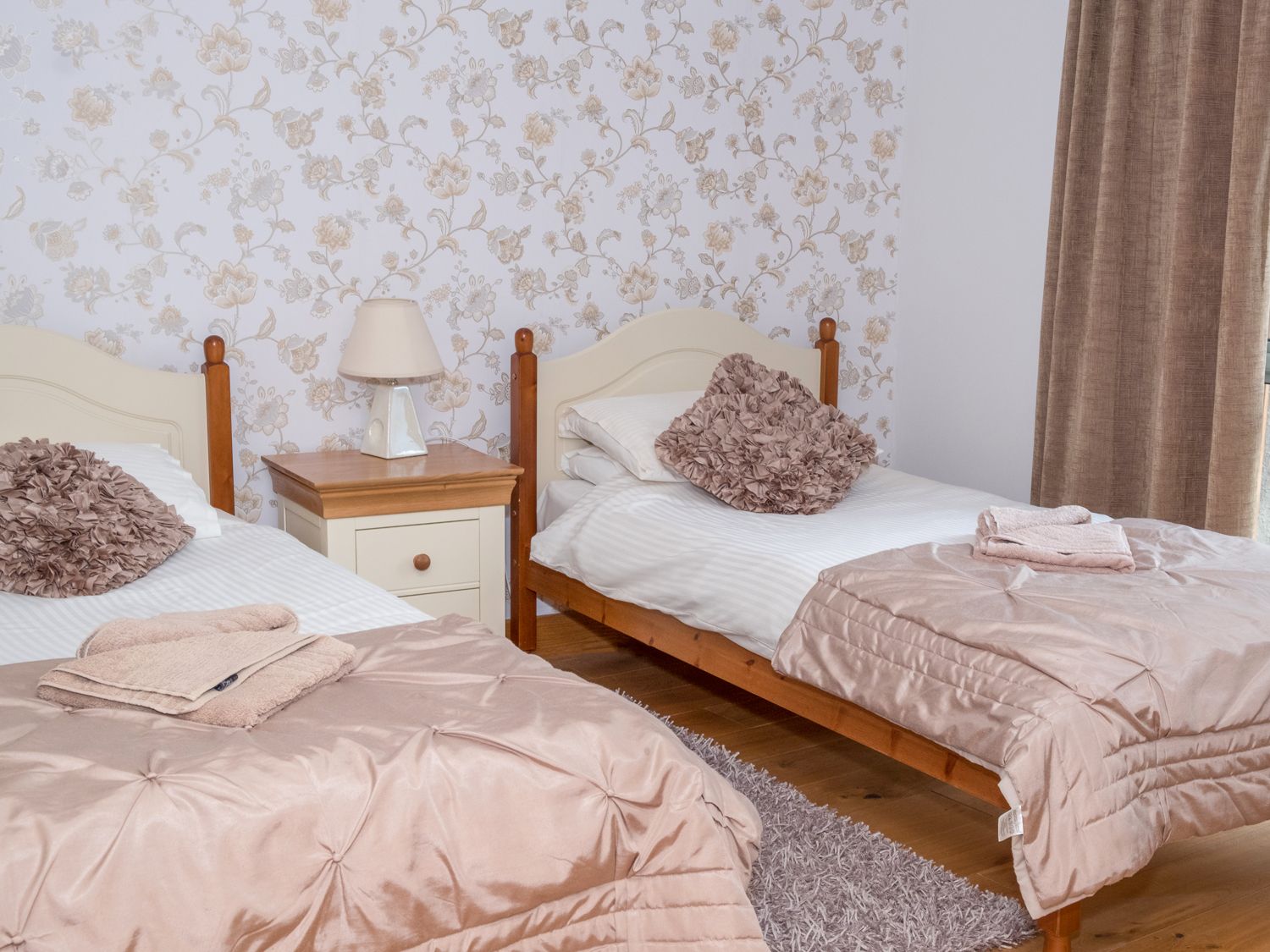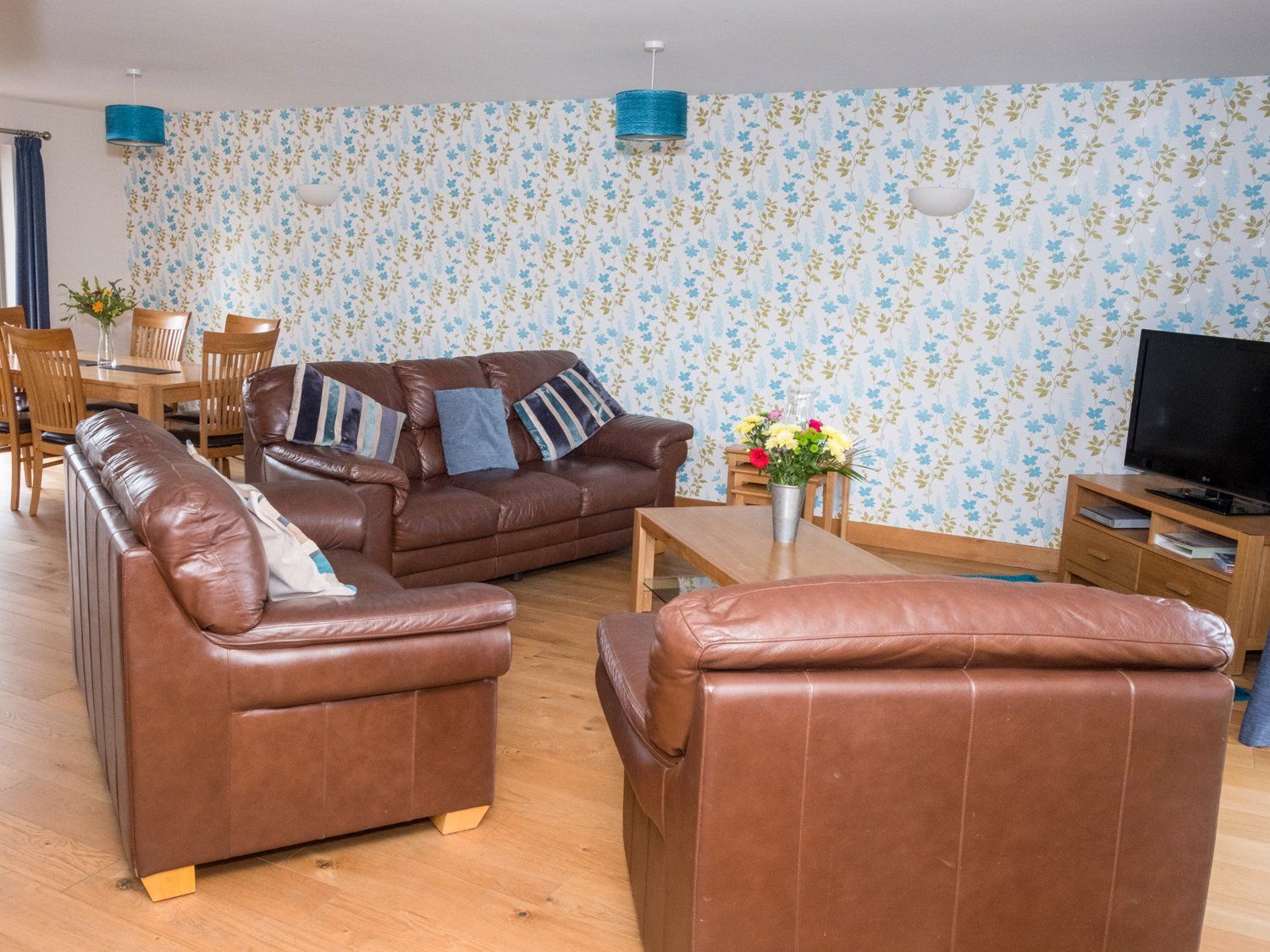 Accomodation Details Reverse-level accommodation. Three ground floor bedrooms: 1 x king-size with en-suite walk-in shower, basin and WC, 2 x twin. Ground floor wet room with bath, separate shower, basin and WC, first floor cloakroom. Open-plan living room with kitchen, dining area and sitting area. Utility.