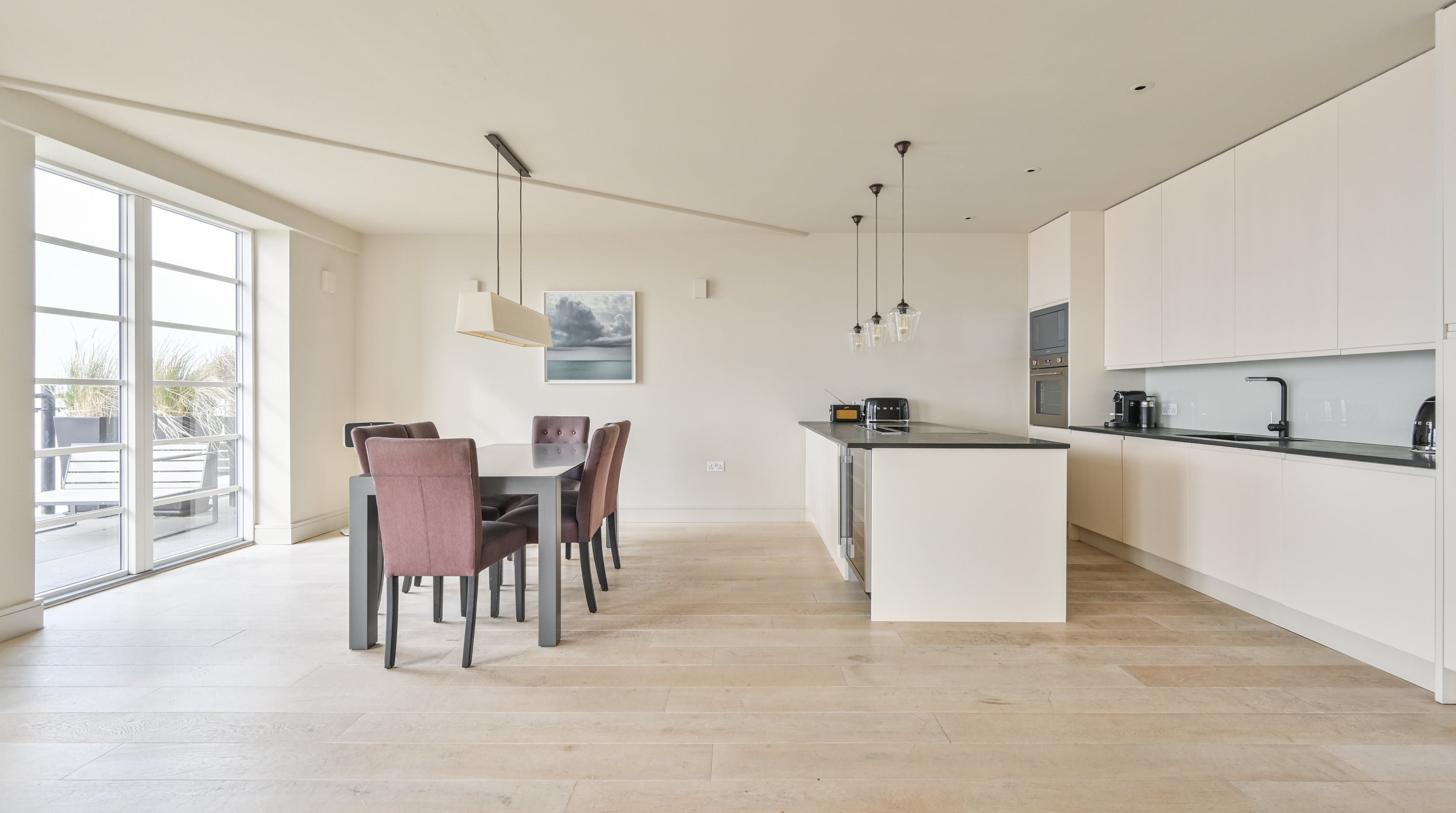On wild, wintery days, watch the tide roll in with morning coffees curled up on the modular sofa. And on balmy summer nights, open up the French Crittall doors wide for alfresco drinks on the terrace - the crashing waves and blazing sunsets are spell-bounding.