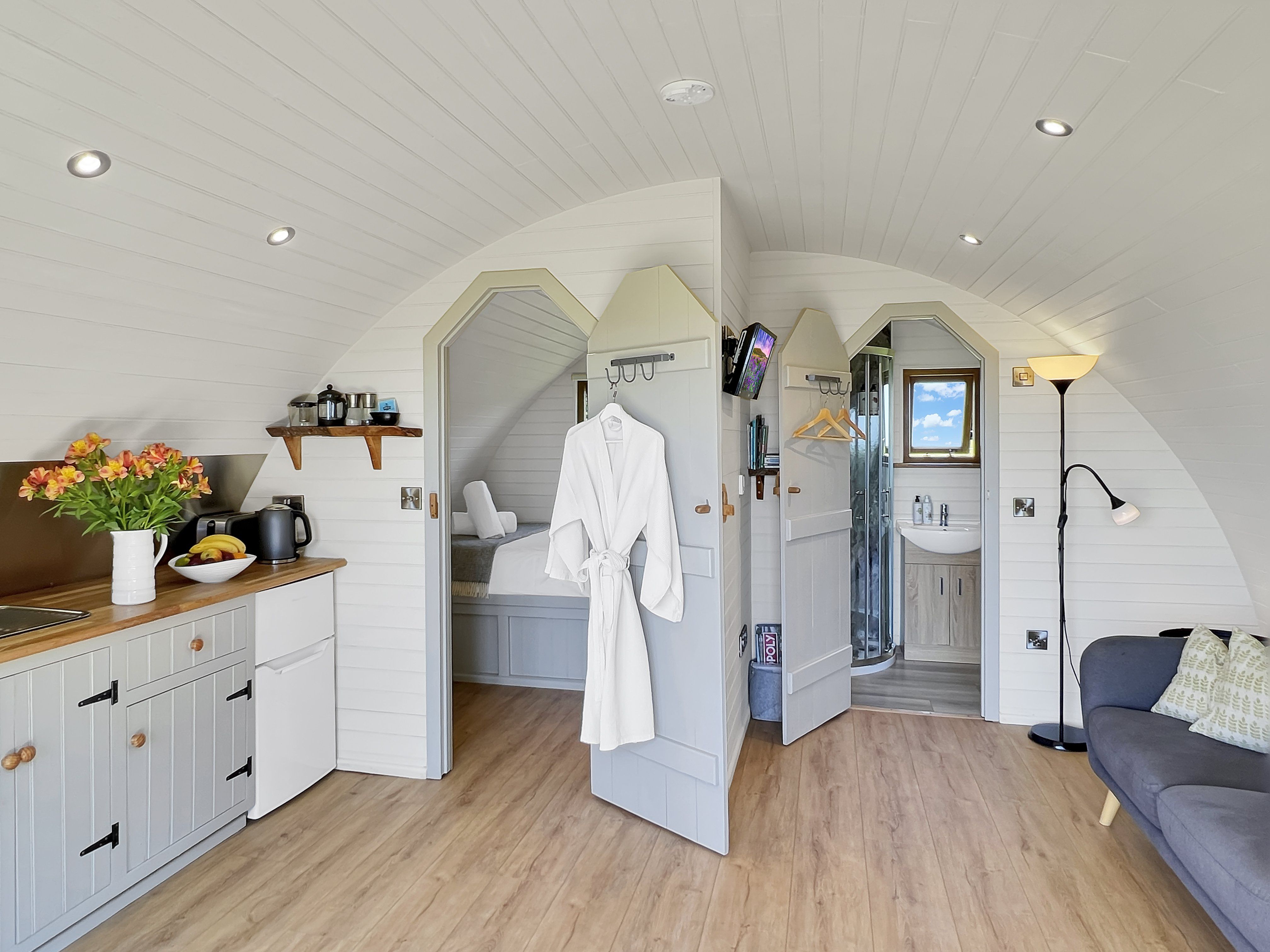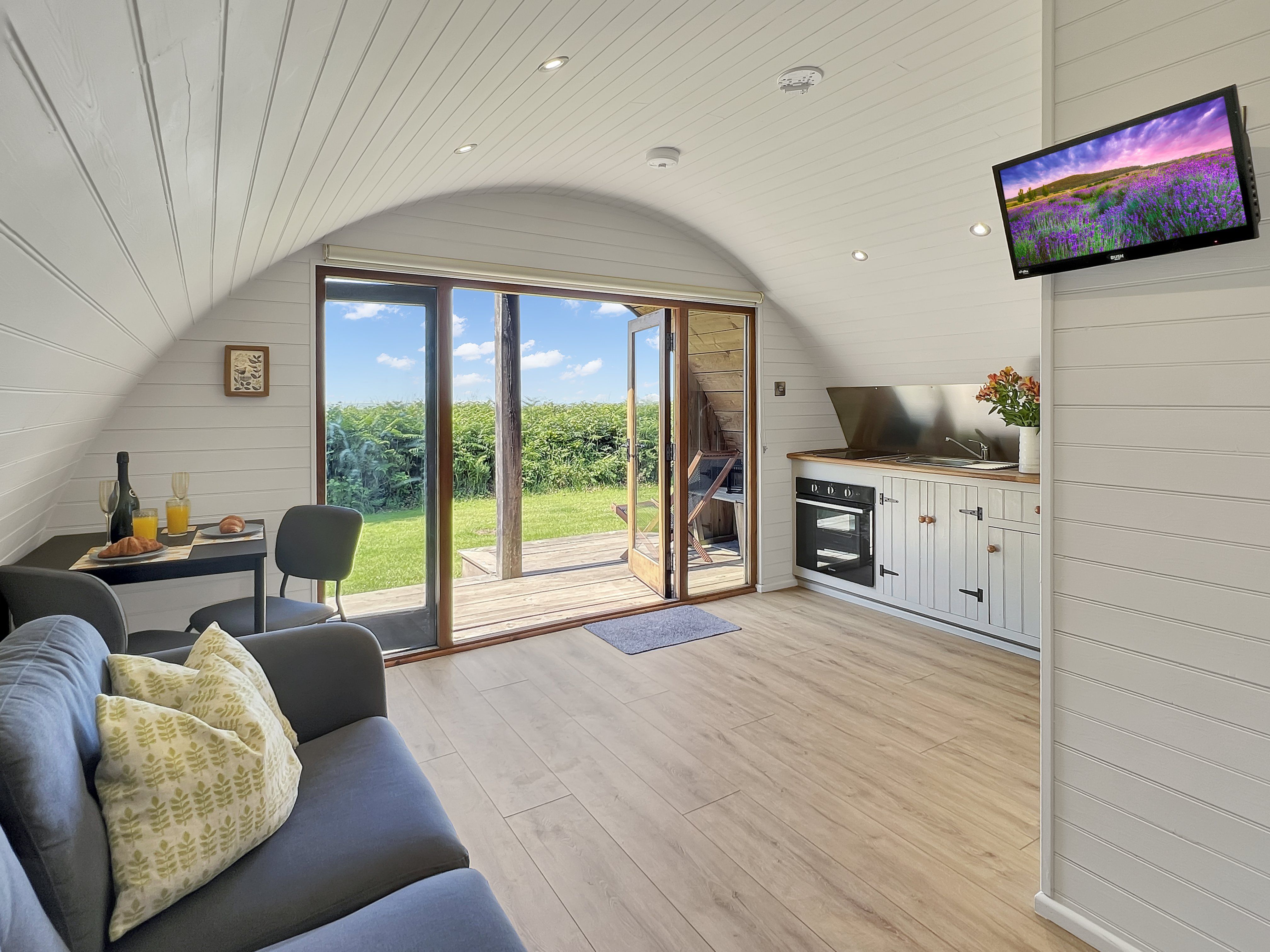 Facilities The front door opens into an open-plan living area, warmed by underfloor heating and thoughtfully furnished for a relaxing stay. The sitting area includes a comfortable sofa, television with Freeview, a selection of board games, cards, books, and an OS map to help plan local walks. Free WiFi and good mobile signal (including 4G) are available.
