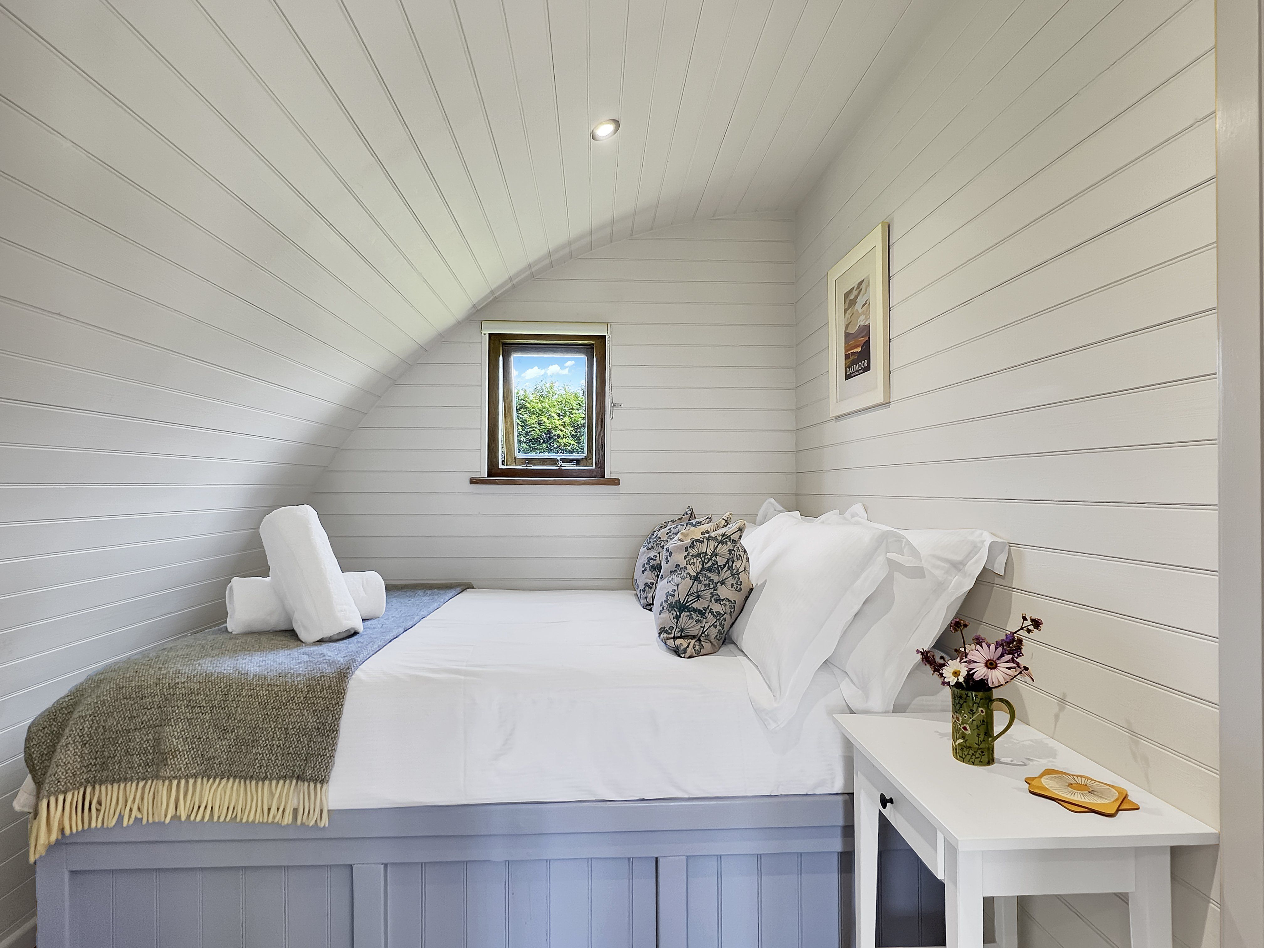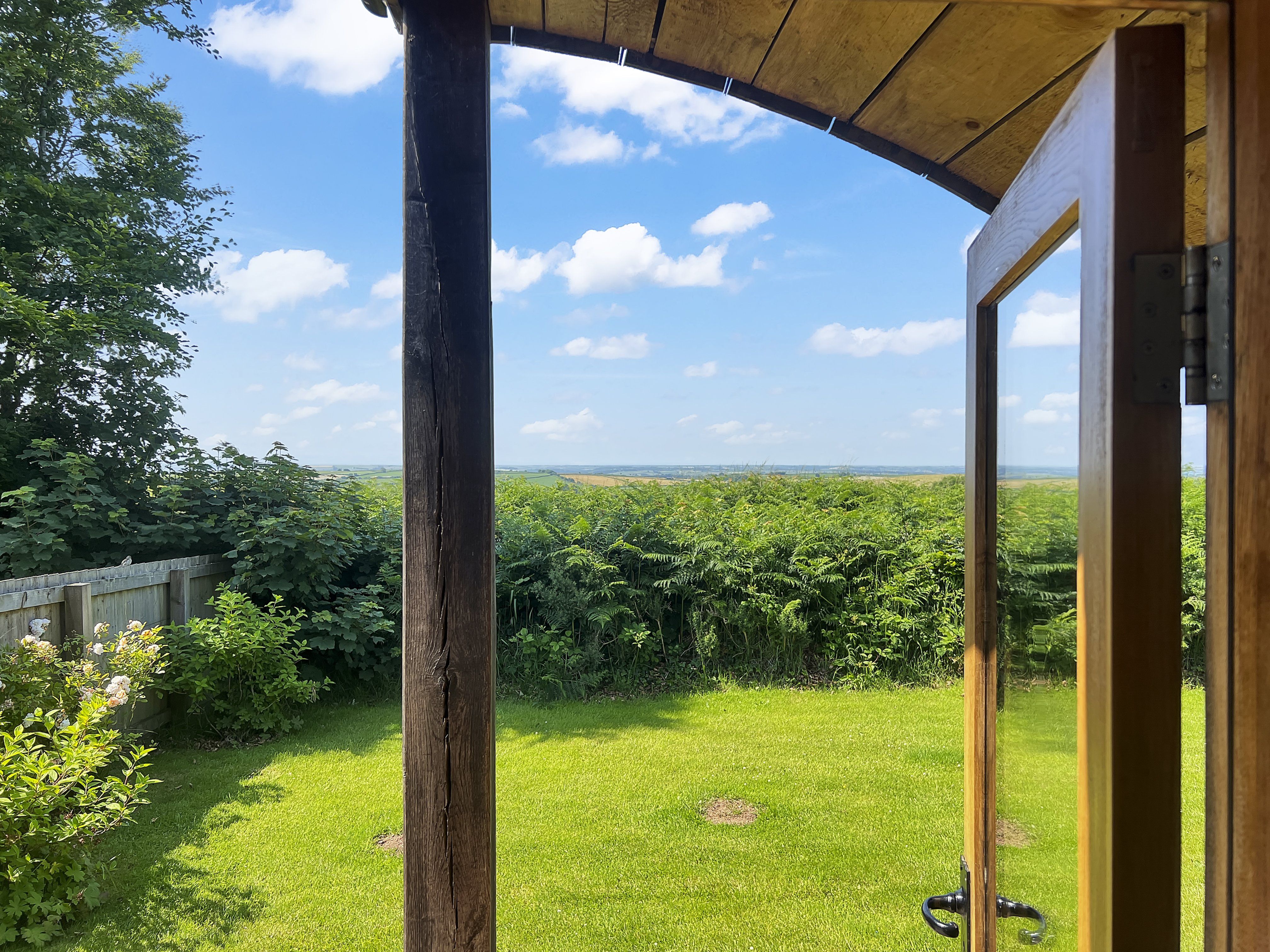 The well-equipped kitchen features an electric oven, induction hob, fridge-freezer, toaster, and kettle. On arrival, guests will find Exmoor’s own Miles tea and coffee, along with homemade biscuits and fresh milk ready to enjoy.