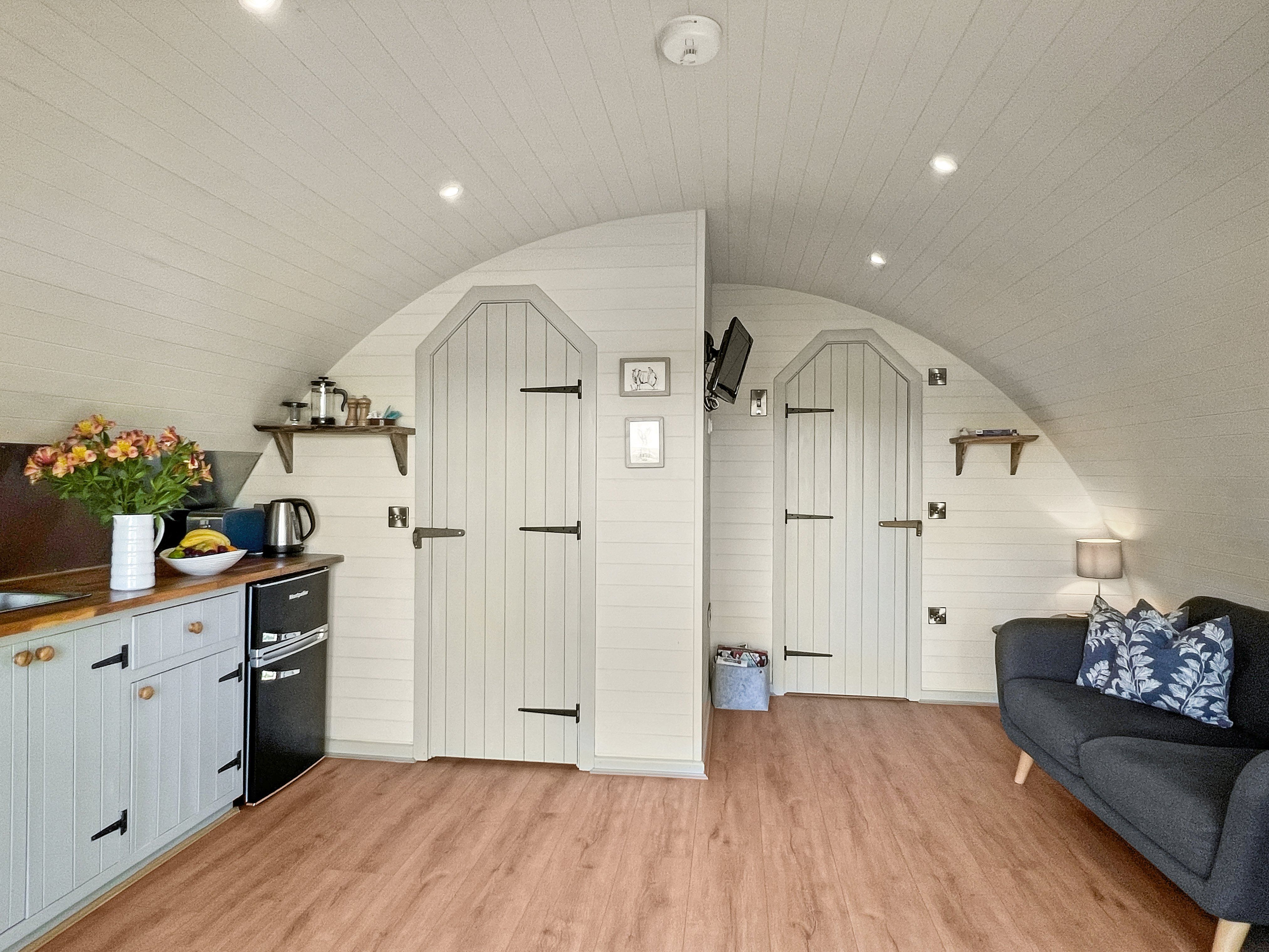 Facilities The front door opens into a spacious open-plan living area, warmed by underfloor heating and thoughtfully furnished for a relaxing stay. The sitting area includes a comfortable sofa, television with Freeview, a selection of board games, cards, books, and an OS map to help plan local walks. Free WiFi and good mobile signal (including 4G) are available.