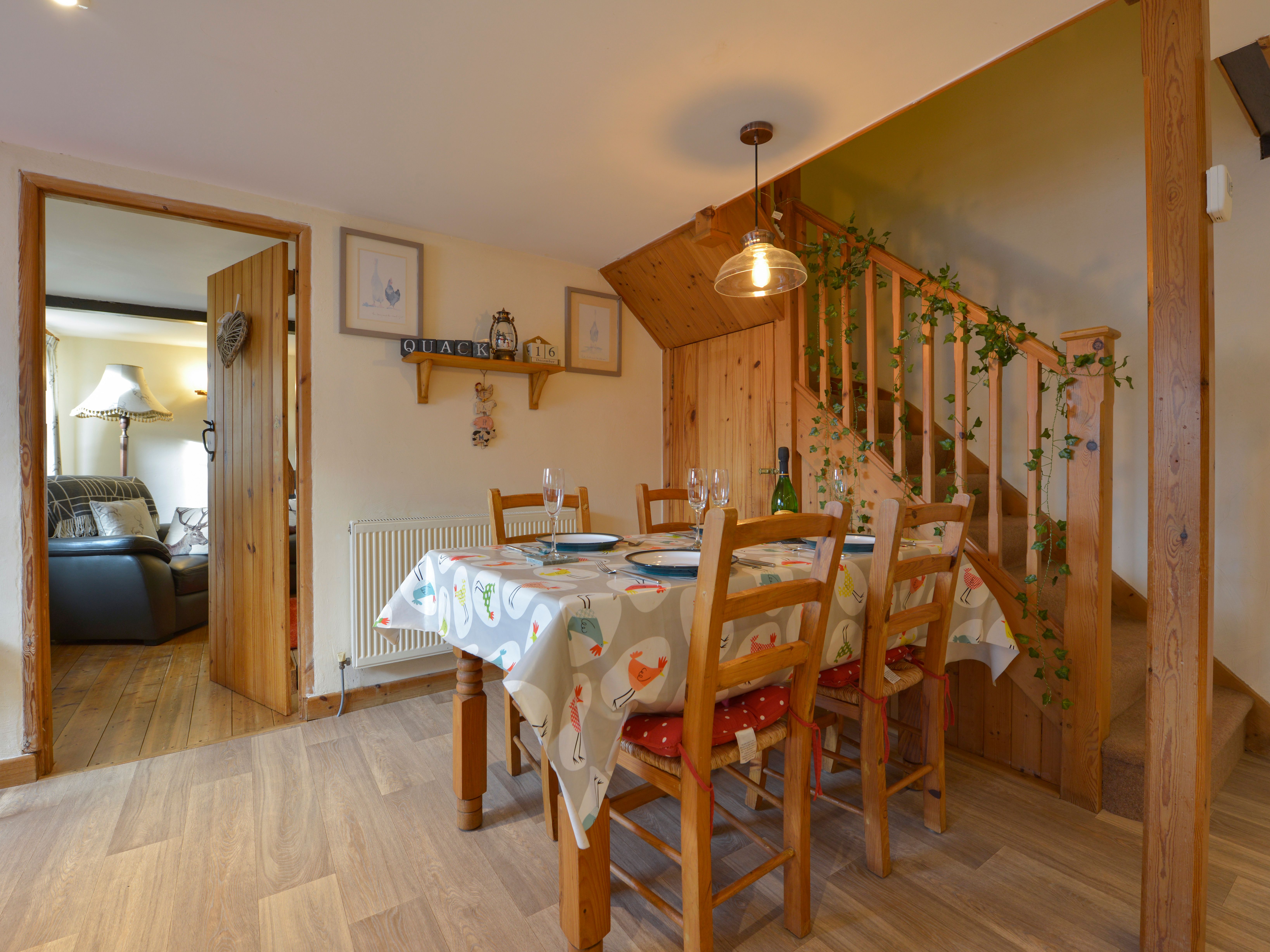 Holiday home The living areas include a kitchen/diner housing an electric oven and ceramic hob, microwave, fridge/freezer, dishwasher, washing machine and a lounge with Smart TV and electric fire. The bedrooms include two doubles, one with Smart TV, served by a bathroom. To the outside is ample off-road parking and an enclosed garden with patio, furniture and barbecue. Within 2.4 miles there is a shop and within 1.2 miles there is a pub. WiFi, fuel, power, bed linen and towels are included in rent and please note there is no smoking. One well-behaved pet is welcome. Northwood Barn provides an idyllic base for exploring Devon. Note: Restricted head height in bathroom. Note: Strictly one small dog welcome. Note: Allows one child only