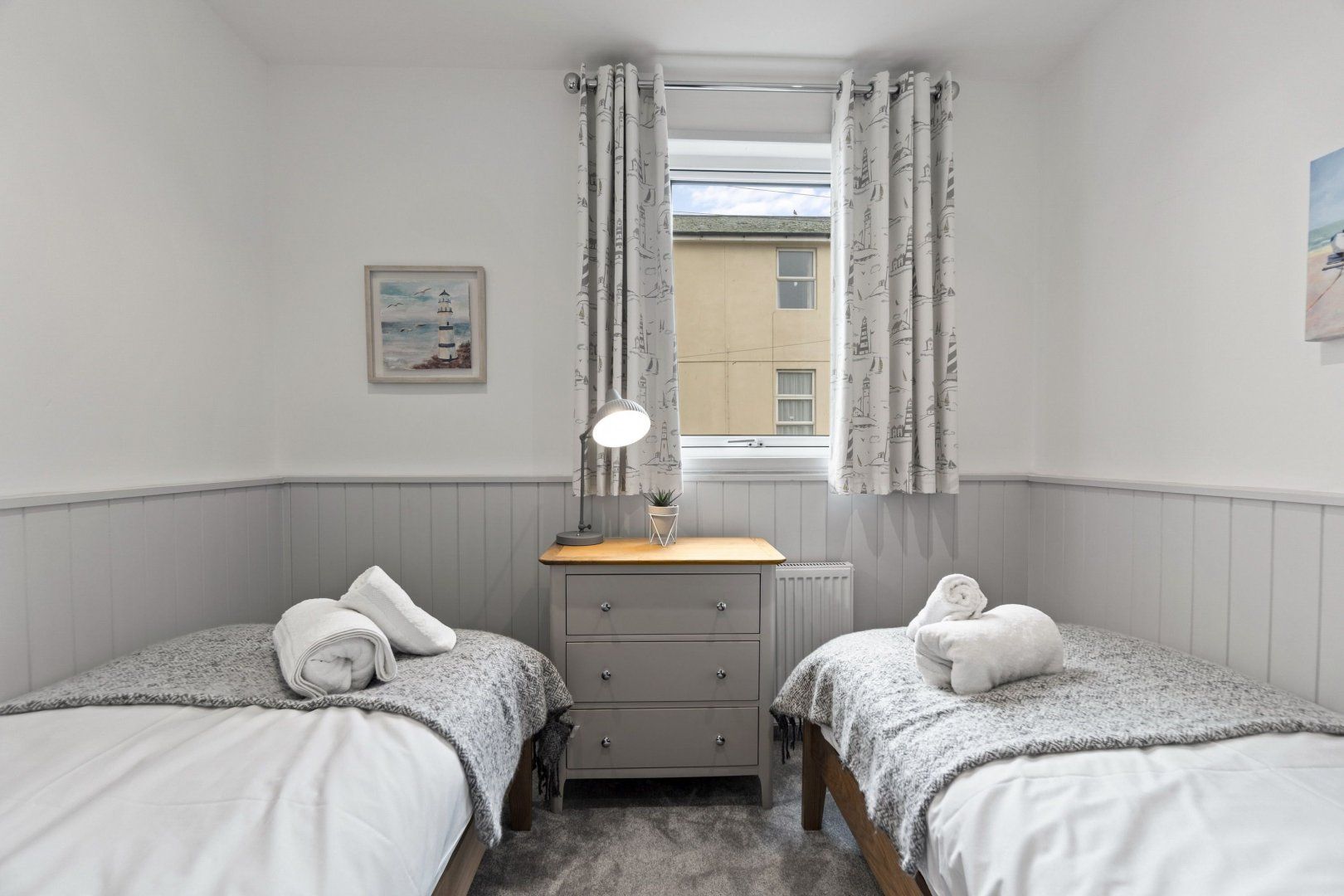 You’ll love waking up in the master bedroom, sliding open the floor to ceiling glass doors, standing out on the Juliette balcony and inhaling the fresh sea air. Take your time in the azure-tiled walk-in shower before preparing firm family favourites in the well-equipped kitchen and gathering around the wooden dining table in the living room. Wander down to Paignton Beach, or peruse the promenade and, at the day’s end relish chilling out on the lounge-worthy leather sofas in the sleek sitting area.