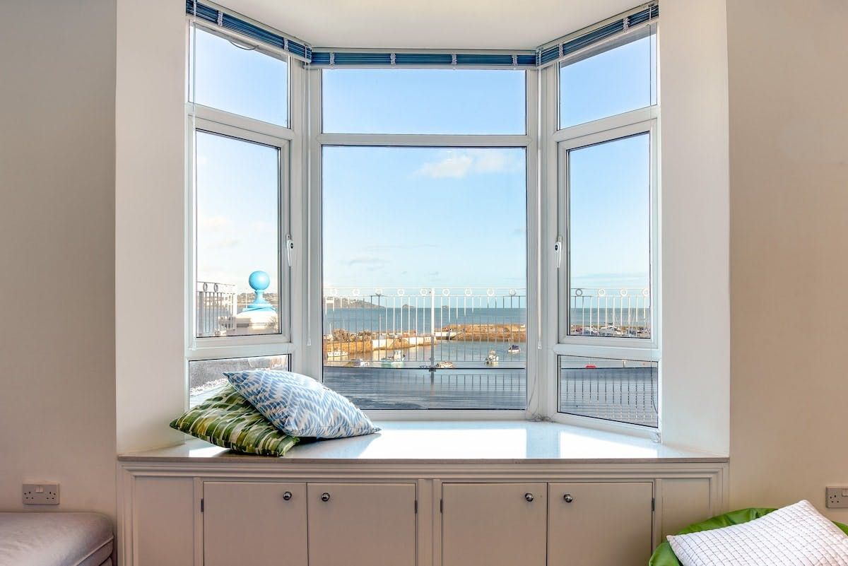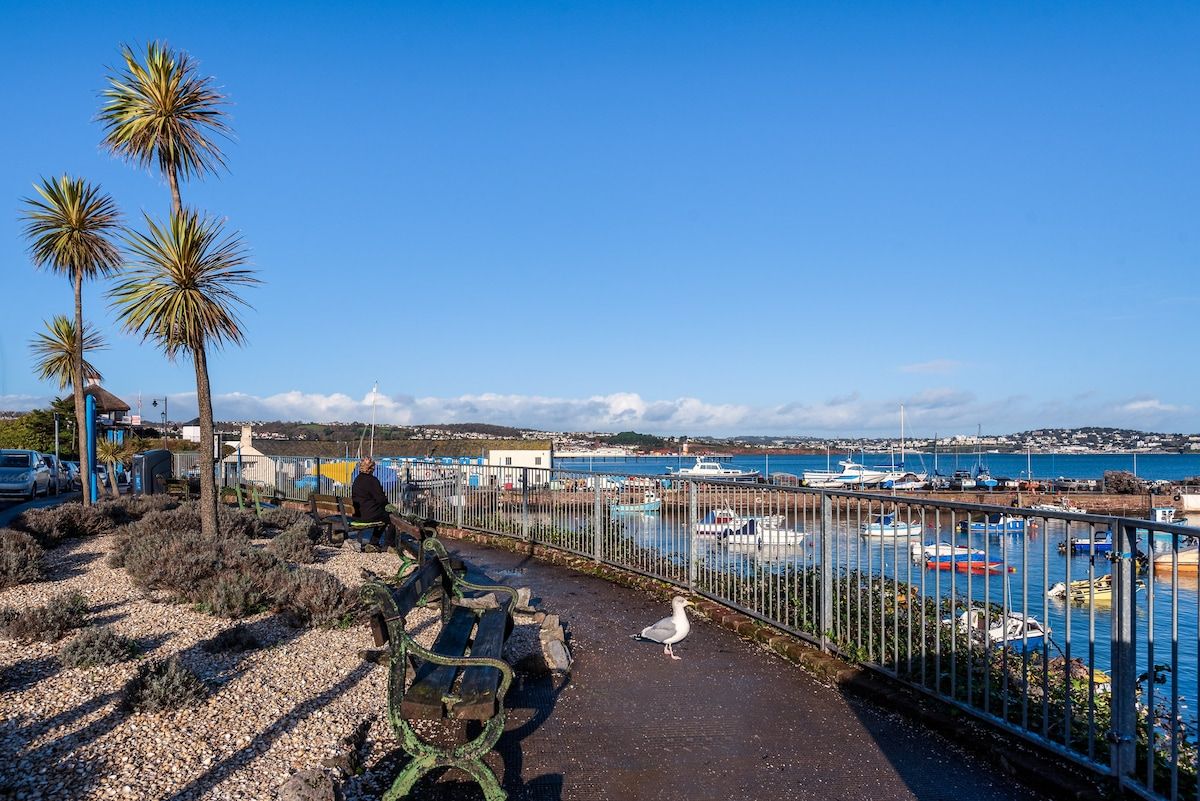 This apartment's showstopping feature is its idyllic view of Paignton harbour, complete with boats bobbing about in the sea and the town of Torquay visible in the distance. This postcard-perfect panorama can be enjoyed from the bay window in the living room or out on the home's large, private terrace, which also has seating for an alfresco supper. Though naturally overshadowed by what's happening outside, this home's interior is well worth closer inspection, too. The stark white walls reflect the copious amounts of natural light nicely and the tiled kitchen is welcomingly sleek, too. The two bathrooms have a bath and a shower, and although it may only be a small thing, we certainly appreciate having the choice. When you're ready for a day out, there's plenty going on in the immediate locale. The red sand of Fairy Cove is just two minutes' walk away, although there's a wealth of other nearby beaches to choose from, too. The park at Roundham Head is a lovely spot for coastal views and can be reached in under ten minutes on foot.