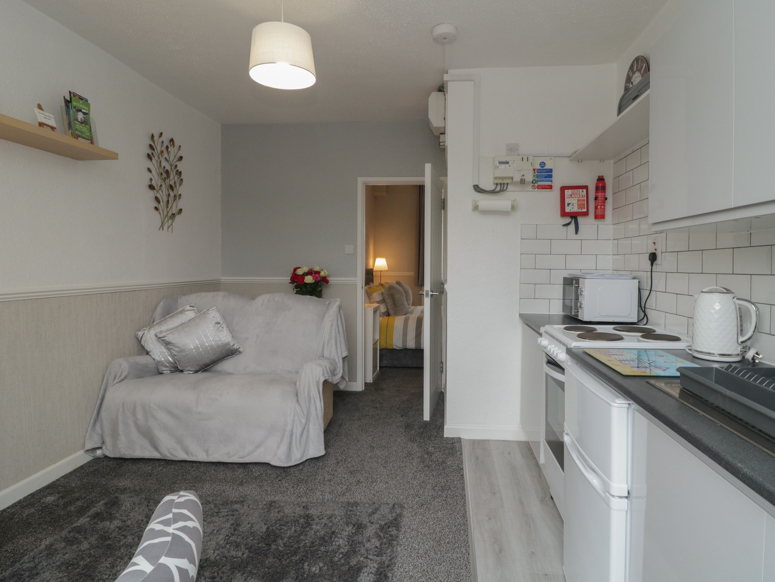 Electric central heating. Electric oven and hob, microwave, fridge/freezer, kettle, toaster. 1 x Smart TV, WiFi. Fuel and power inc. in rent. Bed linen inc. in rent. Highchair and travel cot available on request. Off-road parking for 1 car. Non-enclosed private patio with furniture. Communal non-enclosed gardens, well kept with 3 x benches/picnic tables. Sorry, no pets and no smoking. Shop and pub 0.2 miles, beach 0.5 miles. Note: Towel hire £4 per set hand towel and bath towel (or beach towel) cash only. Note: Fans available on request. Note: Washing machine and tumble dryer (coin-operated) in laundry shed, which also has books and games. Note: The garden is not enclosed. Please note: Please note: This property can only accept week-long bookings from Saturday to Saturday during July, August and September.