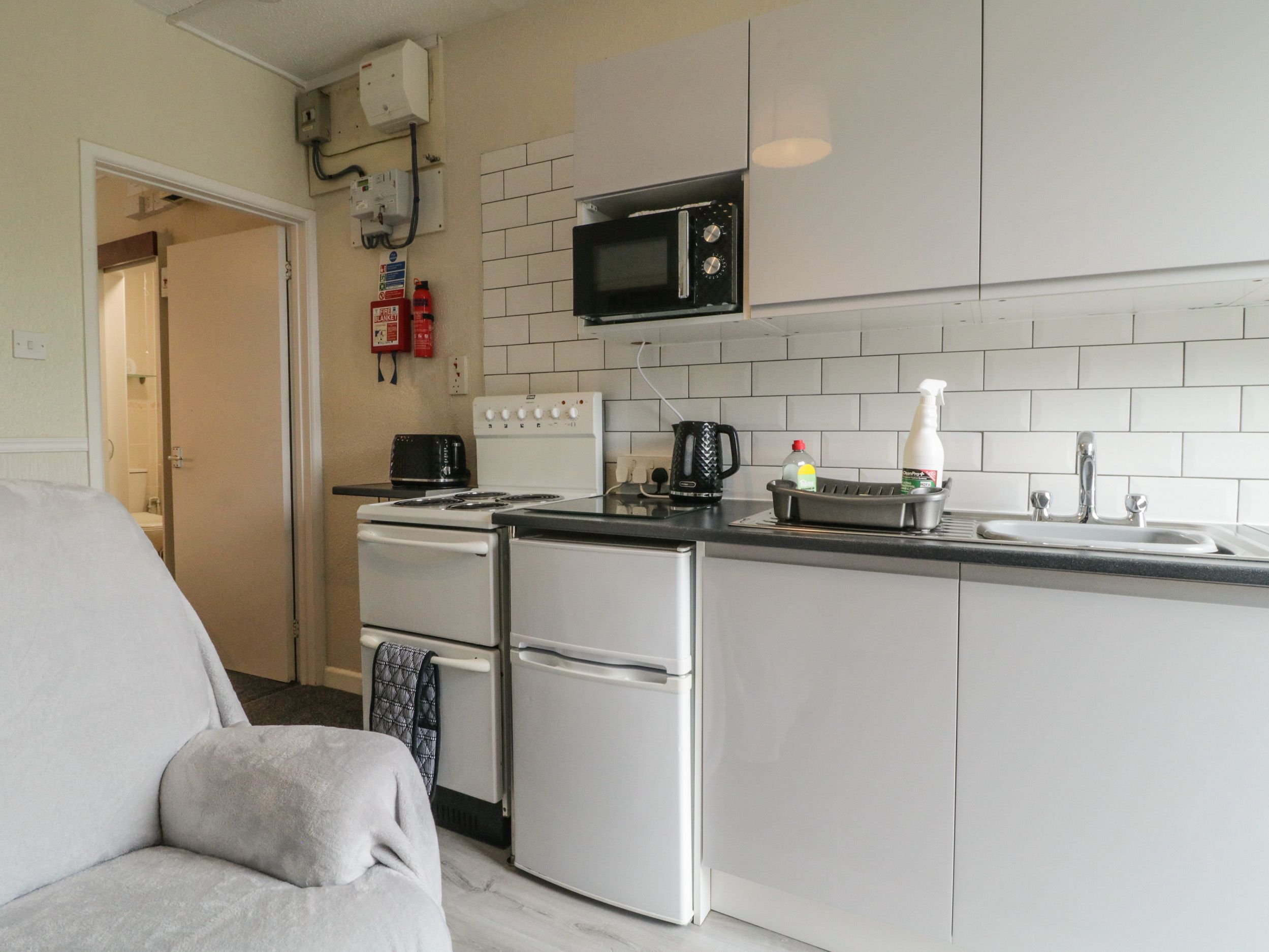 Amenities Electric central heating. Electric oven and hob, microwave, fridge/freezer, kettle, toaster. 1 x Smart TV, WiFi. Fuel and power inc. in rent. Bed linen inc. in rent. Highchair and travel cot available on request. Off-road parking for 1 car. Non-enclosed private patio with furniture. Communal non-enclosed gardens, well kept with 3 x benches/picnic tables. Sorry, no pets and no smoking. Shop and pub 0.2 miles, beach 0.5 miles. Note: Towel hire £4 per set hand towel and bath towel (or beach towel) cash only. Note: Fans available on request. Note: Washing machine and tumble dryer (coin-operated) in laundry shed, which also has books and games. Note: The garden is not enclosed. Please note: This property can only accept week-long bookings from Saturday to Saturday during July, August and September.