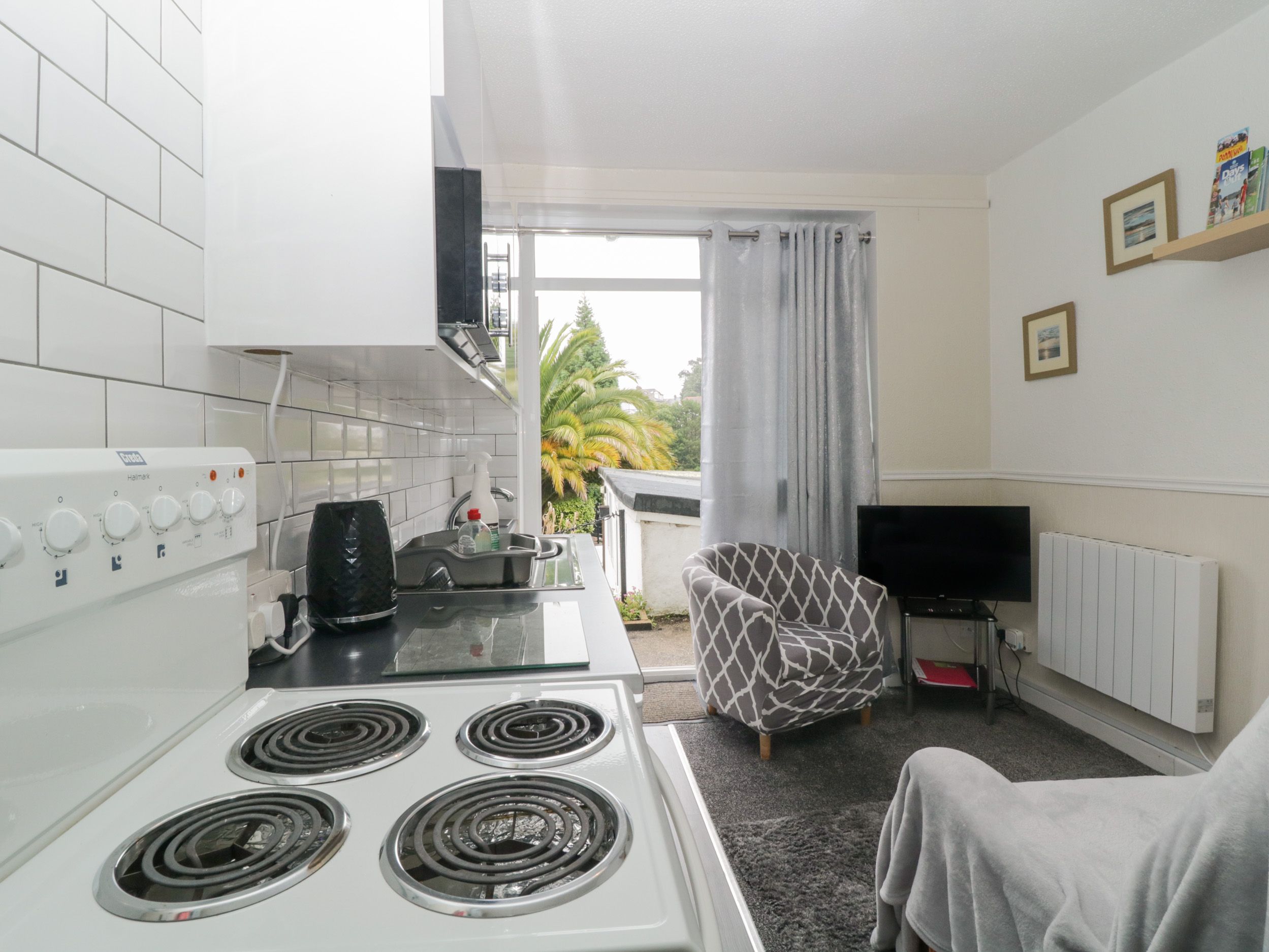 Holiday home Flat 3, Big Tree Holiday Flats, a ground-floor apartment, consists of a kitchen with electric oven and hob, microwave, fridge/freezer, kettle, and toaster, a dining room, and a sitting room with Smart TV. There is a double bedroom with Smart TV and en-suite walk-in shower, basin, and WC, basin, and WC. Outside, there is a communal non-enclosed garden, well-kept with three benches/picnic tables, and off-road parking for one car. Sorry, no pets and no smoking. Shop and pub 0.2 miles, beach 0.5 miles. WiFi, fuel, power, and bed linens included in the rent. Flat 3, Big Tree Holiday Flats welcomes you to explore the coast of Devon. Note: Towel hire 4GBP per set hand towel and bath towel (or beach towel) cash only. Note: Fans available on request. Note: Washing machine and tumble dryer (coin-operated) in laundry shed, which also has books and games. Note: The garden is not enclosed. Please note: This property can only accept week-long bookings from Saturday to Saturday during July, August and September.