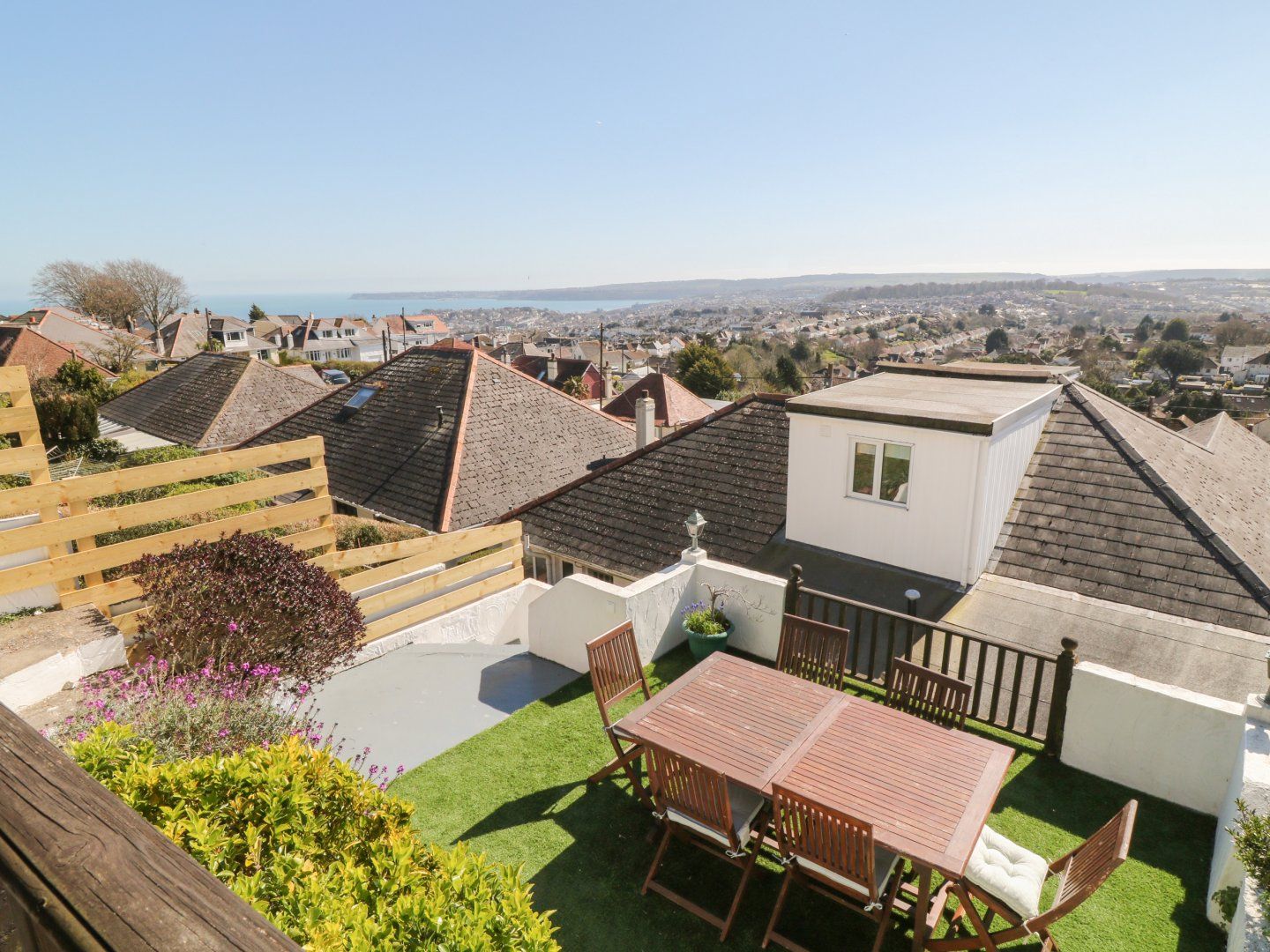 Amenities Gas central heating. Gas range cooker with 6-ring hob, electric oven and grill, microwave, fridge/freezer, washing machine, dishwasher, Smart TV, 4 x TVs, WiFi, air hockey table. Fuel and power inc. in rent. Bed linen and towels inc. in rent. Off-road parking for one car and roadside parking on a first-come, first-served basis. Front terrace garden with seating. Multi-level garden with Astroturf, swing seat, dining seating and external lodge. Sorry, no pets and no smoking. Shop 0.2 miles, pub 1.1 miles, beach 1.9 miles. Note: There are around 20 stone steps to the exterior and more towards the entrance and garden.
