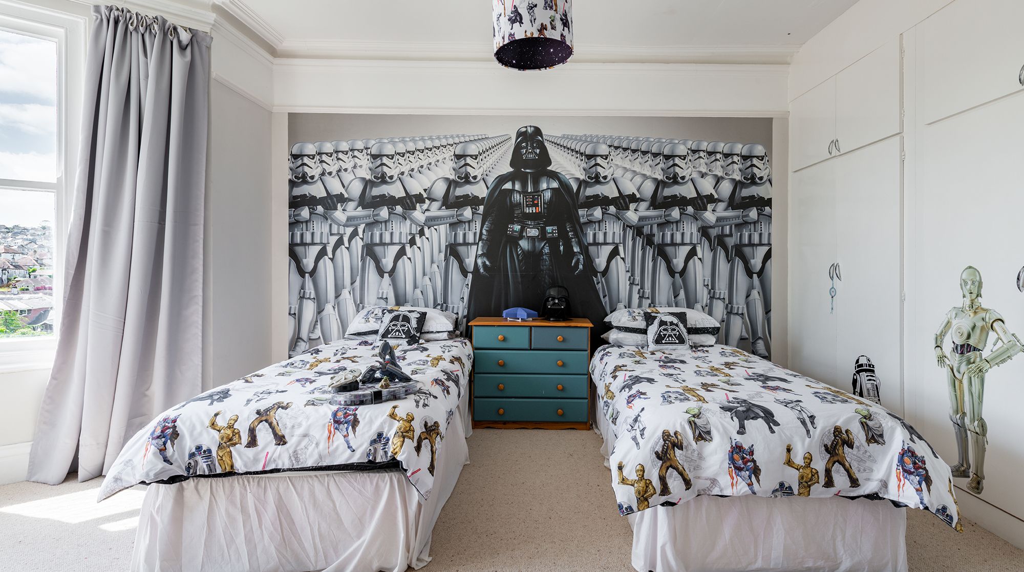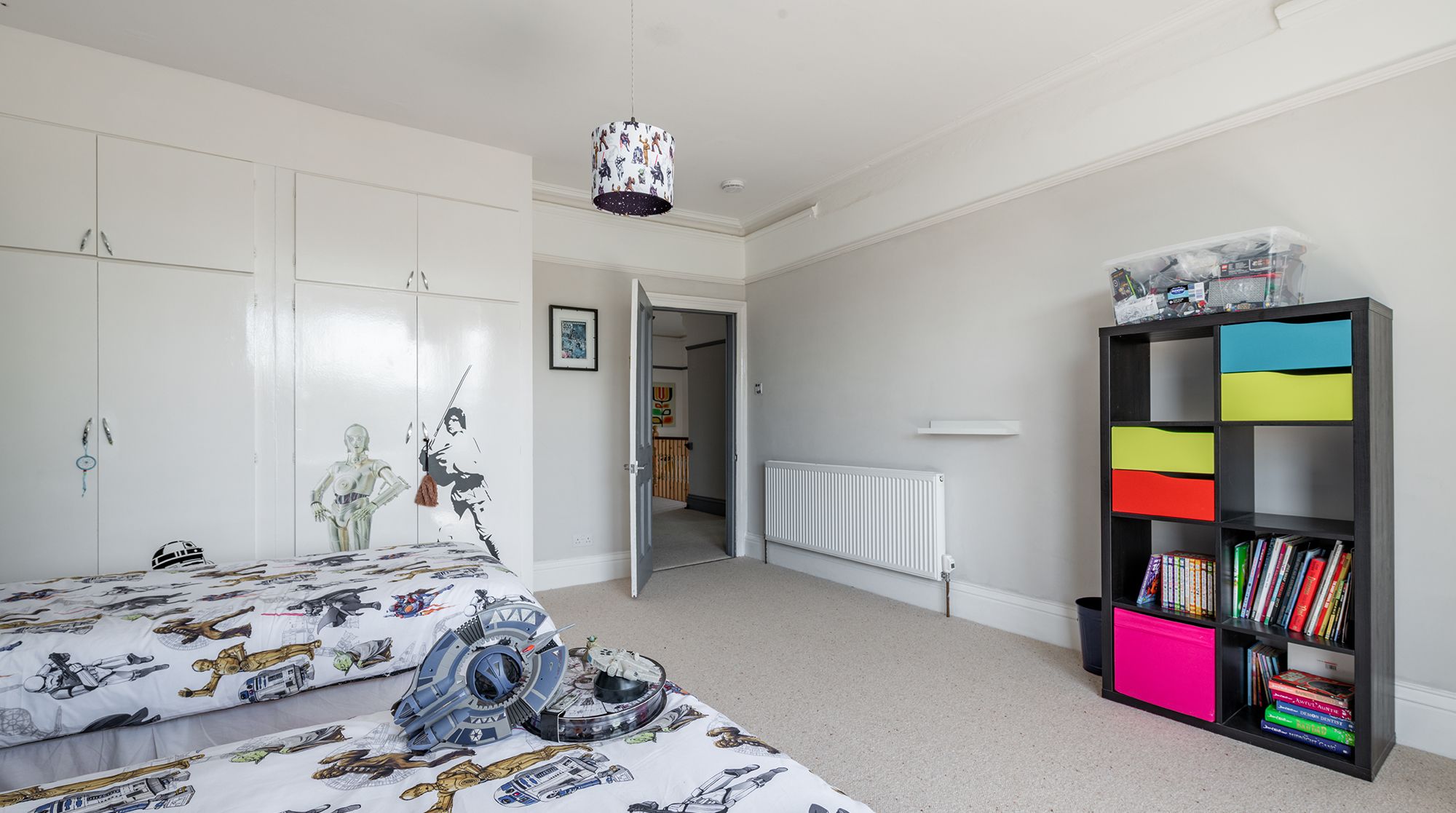 When it’s time to come indoors, head from the decked veranda through the French doors into the living space. Curl up on the sofa to watch a family film and even make it cosier with the wood-burning stove, which can be lit for additional warmth or roasting marshmallows. Your little ones hopefully won’t object to bedtime with the twin rooms one of which is Star Wars-themed and the other which features a dollhouse mounted on the wall and a whimsical fairy wall hanging to decorate. We can’t promise they’ll want to stop playing and go to sleep though.