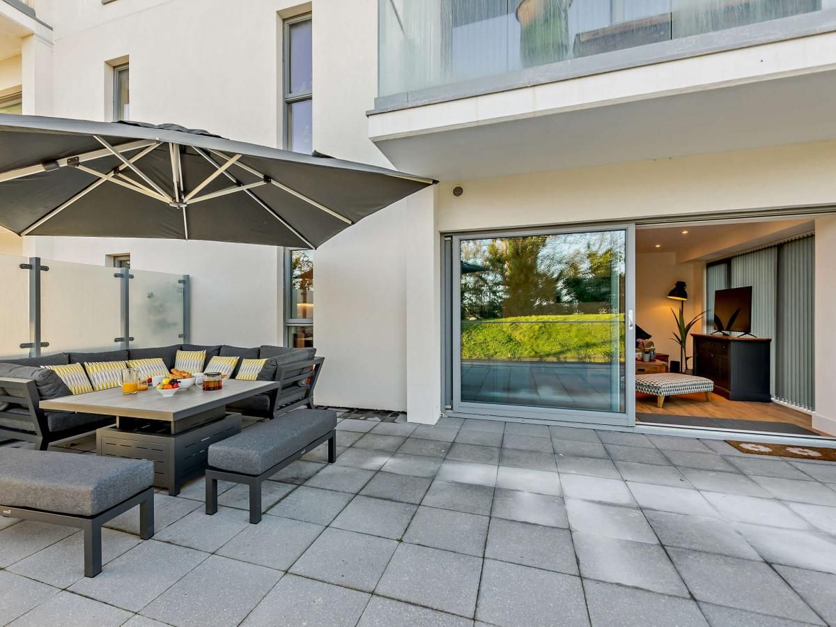 The apartment has an enclosed patio, a lovely open-plan living space, and underfloor heating throughout.