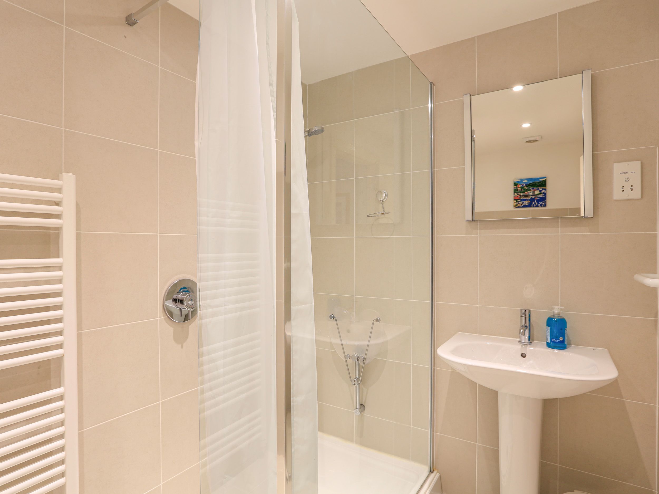 Gas central heating and hot water. Oven, microwave, toaster, kettle, fridge/freezer. Wifi available. Bedroom balcony. Stunning views. Use of communal gardens. Allocated parking space for one car. Bed linen and bath towels supplied - guests will need to provide their own beach towels. There is a communal laundry room (adjacent to parking area) with washing machine and tumble dryer (slot meter). Telephone available for local/incoming calls only. Strictly No Smoking