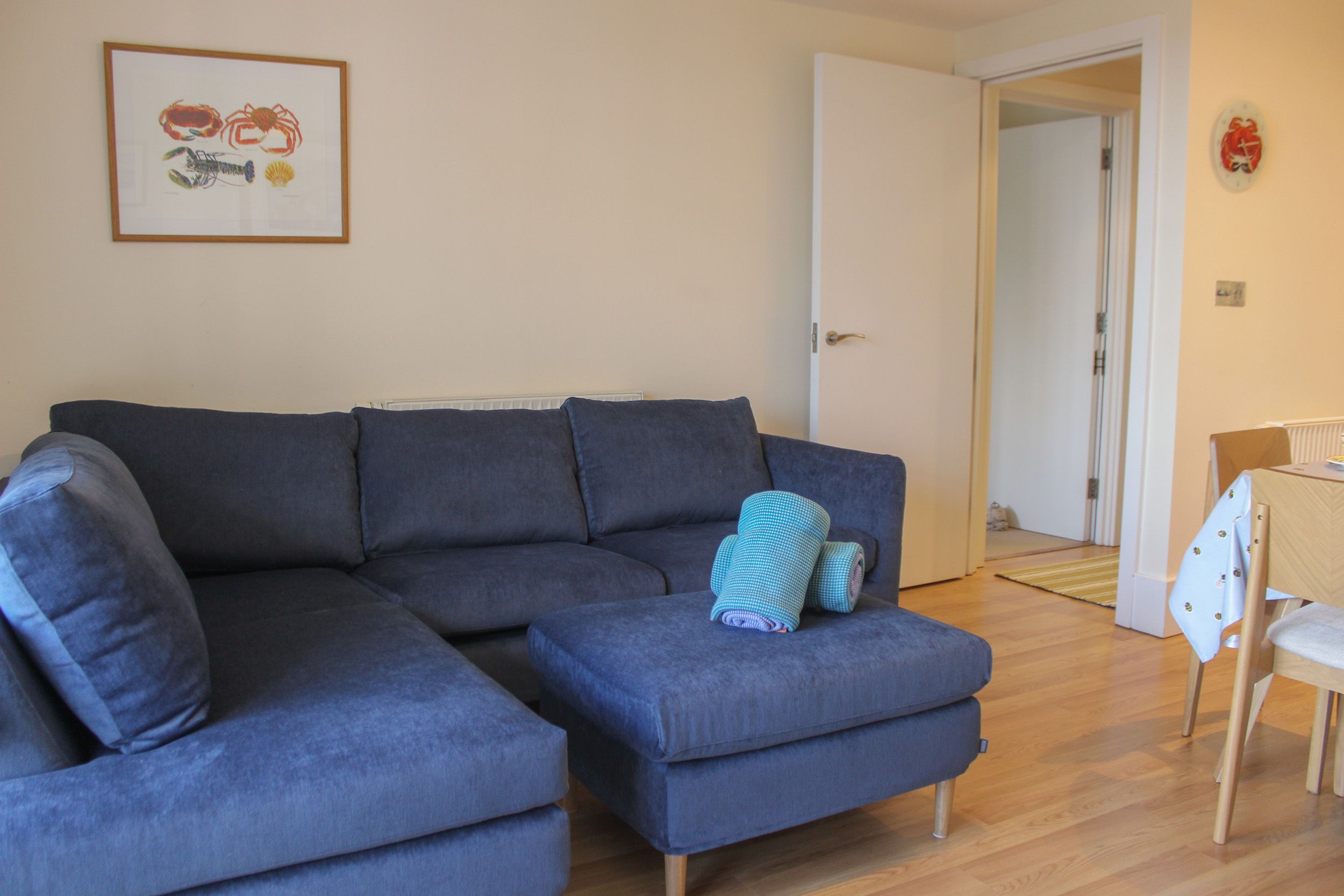 The apartment is situated in a lovely part of Salcombe with reasonably easy access to the centre.. The bedroom and bathrooms are spacious and well appointed. However the living areais too small for the amount of people it purports to cater for. If full it would be impossible for everyone to sit on the sofas and at the dining table. Also some of the fittings are of very poor quality particularly the pans and the lounge cushions.Our main disappointment however was the extremely poor level of cleaning, particularly in the kitchen area. The cupboard doors, handles and work surfaces are very dirty. The toaster was also very dirty. We had to wash most of the glasses, cups, cutlery, plates and bowls in the dishwasher before we could use them. Totally unacceptable! We have stayed in other Coast and Country properties and have never had this problem before. These problems need to be addressed ASAP!