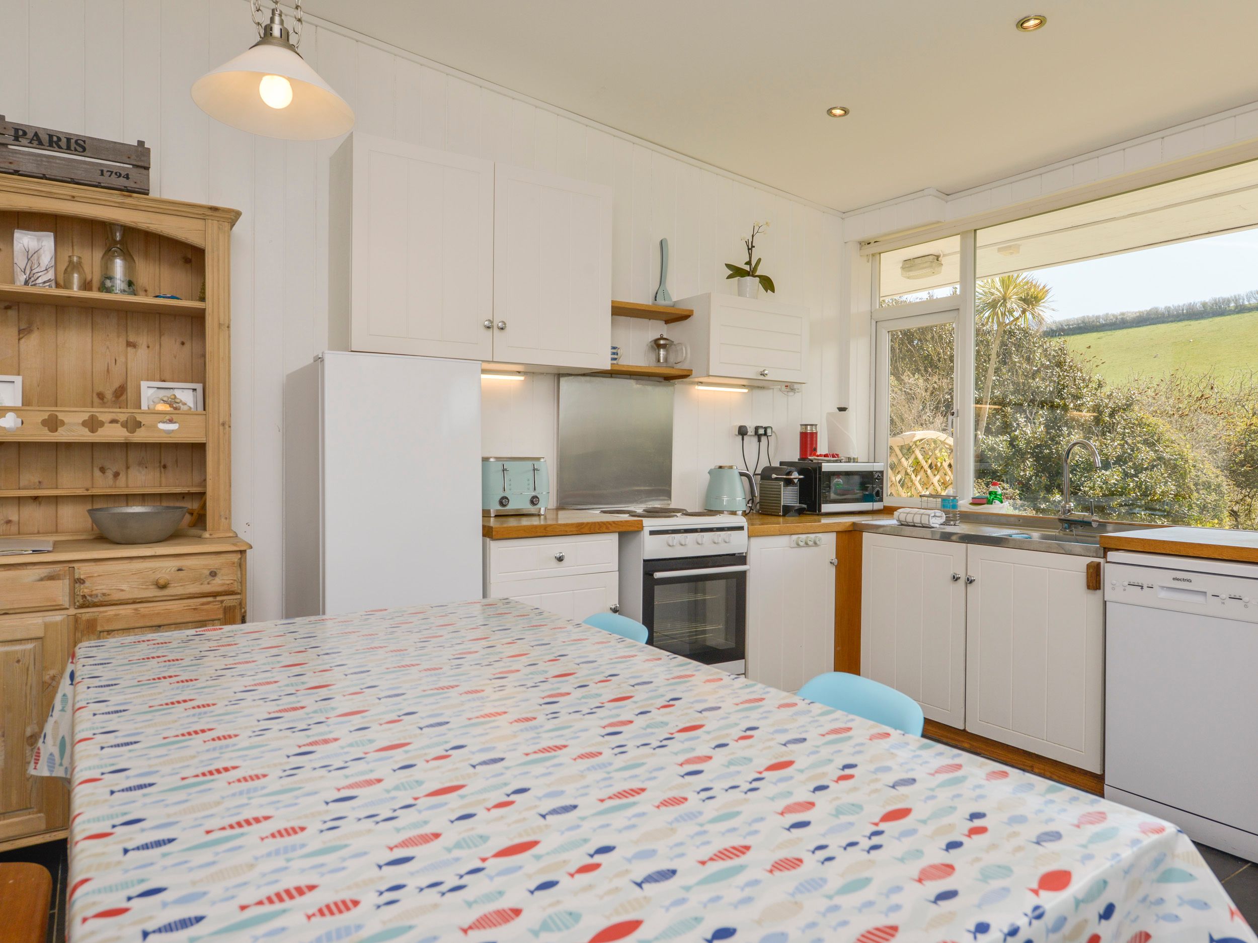 Comfortable, very well equipped cottage set in lovely grounds, plenty of room for the kids to play.. The main double bedroom feels a little small and has a sliding doorway through to the bunk bed room, but the bed was comfortable. The quilts are very thin but the electric wall mounted heaters are adjustable. No bath, but a baby bath and high chair are in the cottage (no need to request these). The sink tap has scolding water instantly so be careful. We went off high season and all the other cottages were empty so it was very quiet and great value for money.. I have stayed in many holiday cottages and this is one of the better ones. There are 2 sets of steps down from the car park, but you could also get to the cottage via the sloping lawns (the complex owner drives his sit on lawn mower down and through the hole in the hedge to access the lawns). There is 1 dedicated parking space per cottage, however the car park adjoins a lawn with no kerb which enabled me to park my boat easily, with the owners permission, if you have 2 cars there is street parking relatively close.