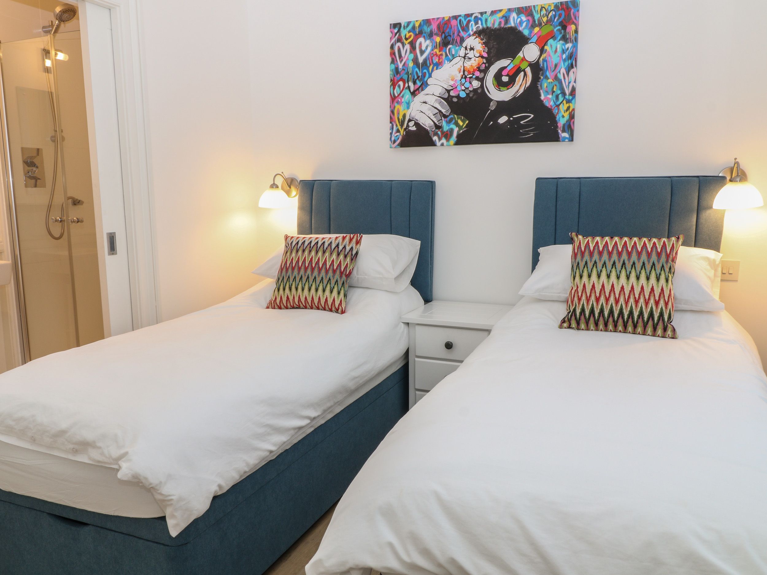 Accomodation Details All-ground-floor. Two bedrooms: 1 x double with en-suite bath, shower over, basin and WC, 1 x twin (can be a king-size on request) with TV and en-suite walk-in shower, basin, heated towel rail and WC. Open-plan living area, kitchen and dining area with table for four