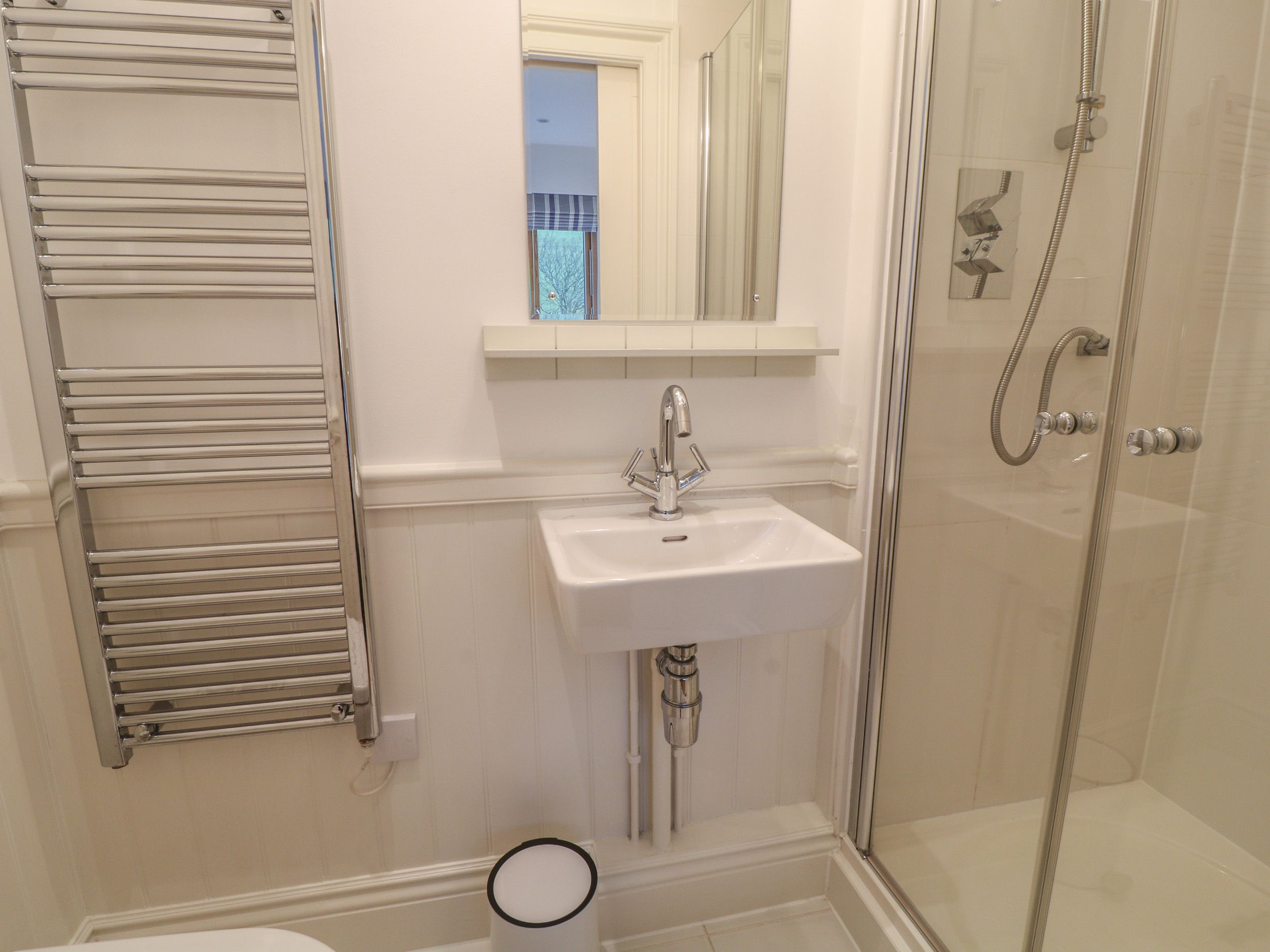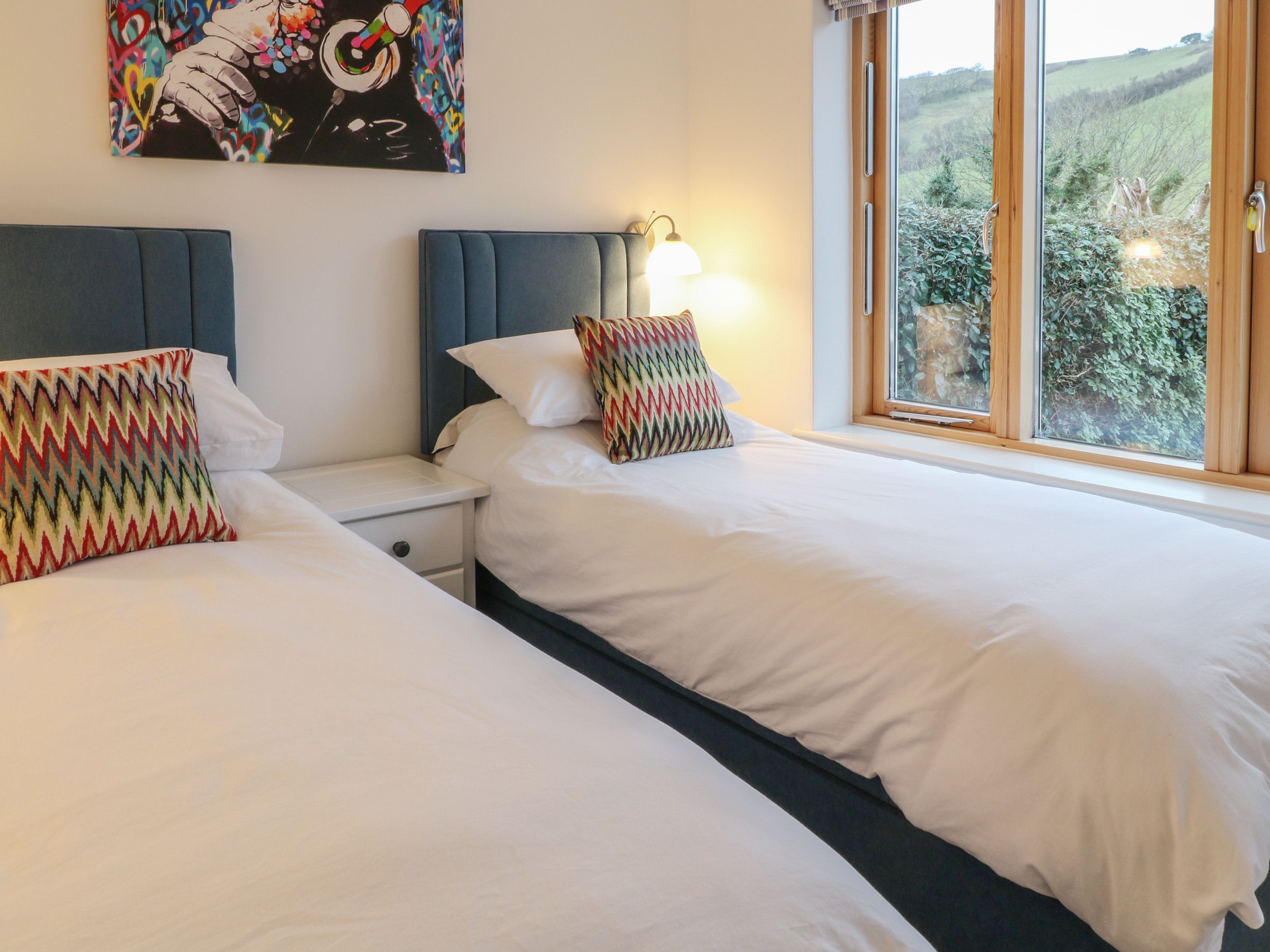 Amenities Underfloor heating throughout. Electric oven and ceramic hob, microwave, fridge/freezer, dishwasher, toaster, kettle, coffee maker, washer/dryer, 43” TV with Freeview, Netflix - Own login required, Sonos soundbar, high speed WiFi, and a selection of DVD's and games. Fuel and power inc. in rent. Bed linen and towels inc. in rent. Allocated off-road parking for one car plus overflow car park for additional vehicles. Enclosed garden and patio with table, four chairs, parasol, sun loungers. Communal gardens, all-weather tennis court and outdoor heated swimming pool (usually open between May and September After September, availability cannot be guaranteed and on occasions due to unforeseen circumstances, such as maintenance or poor weather). Pool Opening times 8am - 6pm. Beach 5 minutes’ walk. Sorry, no pets and no smoking. Shop 4.3 miles, pub 3.3 miles by road (1 mile on foot along the coastal path) Please note, the property is not located on a holiday resort, all properties are private or permanent homes, please be respectful of other residents.