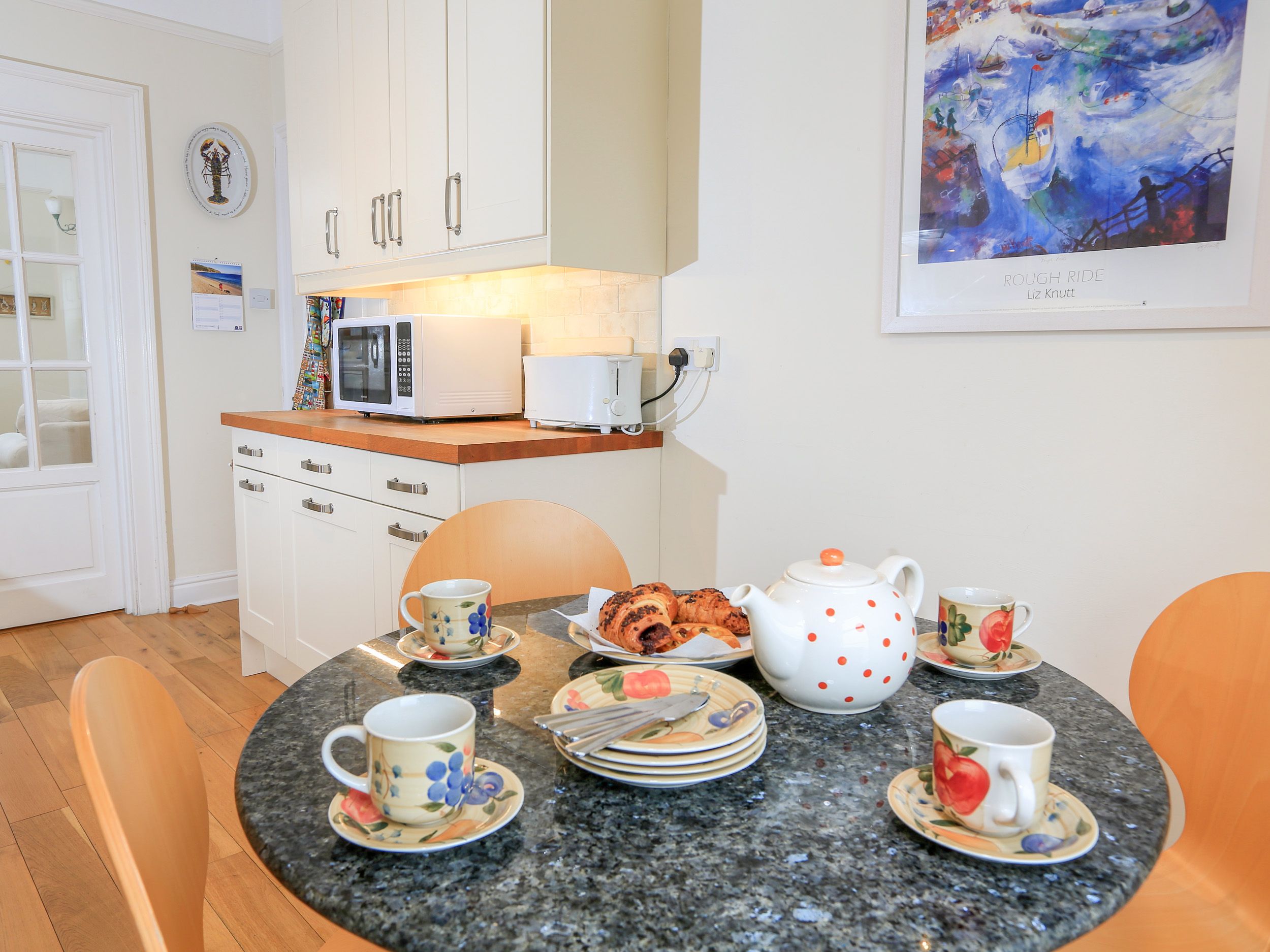 Accomodation Details Two bedrooms: 1 x King-size room, 1 x twin with additional 'day bed'. Family bathroom with power shower and additional shower room on top floor. Open plan kitchen/lounge/dining room. Gravelled outdoor area at front with benches.