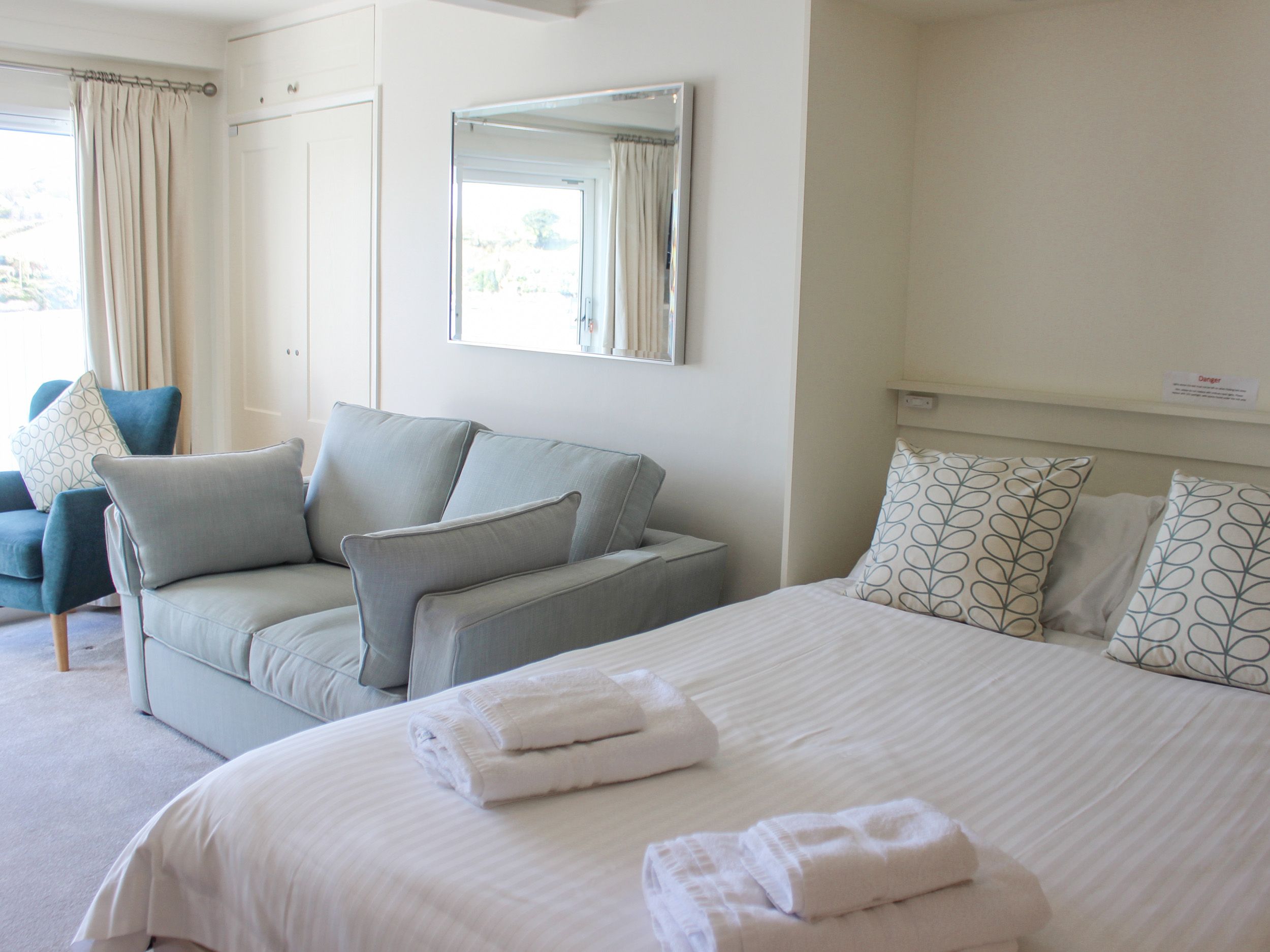 Accomodation Details Third floor, single room studio apartment on the beautiful Salcombe waterfront with good size balcony spectacular views. Includes use of private outdoor pool, communal gardens, mooring and parking space. Sleeps 2 Fold-down double bed, kitchen, dining area and sitting area with single sofa bed (by request) for an additional family member. New bathroom for 2021 with bath and high pressure power shower with 3 settings, basin, WC, heated towel rail, noise free night light. Ground-floor communal utilities including coin operated washing machine and dryers.