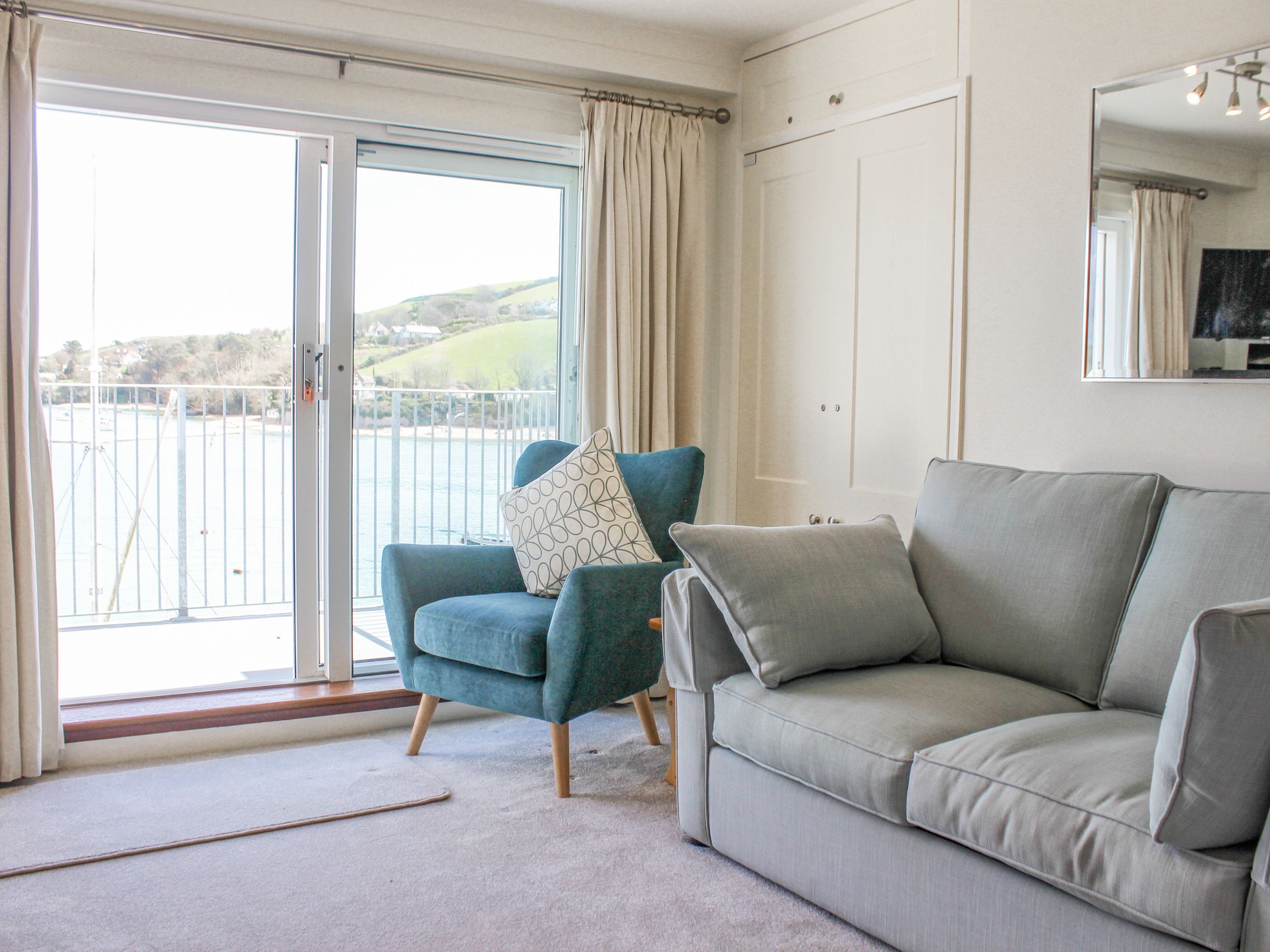 Boats of up to 5m (16ft 4inches) long and 2m (6ft 6 inches) beam, may be moored on the pontoon. Balcony with table and chairs. Access to communal garden, slipway, pontoon outdoor heated swimming pool. Sorry, no pets. Strictly No Smoking allowed. Adjacent to shops, pubs and restaurants.