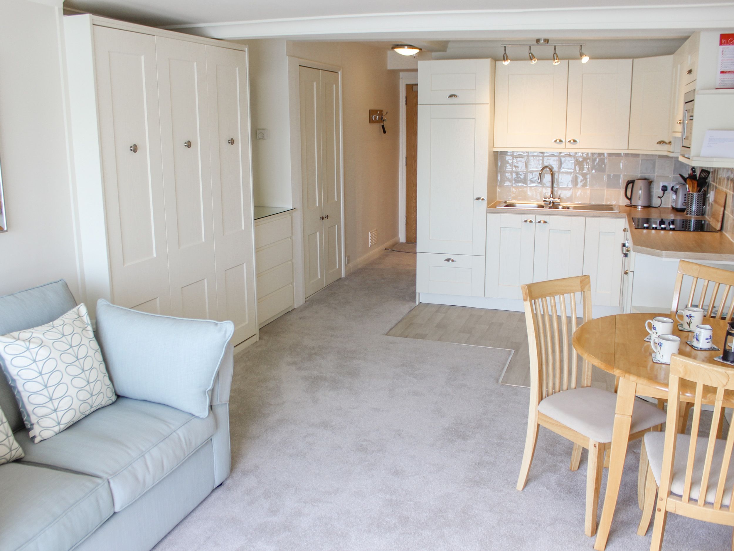 Holiday home Salcombe 34 is a third-floor studio apartment on the beautiful Salcombe waterfront. The studio-style apartment comes with a pull-down double bed, a kitchen area, a dining area and a sitting area with a single sofa bed, which can be made up on request, however ideally suited for two people. There is also a bathroom with a shower over bath, basin and WC and a communal utility on the ground floor. The apartment has a private balcony with table and chairs and access to a communal garden and outdoor swimming pool. Salcombe 34 is a superb base in Devon.