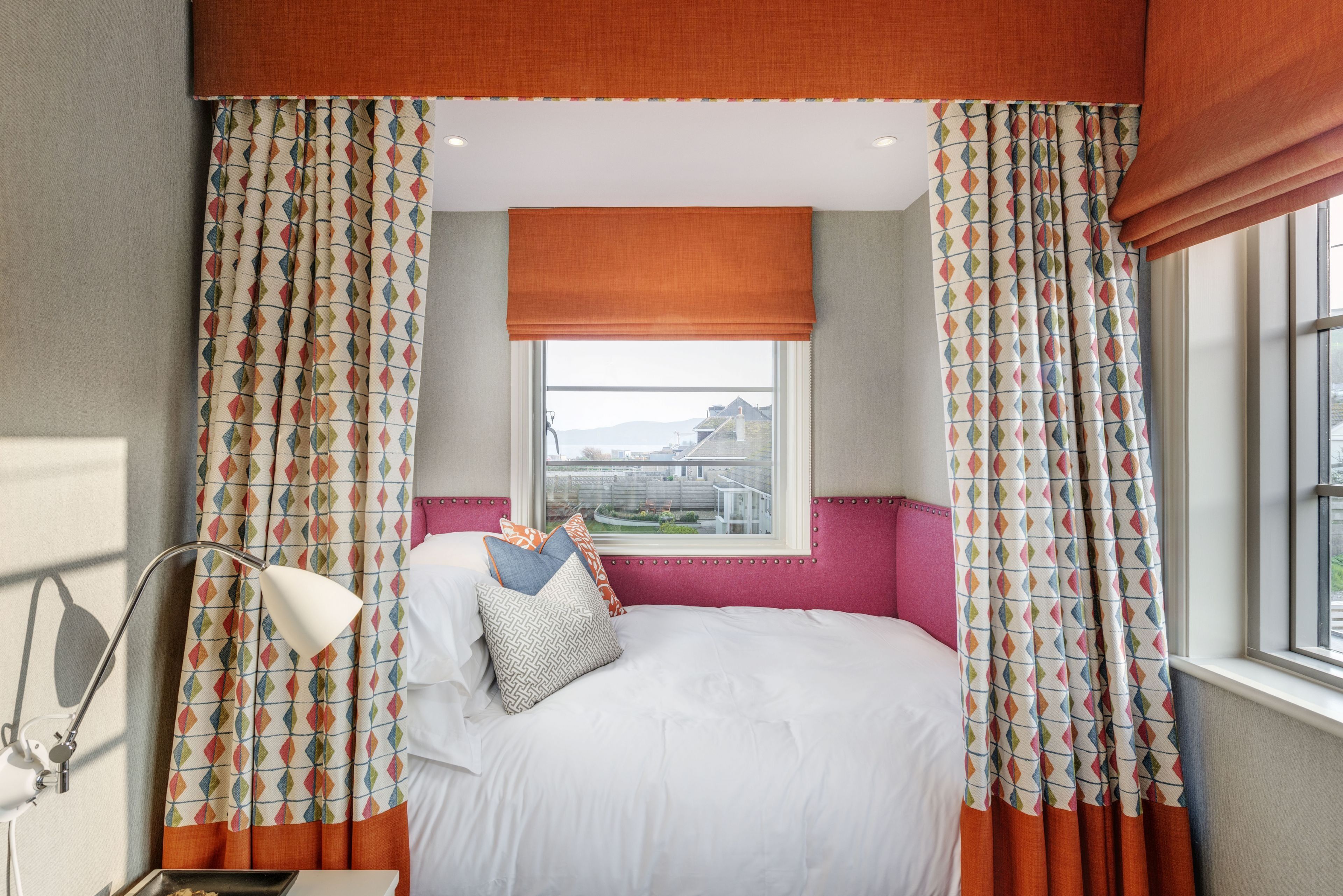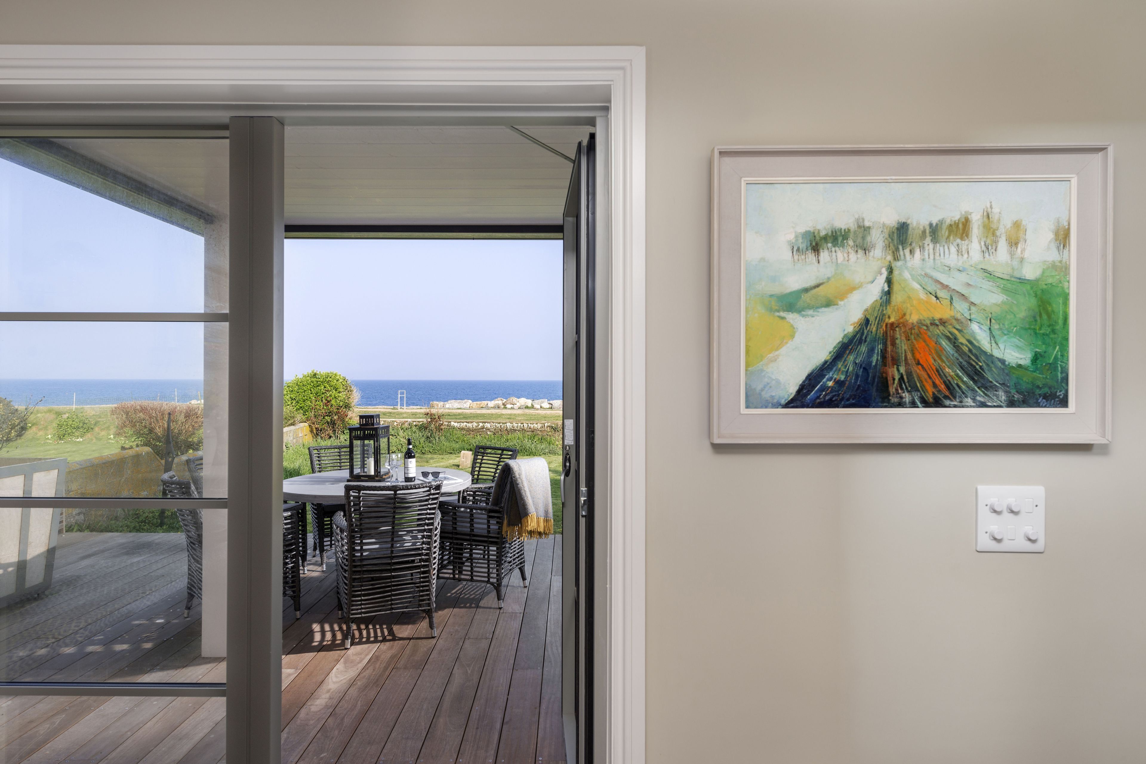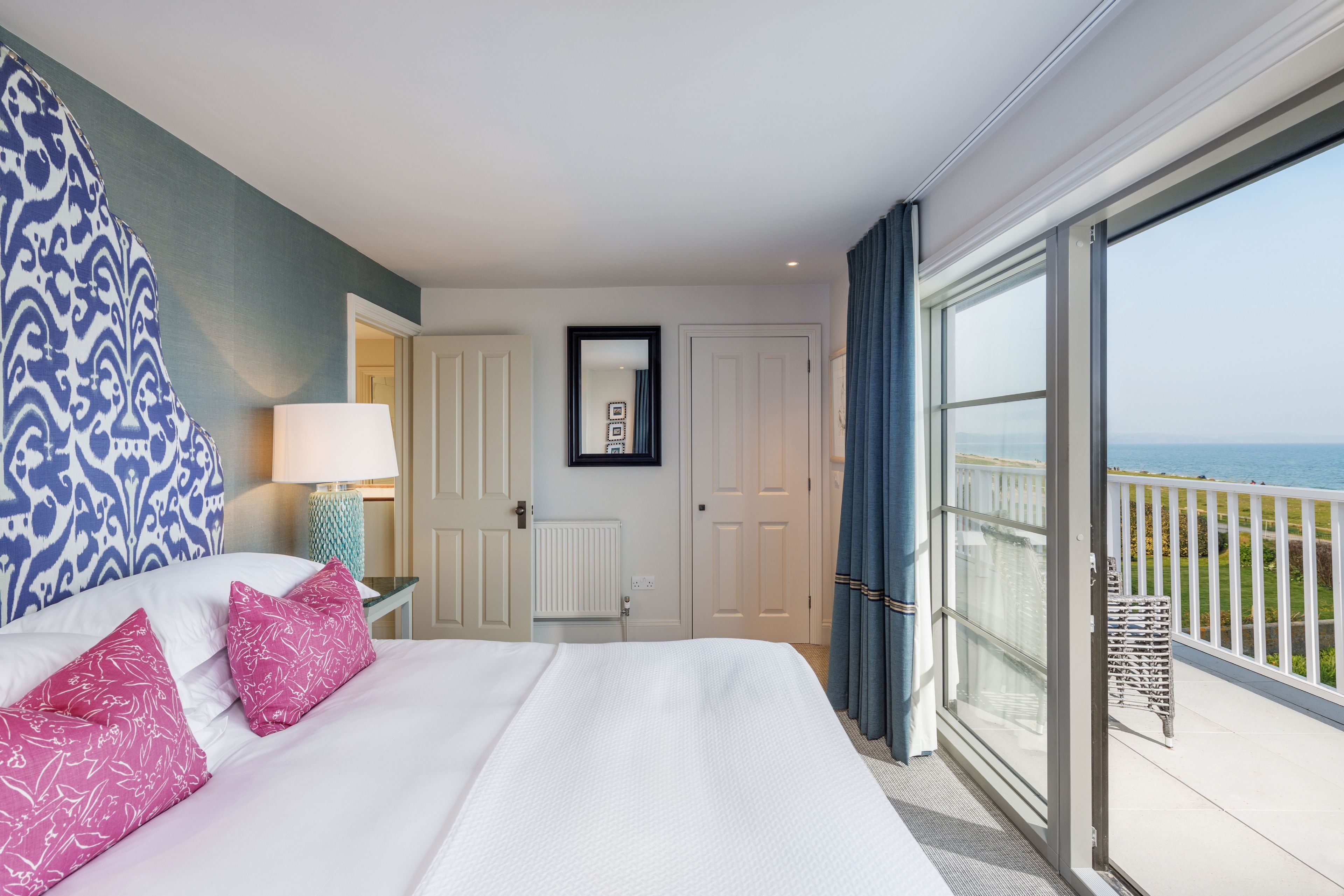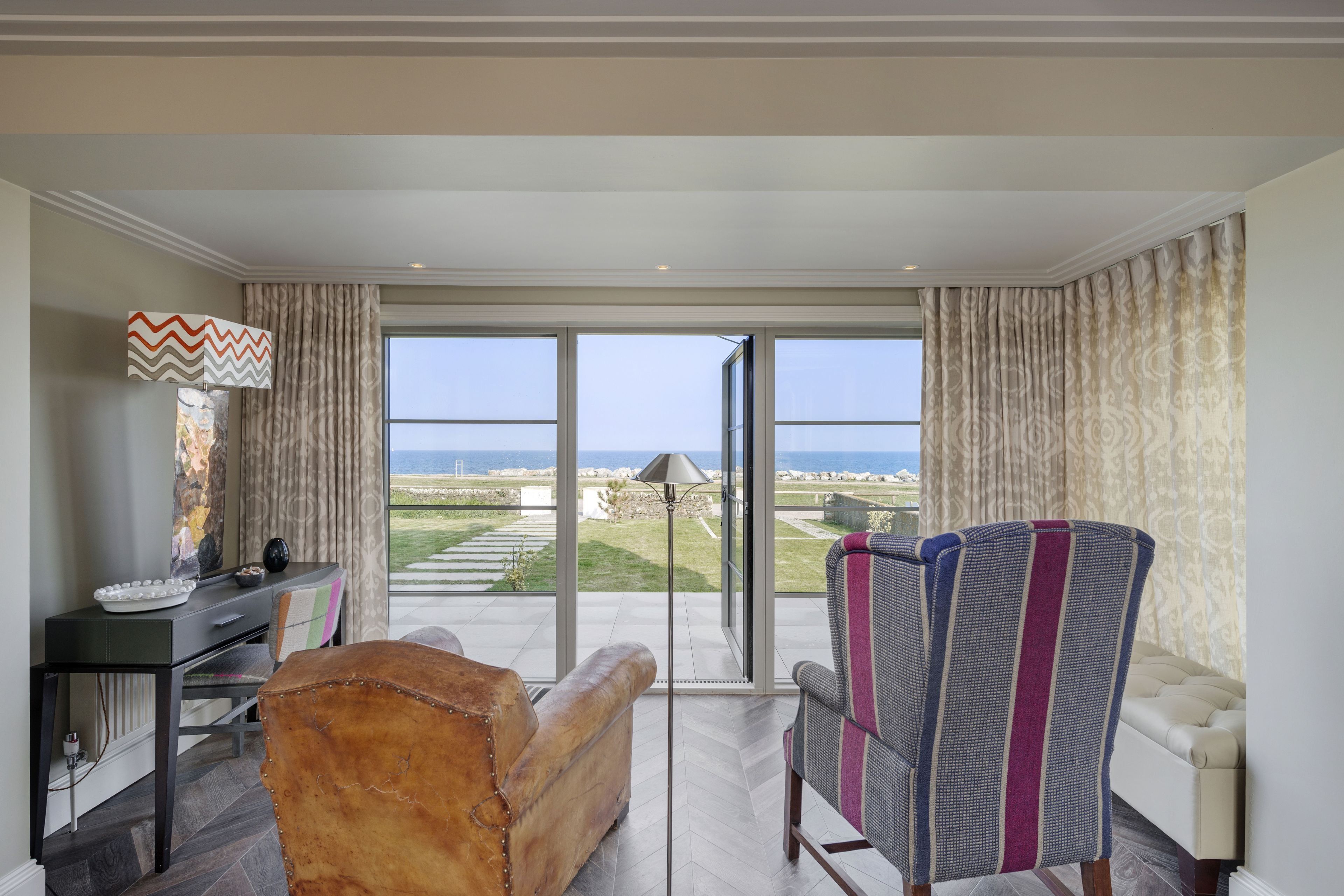 Located on the first floor with access to a balcony with sea views. King size bed, bedside table and lamp, built-in wardrobe and chest of drawers. The ground floor cinema room has sleeping for two guests with an en suite shower room.