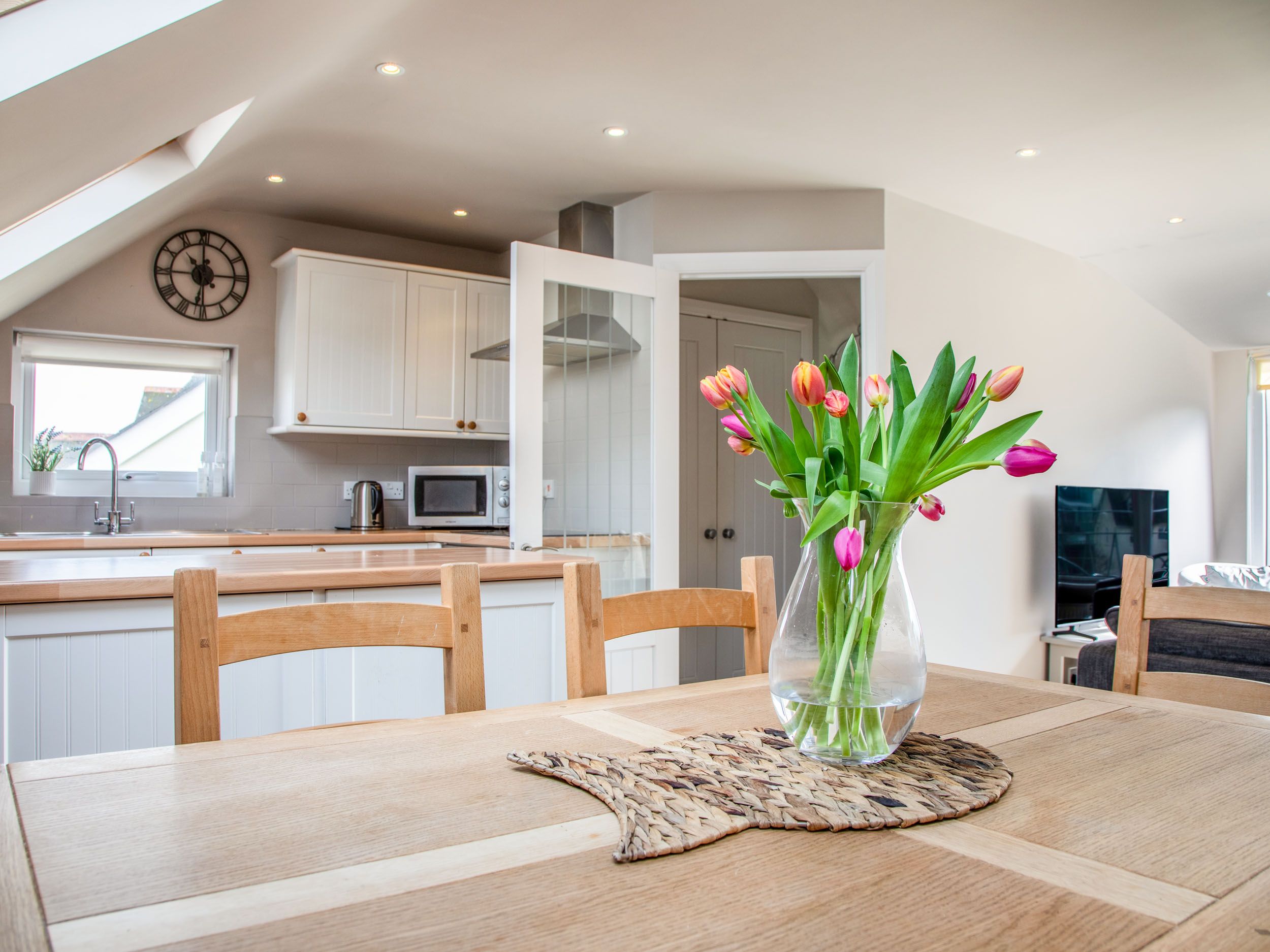 The property offers reverse-level accommodation. The living areas in the property consist of a second-floor open-plan living space with a kitchen housing an electric oven and hob, microwave, fridge, dishwasher, a fridge/freezer and washer/dryer, a dining area with seating for six people, a sitting area with a TV, along with a balcony. The bedrooms consist of a first-floor king-size with a TV and an en-suite shower room, a first-floor twin and a first-floor double, as well as a first-floor bathroom. Outside, the balcony hosts furniture, and there is permit parking available for one car. Within 0.1 miles, you will find a shop and a pub, and within 1 mile, a beach. One well-behaved pet welcome. Please note that this is a non-smoking property. WiFi, fuel, power, bed linen and towels are all included in the rent. A break in a desirable location awaits at Higher Cliftonville!