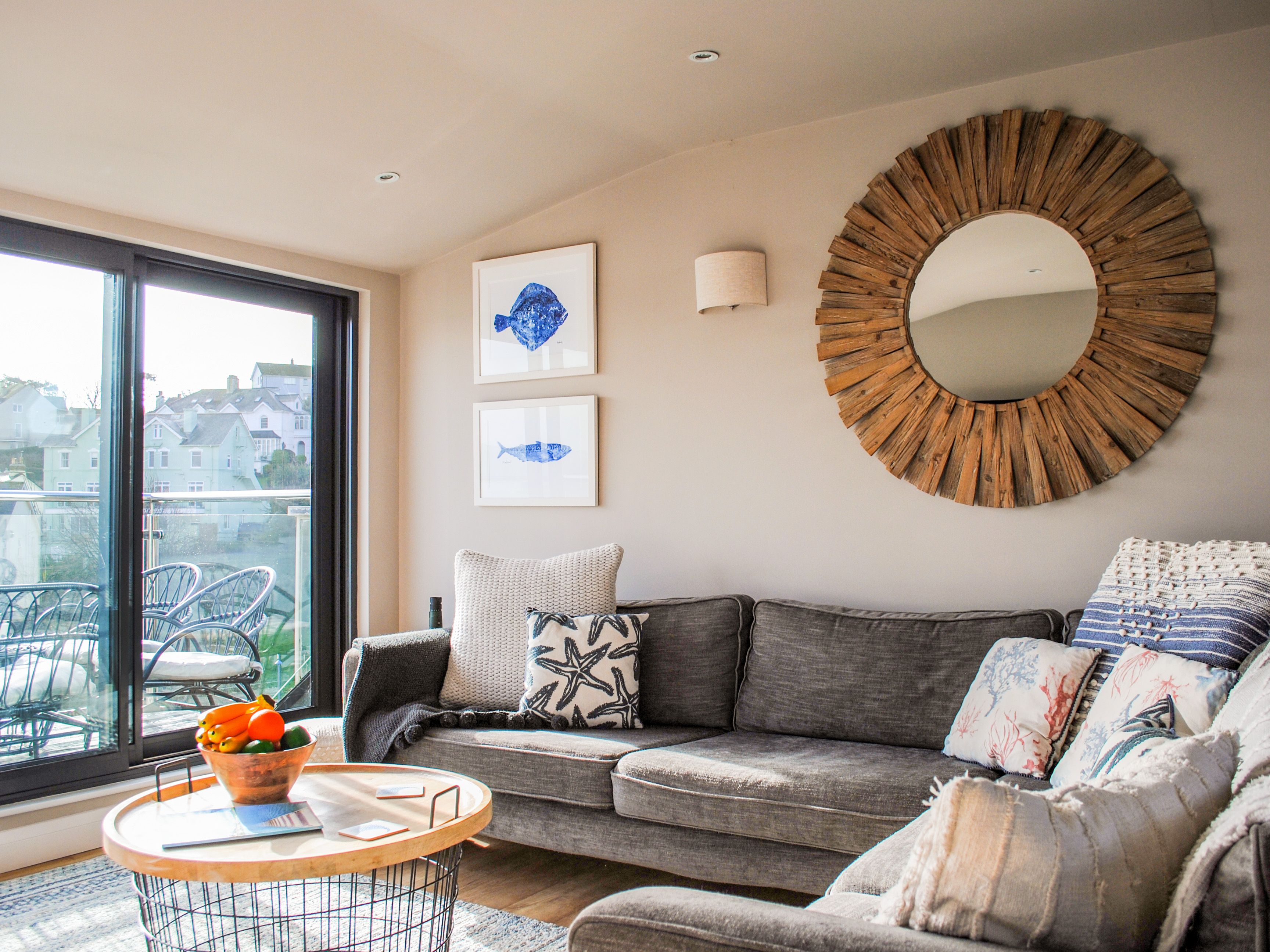 Accomodation Details A wonderful duplex apartment resting in Salcombe. Reverse-level. Set over first and second floors. Three bedrooms: 1 x first-floor king-size with en-suite walk-in shower, basin, heated towel rail and WC, 1 x first-floor twin, 1 x first-floor double. First-floor bathroom with bath, shower over, basin, heated towel rail and WC. Second-floor open-plan living space with kitchen, dining area and sitting area with balcony. Second-floor utility