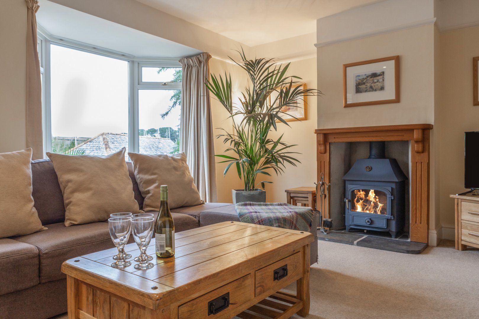 The kitchen is equipped with a Fridge/freezer, washing machine, oven, hob, tumble dryer, dishwasher, microwave, toaster, kettle. Wifi available. Stunning Mediterranean style garden, patio with table and chairs, gas barbecue, built in pond. Snug with Playstation 3. No smoking. Note: Log burner is decorative only, not in use.