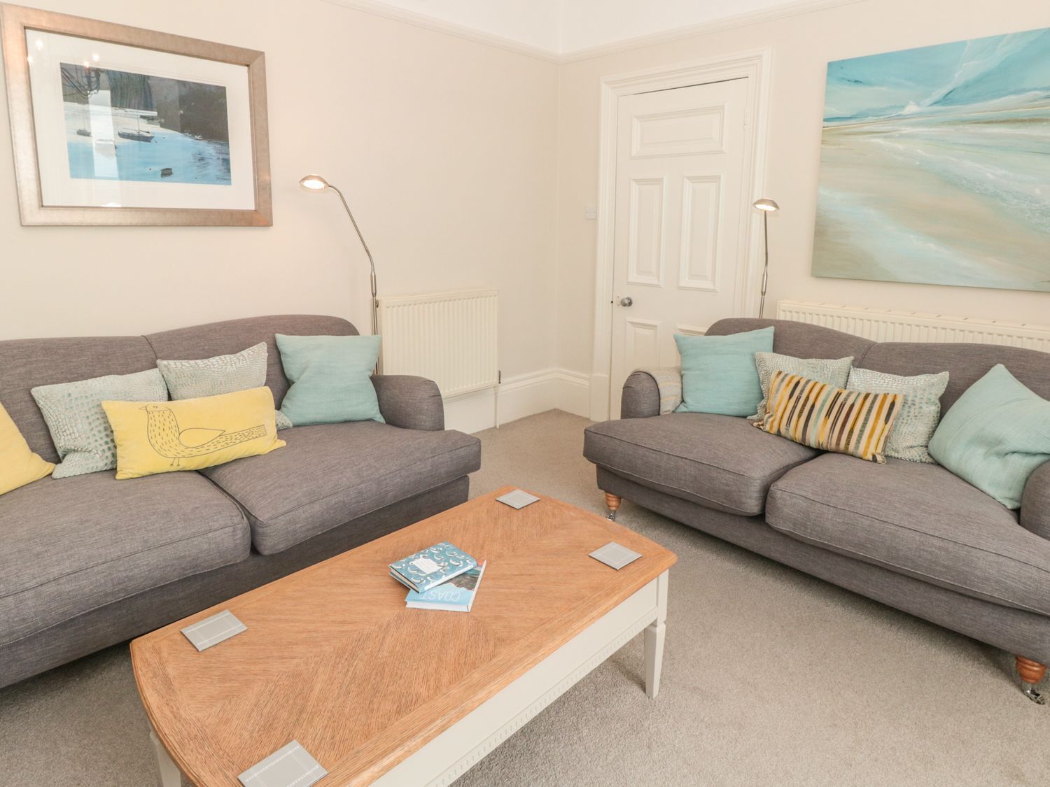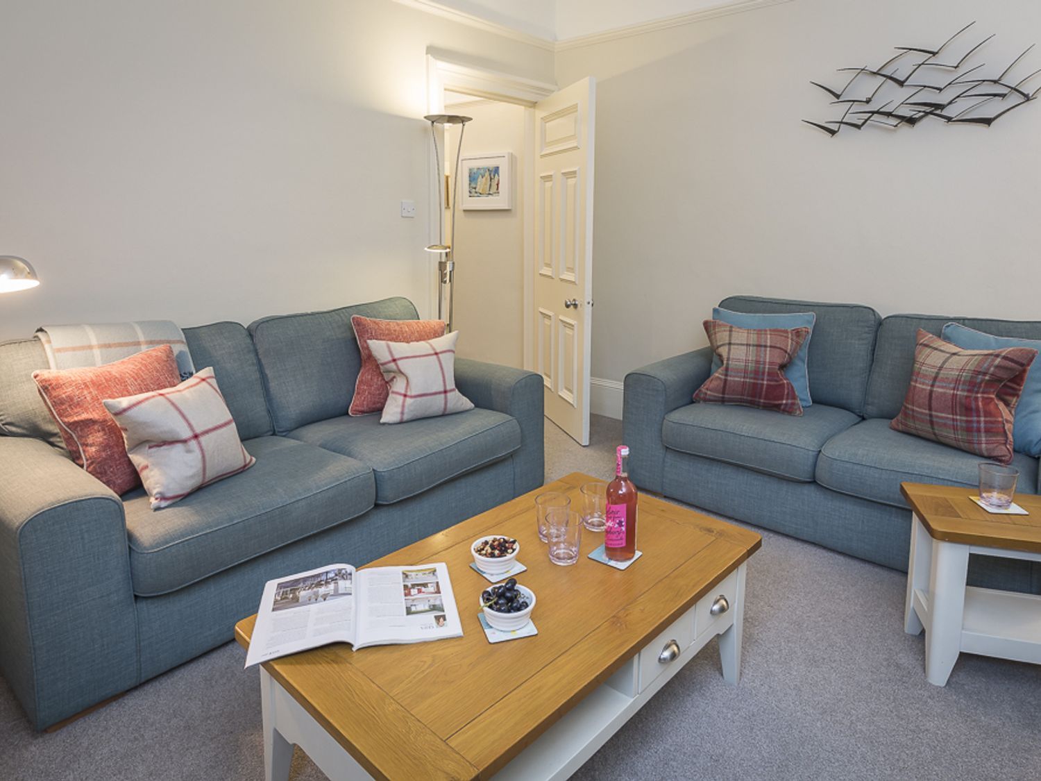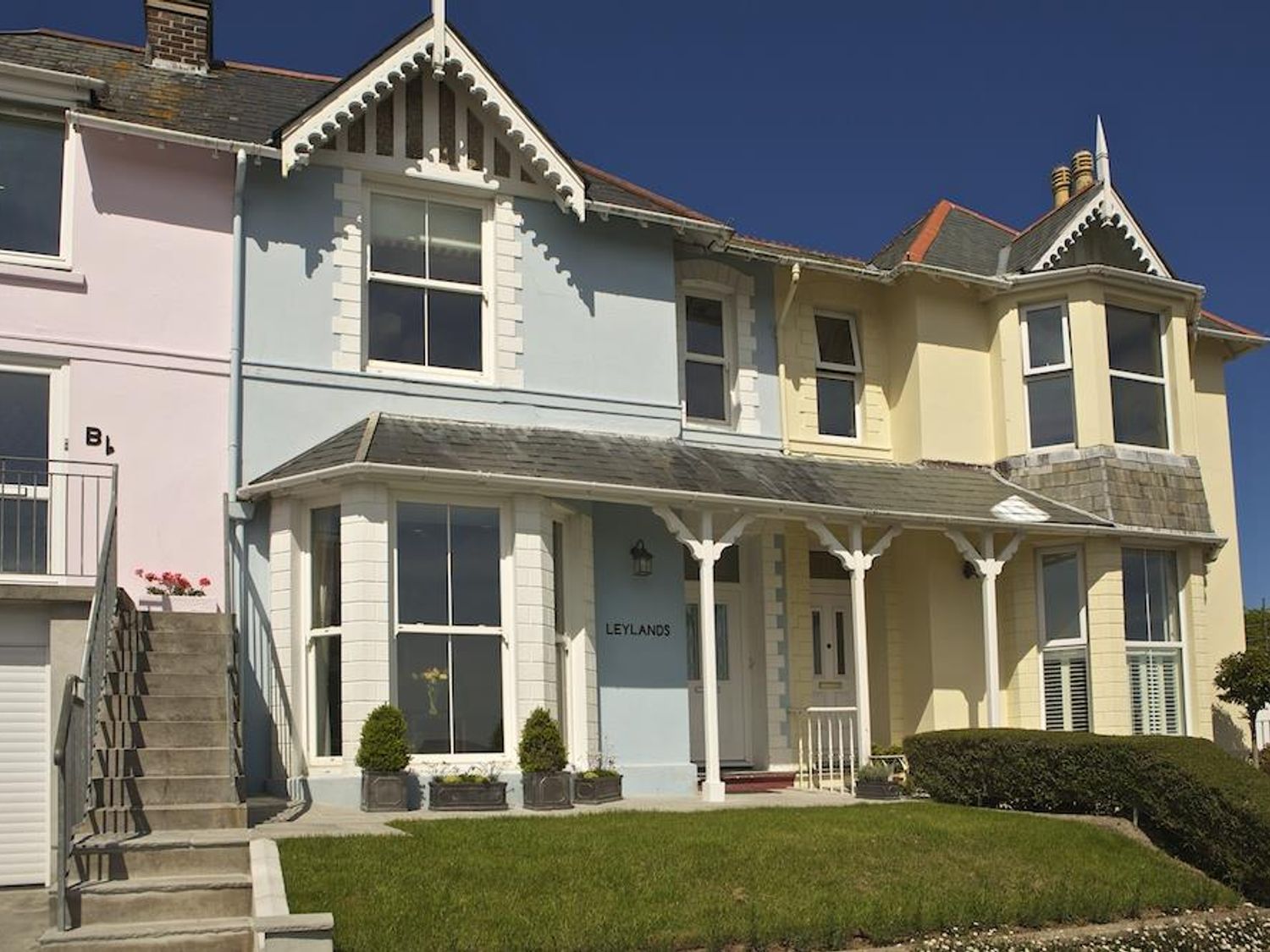 Holiday home Leylands consists of a kitchen/diner with dining seating, an oven, hob, microwave, fridge/freezer, dishwasher, kettle, toaster, Nespresso coffee machine and Delonghi coffee machine, a utility with a washing machine and tumble dryer, a sitting room with a TV with Freeview and DVD, and a snug with a TV. The bedrooms consist of a king-size with an en suite shower, basin and WC, a double, a twin and a bunk. There is a bathroom with bath, shower over, basin and WC and a ground-floor shower room with walk-in shower, basin and WC. Outside, there is an enclosed rear garden with lawn, patio terrace, furniture, sun loungers and barbecue plus permit parking available for one car with additional roadside parking available. Sorry, no pets and no smoking. Guests can find a shop and pub within 0.3 miles. Enjoy a lovely stay at Leylands. Note: Check-in from 4pm, check-out by 10am