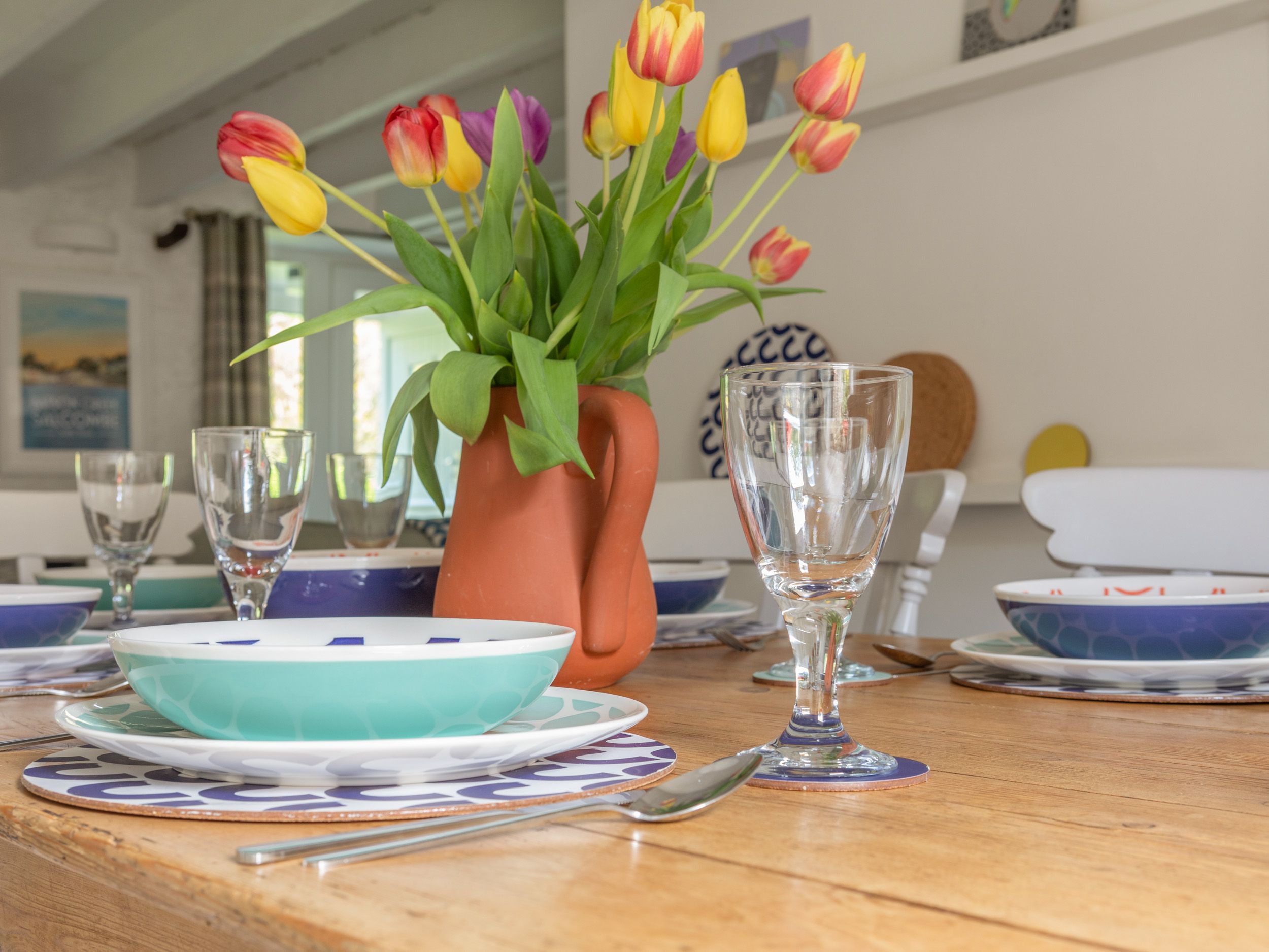 Amenities Central heating with woodburning stove. Electric oven and hob, microwave, fridge/freezer, washing machine, dishwasher, coffee maker. TV, WiFi. Fuel, power and starter pack for woodburning stove inc. in rent. Bed linen and towels inc. in rent. Designated parking for 3 cars. Rear, multi-level, enclosed garden with patio, lawn, barbecue and furniture. One well-behaved pet welcome. Sorry, no smoking. Shop 0.8 miles, pub 1.2 miles, beach a pleasant but hilly walk away. Note: There are steep, stone steps in the garden leading up to the enclosed lawn area, please take care