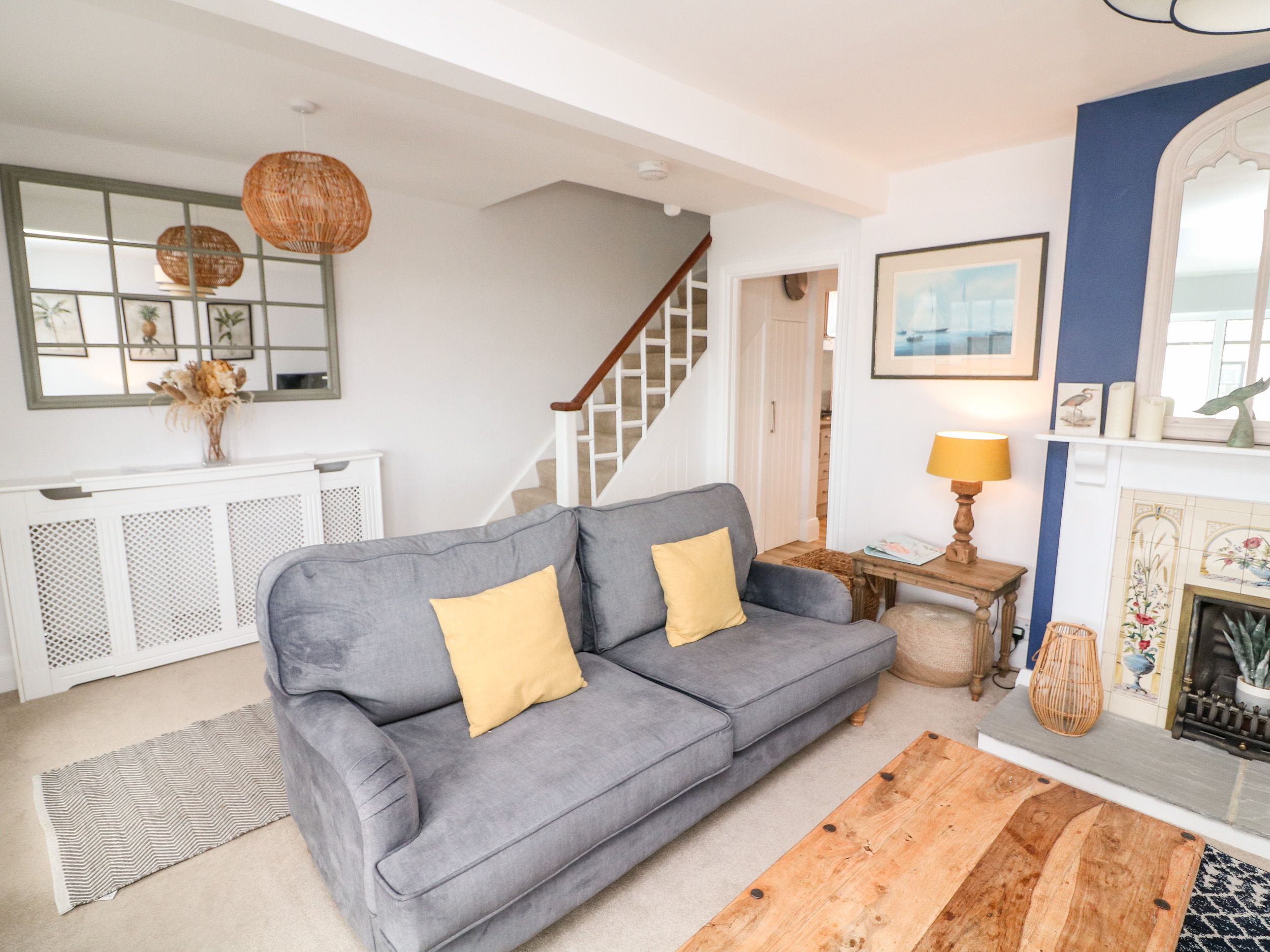 Amenities Gas central heating. Electric oven, gas hob, microwave, fridge/freezer, fridge, washer/dryer, dishwasher, coffee machine. Smart TV, DVD player, WiFi. Fuel and power inc. in rent. Bed linen and towels inc. in rent. 2 x stairgate and highchair available. Off-road parking for 2 cars. EV charging point available at £50 per week. Rear garden with patio, furniture, barbecue and lawn. Sorry, no smoking. Max 2 dogs allowed. Shop 0.1 miles, pub 0.5 miles, beach 1.1 miles. Note: There are steep steps up the home, in the rear garden, and throughout the home; please take care. Note: Sloped ceilings in second-floor bedrooms
