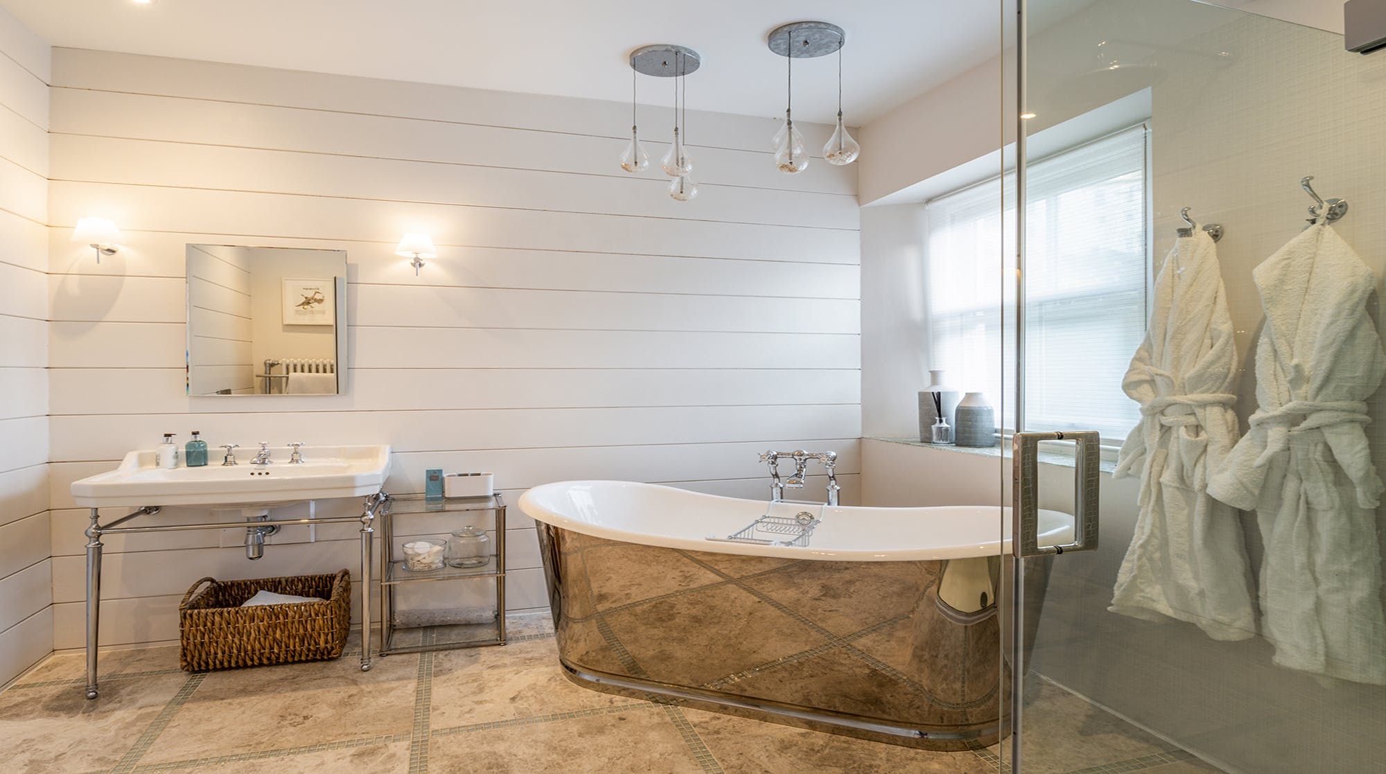 Coastal escapes don’t get much better than this dreamy home in the heart of Salcombe, one of Devon’s most idyllic seaside towns. Step inside and be greeted by a gorgeous living room complete with plush turquoise sofas and a cosy fireplace, perfect for unwinding after an afternoon of sailing or a long walk along Salcombe’s stunning coastline. Upstairs, you've got the choice of three double bedrooms – with an extra room for little ones on the second floor – all of which offer magical vistas to wake up to. Settle into the master bedroom and gaze out at the glistening sea or enjoy peaceful views of the garden from your super-king-size bed next door.