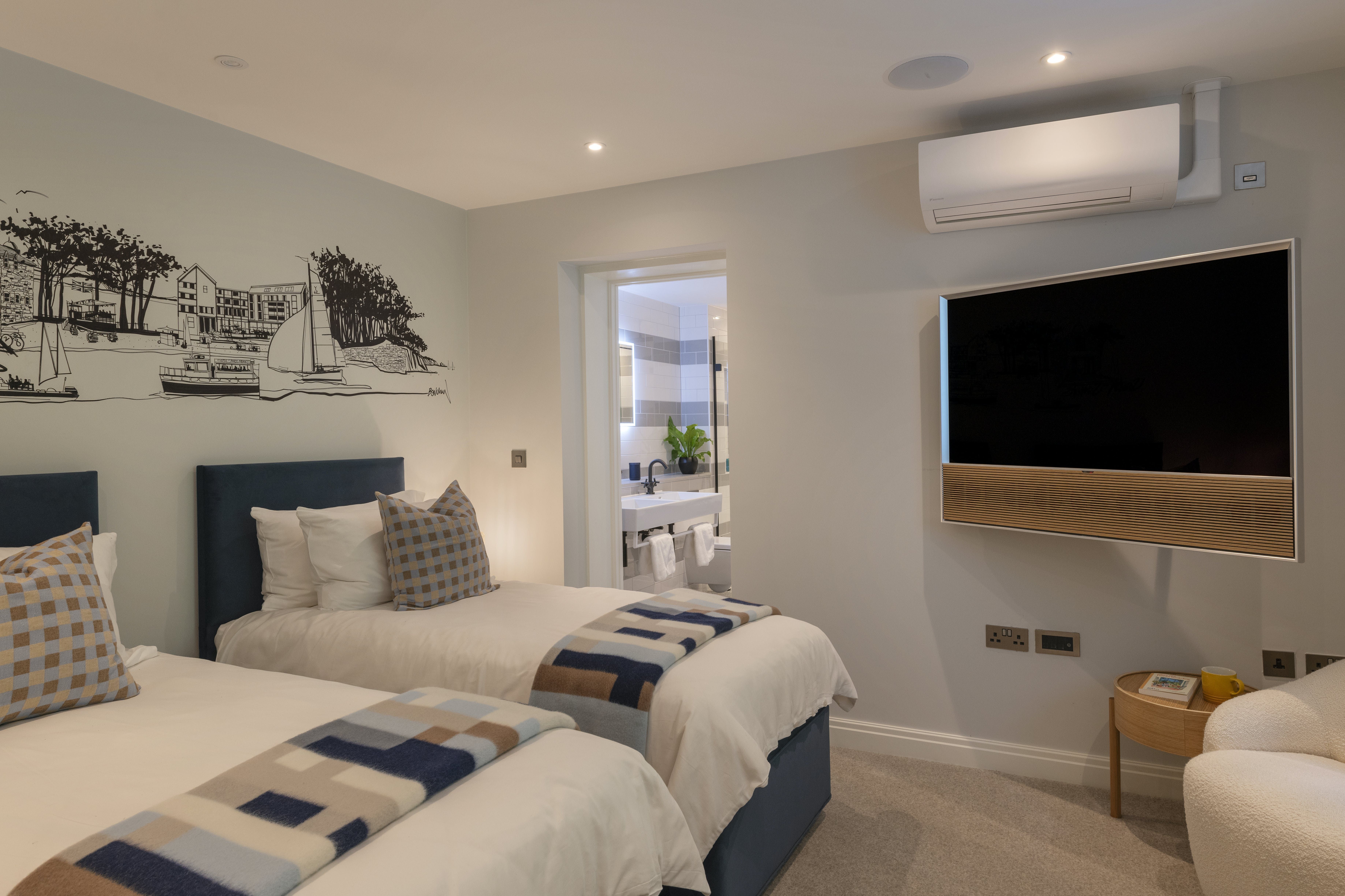 This apartment lies on the shores of Salcombe's South Sands beach, with lovely views from the private balcony. Both bedrooms enjoy their own en-suites and the kitchen is fully equipped for preparing family meals or romantic dinners. Access to the Gym & Spa facilities is included within the price of this booking. The Spa includes a pool, jacuzzi, sauna, gym, and if you're staying in the summer, daily beach yoga classes. To top it all off your host can help arrange a cooked breakfast and concierge services for an additional fee.