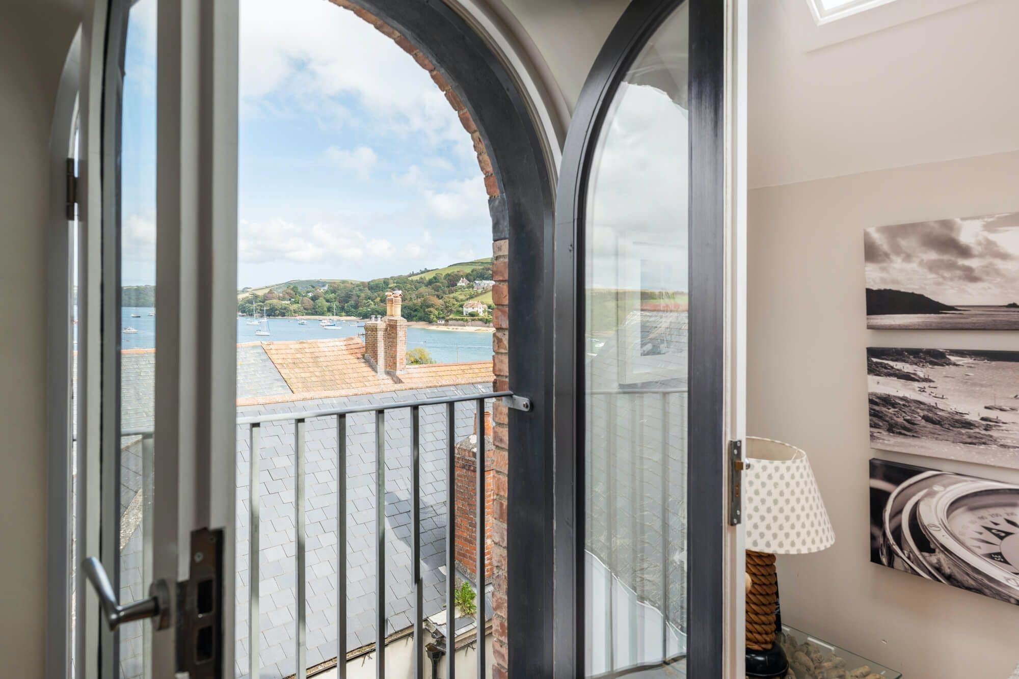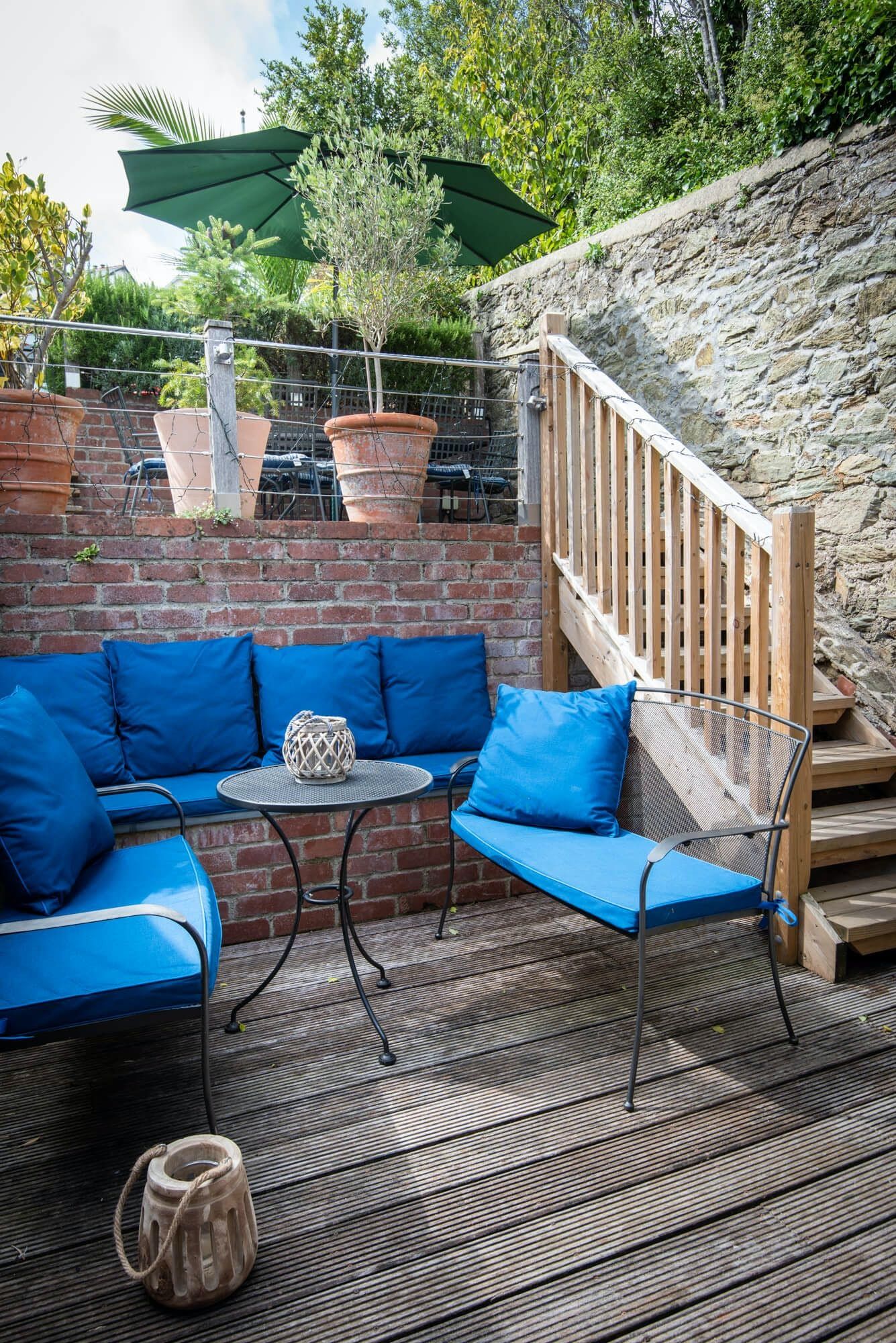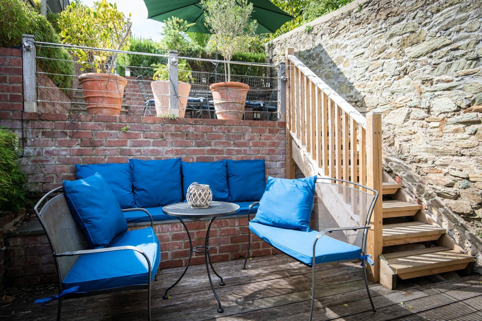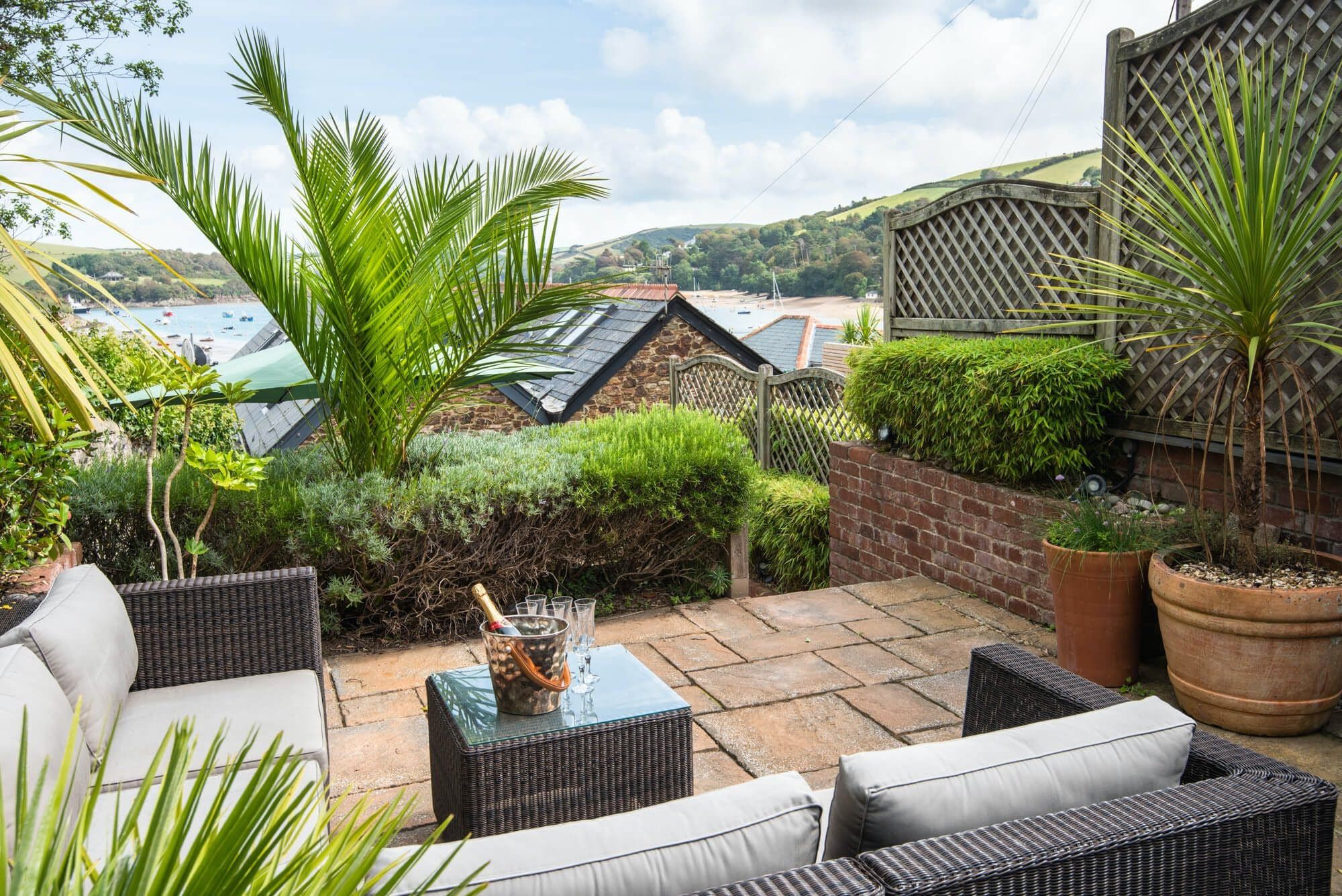 This stylish four-storey home is an old brewery cottage in the centre of Salcombe, a stone's throw away from the waterfront, restaurants and shops. It boasts high vaulted ceilings, an open plan design, and three outdoor terraces with stunning views of the harbour. The top floor leads out onto all three terraces with outdoor furniture including an outdoor shower on the upper terrace. An additional garden studio with a double bed and en-suite shower room is ideal for those that like extra privacy. And the view from up here is simply sublime.