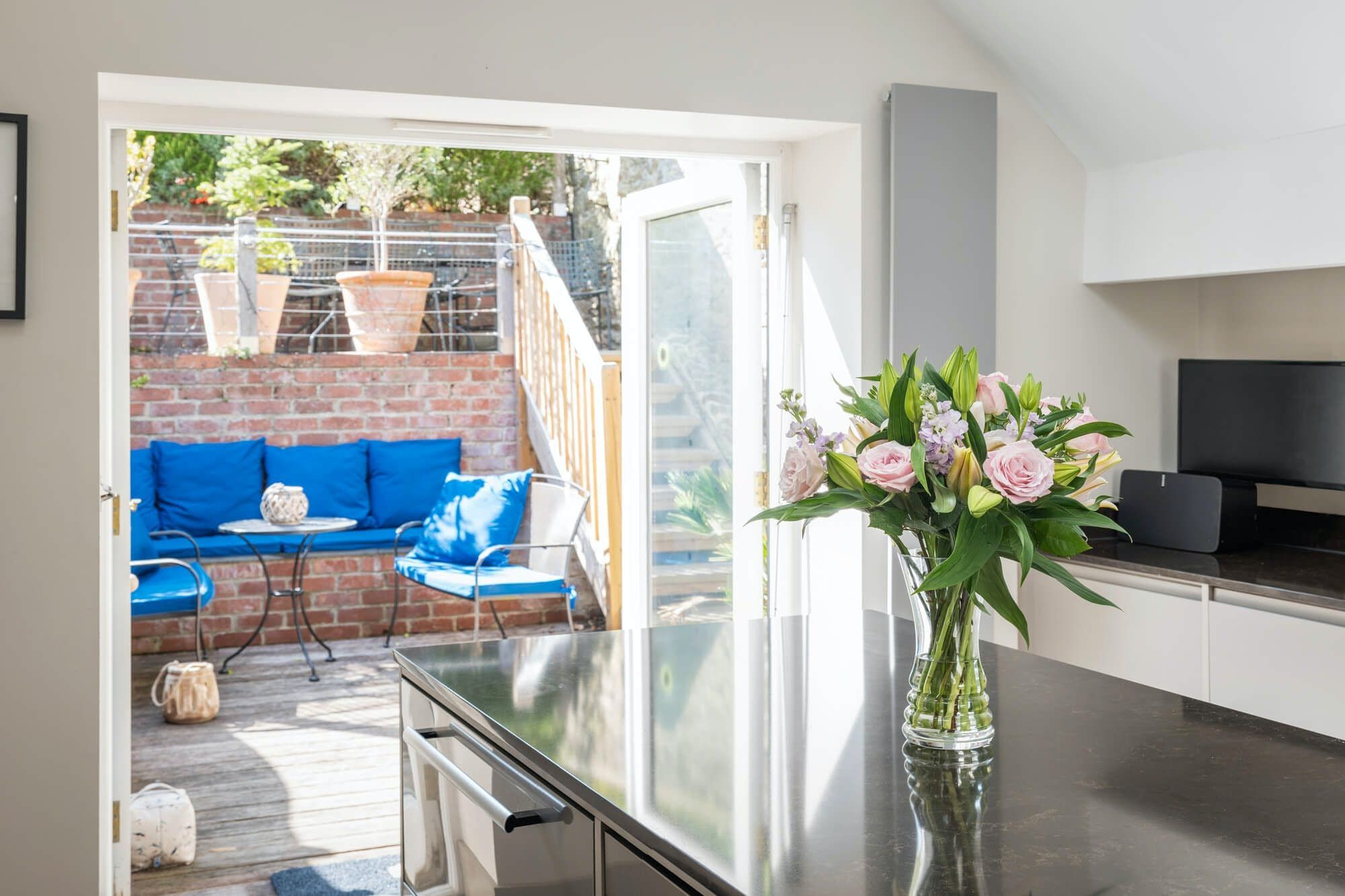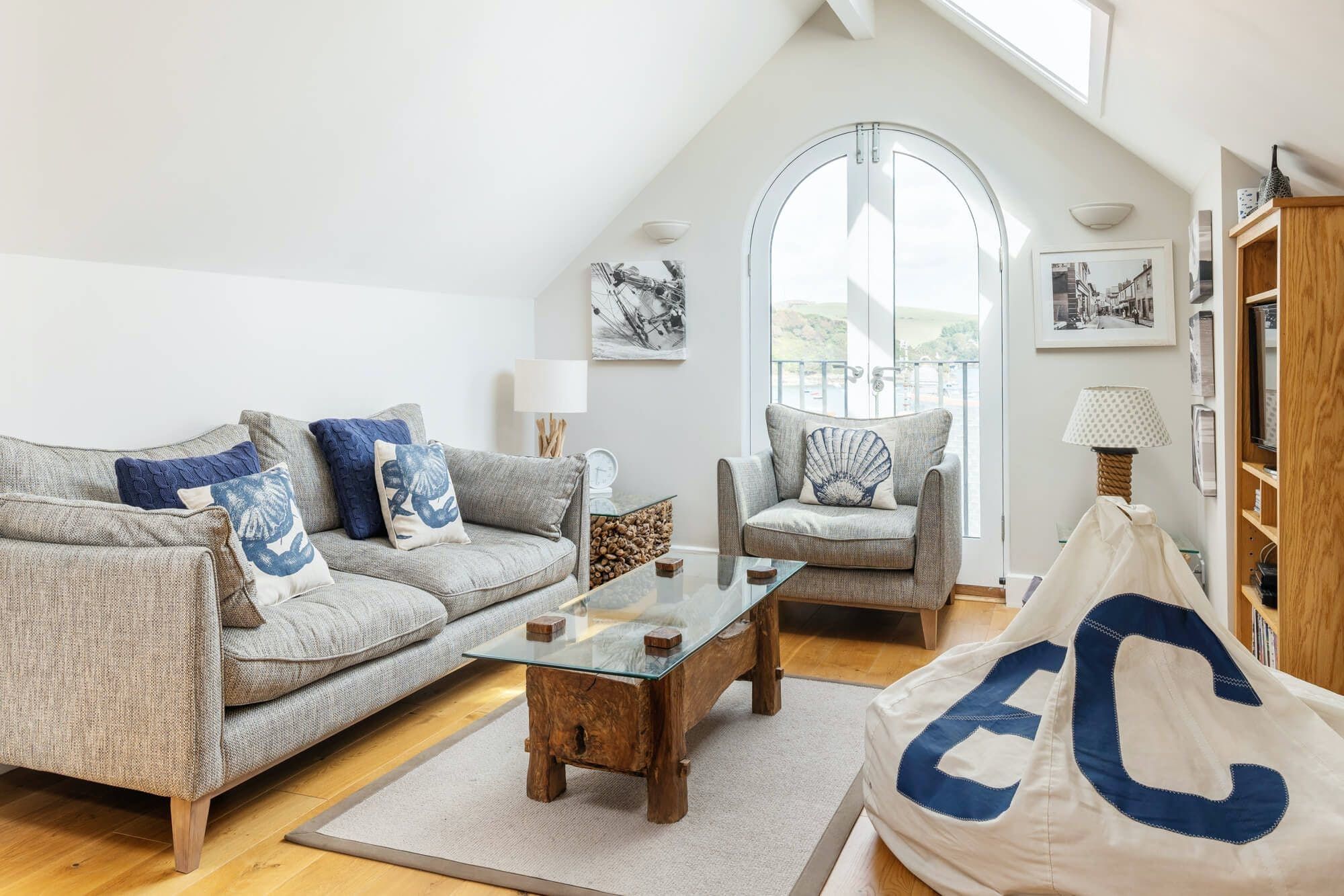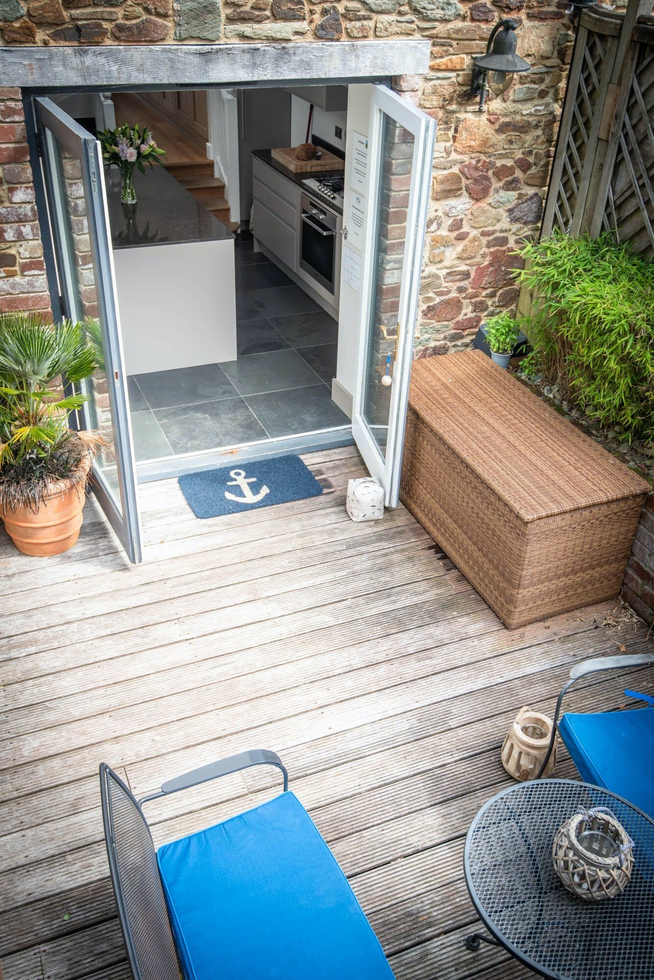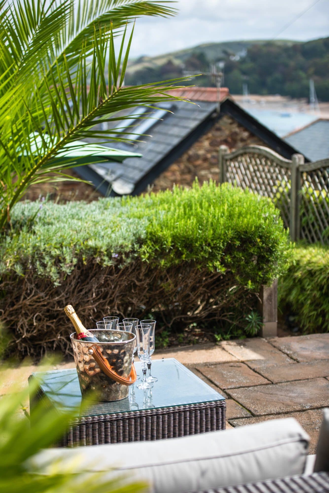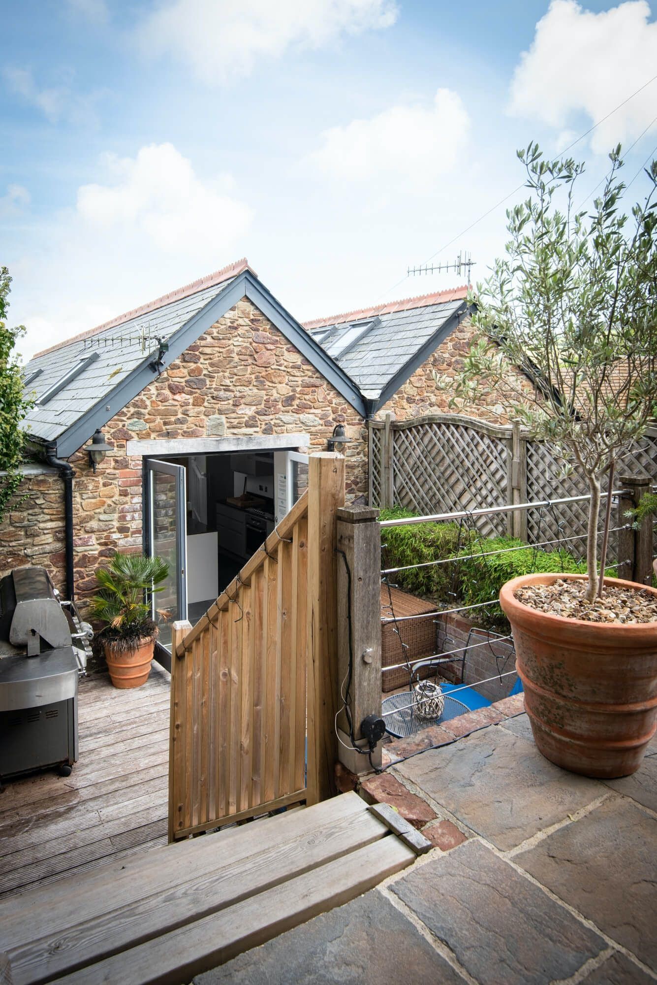 This stylish four-storey home is an old brewery cottage in the centre of Salcombe, a stone's throw away from the waterfront, restaurants and shops. It boasts high vaulted ceilings, an open plan design, and three outdoor terraces with stunning views of the harbour. The top floor leads out onto all three terraces with outdoor furniture including an outdoor shower on the upper terrace. An additional garden studio with a double bed and en-suite shower room is ideal for those that like extra privacy. And the view from up here is simply sublime.