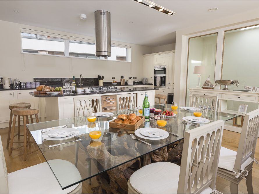 Holiday home Villa 1, Estura is a luxury three-storey town house in one of the region’s most beautiful and exclusive waterside settings, just a five-minute walk from Salcombe’s pretty waterfront and within easy reach of the town’s beaches. The property accommodates up to eight people in four beautifully appointed bedrooms, three of which are en suite – there is also a family bathroom. The property has a hand-crafted kitchen with Miele integrated appliances and a boiling hot water tap, a light and bright living and dining area with fabulous sea views, plus a utility room and parking for one car. Outside, there is a balcony with incredible stunning panoramic views across the estuary. The property also offers use of a private mooring by separate negotiation. With complimentary use of the Salcombe Harbour Spa, and easy access to Salcombe’s beaches, shops and restaurants, this truly is the perfect accommodation for couples, two families holidaying together or for a special celebratory extended family break.