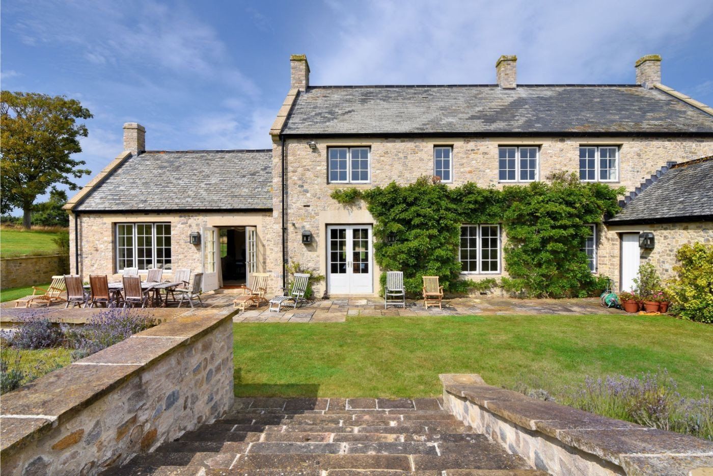 Amenities Central heating with woodburning stove. Two electric ovens, grills and hobs, microwave, fridge, freezer, washing machine, tumble dryer, three dishwashers, wine chiller, hairdryers. Four TVs, Bluetooth stereo, WiFi. Fuel and power inc. in rent. Bed linen and towels inc. in rent. Private parking for 6 cars. Walled gardens, rose garden, meadow, lawns (open metal fencing to adjoining fields), patio area, furniture. One well-behaved dog welcome. Sorry, no smoking. Shop 1.9 miles, pub 0.5 miles. Note: Logs are not included for the fires. Note: Standard stairgates will not fit the wide staircase at this property so please bear this in mind when booking. Note: There are internal steps and bedroom 5 has restricted headroom so please bear this in mind when booking.