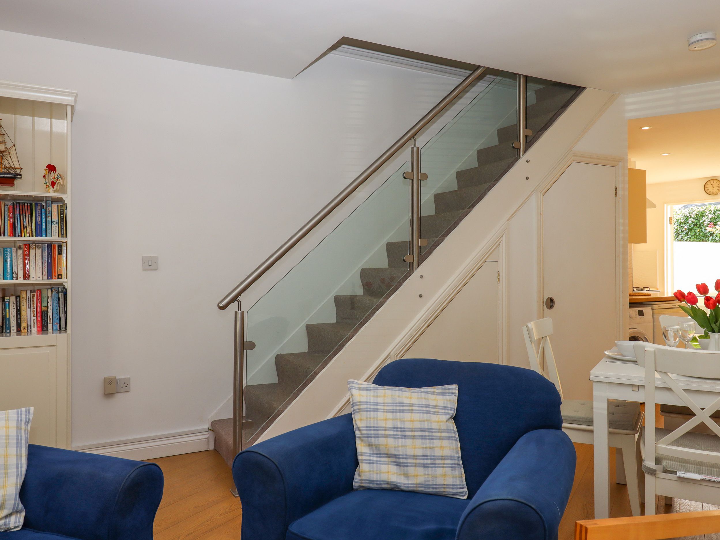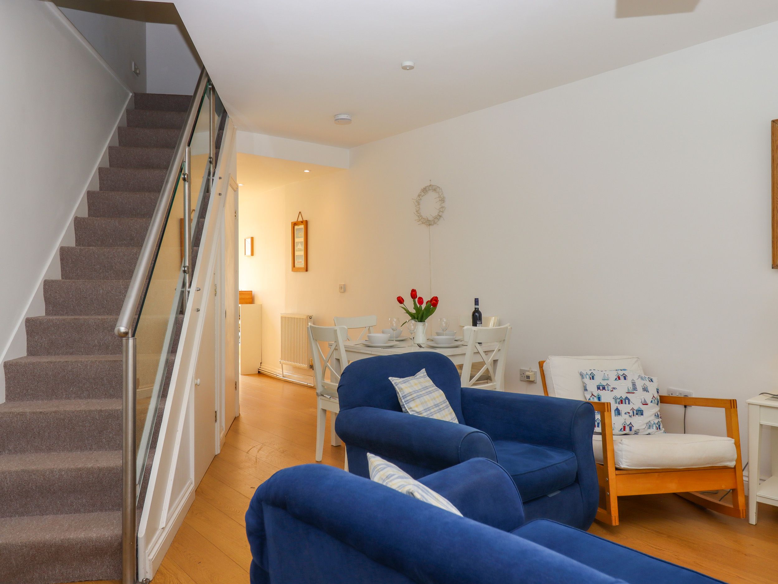Accomodation Details Two bedrooms: 1 x double, 1 x twin. Bathroom with bath, shower over, basin, and WC. Ground floor cloakroom with basin and WC. Open-plan living space with kitchen, dining area and sitting area.