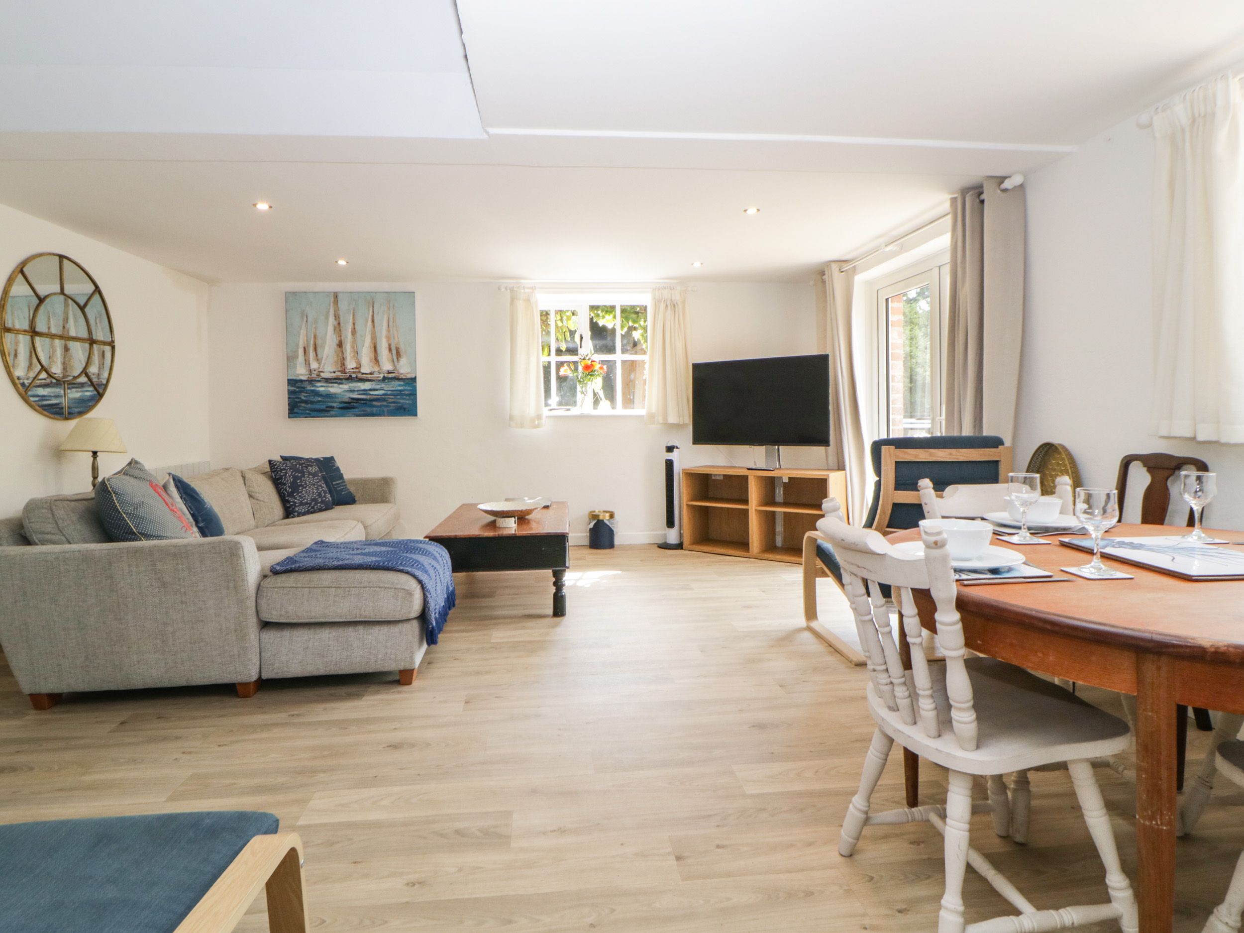 The living areas in the property consist of a kitchen with electric oven and hob, microwave, fridge/freezer, and slimline dishwasher, a living/dining room with dining seating for four and a Smart TV, an external shared utility with a washing machine, and an external shared games room with table tennis. The bedrooms consist of a ground-floor king-size (zip/link, can be twin on request), a king-size and a twin, serviced by two shower rooms, one on the ground-floor. Outside there is an enclosed front garden with patio and furniture, as well as off-road parking with EV charging point. A highchair, stairgate, and travel cot are available upon request. Within 0.8 miles, you will find both a shop and a pub, and please note that two well-behaved dogs are allowed, but sorry, no smoking. WiFi, fuel, power, bed linen, towels, and access to on-site facilities are all included in the price. Note: The owners live on site. Note: Guests will need to enquire if they wish to bring more than two pets