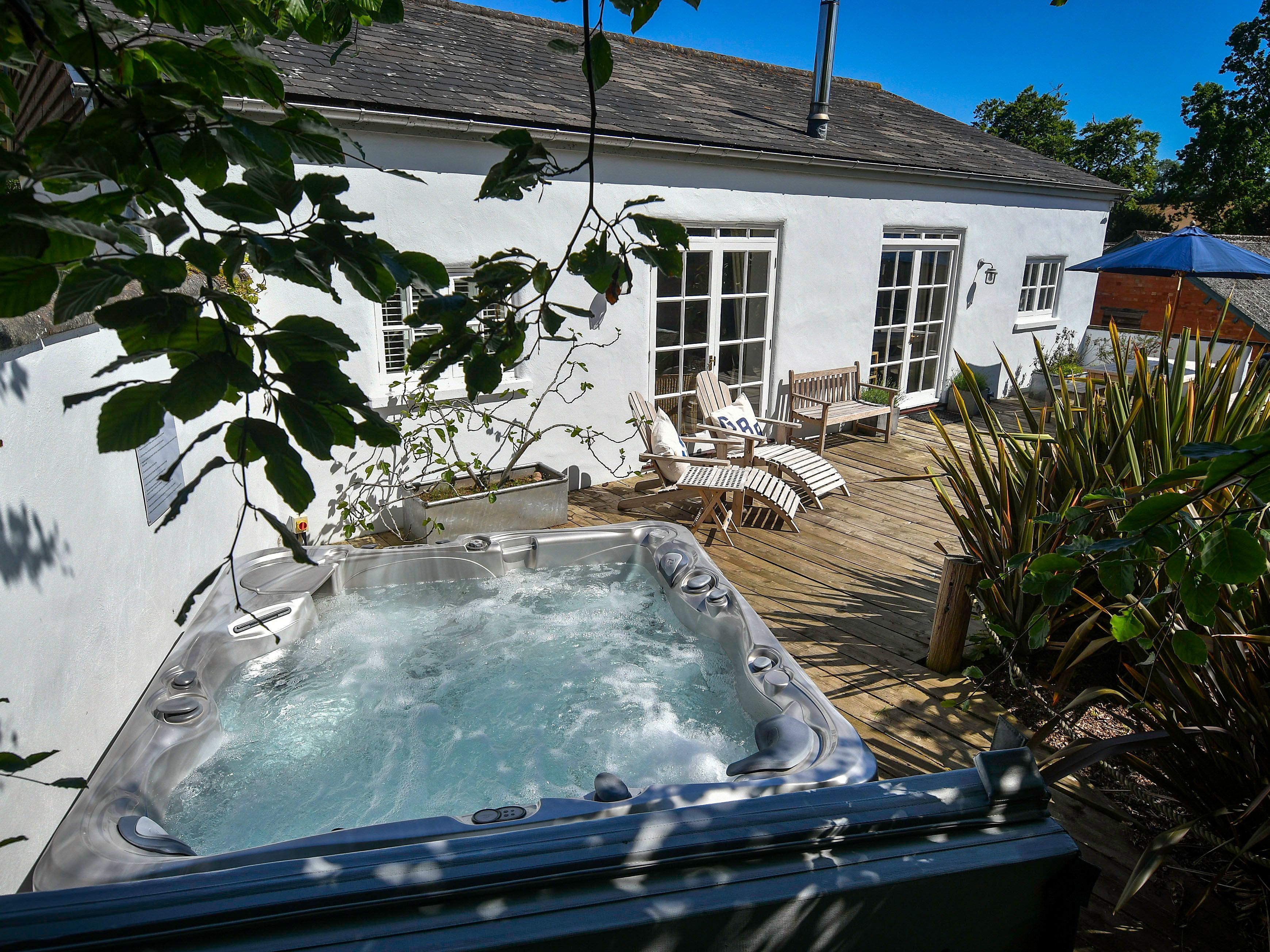 Holiday home Burrows has three bedrooms including a king-size with en-suite freestanding bath, walk-in shower, basin, and WC, a king-size with en-suite shower room and a twin with en-suite shower room, along with an open-plan kitchen, dining area and sitting area with vaulted ceilings and woodburning stove. Appliances include a Range cooker with gas hob and electric oven, microwave, fridge/freezer, washing machine, dishwasher, Nespresso coffee machine. For entertainment, there is a Smart TV and WiFi. Outside, there is off-road parking for three cars, an EV charging point (charges payable), and a garden with a hot tub, lawns, patio and furniture. Fuel, power, a starter pack for woodburning stove, bed linen and towels are all included in the rent, and a cot and highchair are available on request (please request upon booking). One well-behaved dog is welcome. Sorry, this is a smoke-free home. You can find a shop and pub within 1 mile. Choose Burrows for a luxury stay in Devon.