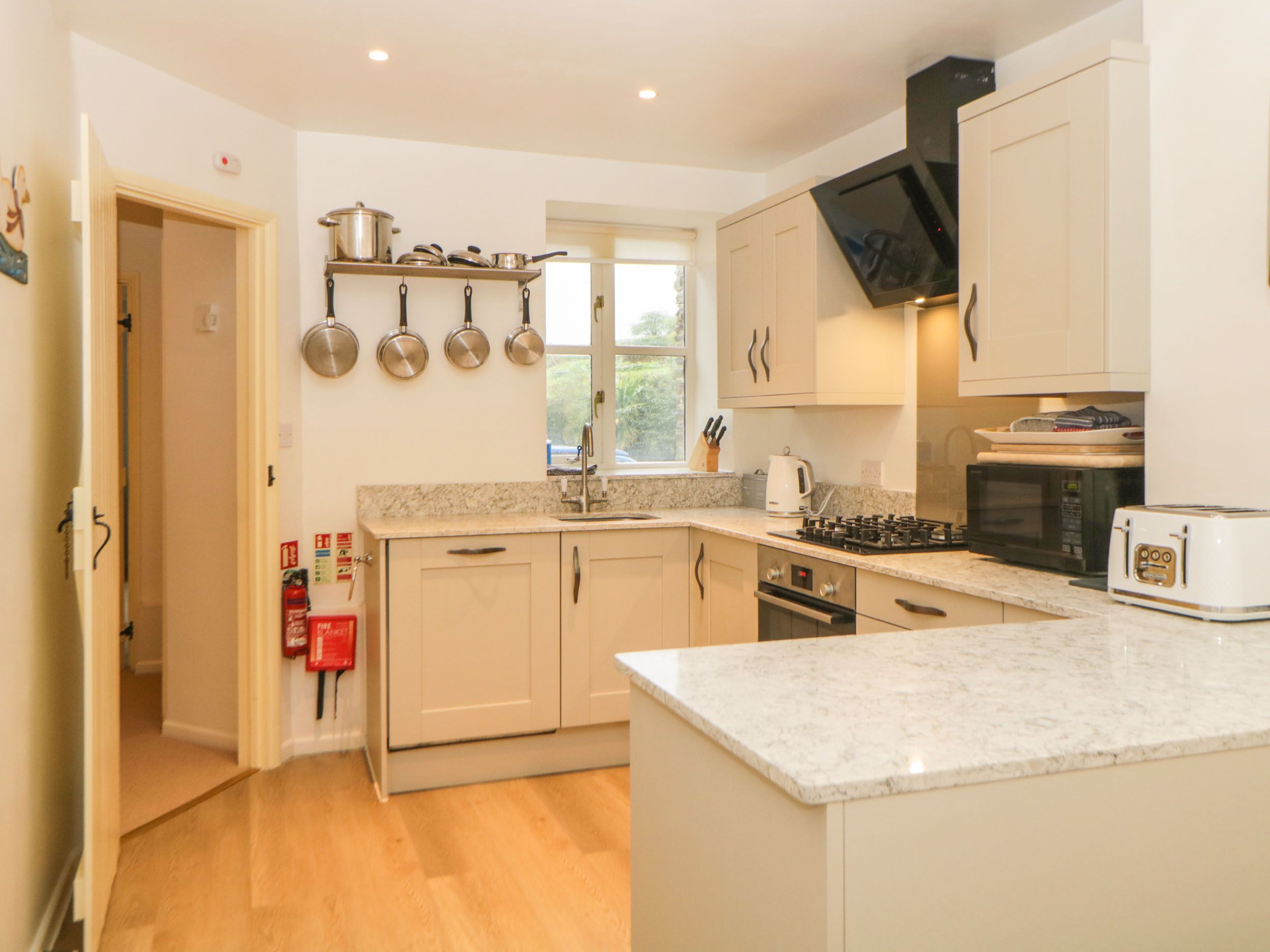 Holiday home The living areas in this reverse-level holiday home consist of a first-floor kitchen/diner equipped with oven, hob, microwave, fridge with ice-box and dining table four six with TV, there is also a first-floor sitting room with TV and fire. The bedrooms consist of a king-size, a ground-floor twin and a bunk room serviced by a ground-floor bathroom and shower room. Outside there is off-road allocated parking and access to communal grounds with seating areas, barbecue area and ponds. Dog-friendly, but sorry, no smoking. Highchair available on prior arrangement. WiFi, fuel, power, bed linen and towels are included. Explore Devon at Blackberry Cottage. Note: There is a communal laundry/games room with washing machine at a charge, a tumble dryer, a pool table and a communal freezer. Note: There are unfenced ponds on the grounds, children and pets must be supervised at all times. Note: Dogs are welcome for a charge. Note: There is a lockable door between the king-size and bunk room. Note: Dogs must be kept on a lead on grounds.