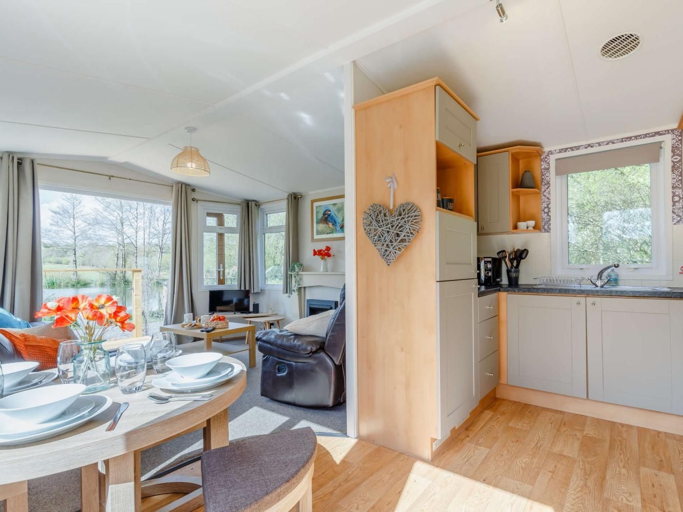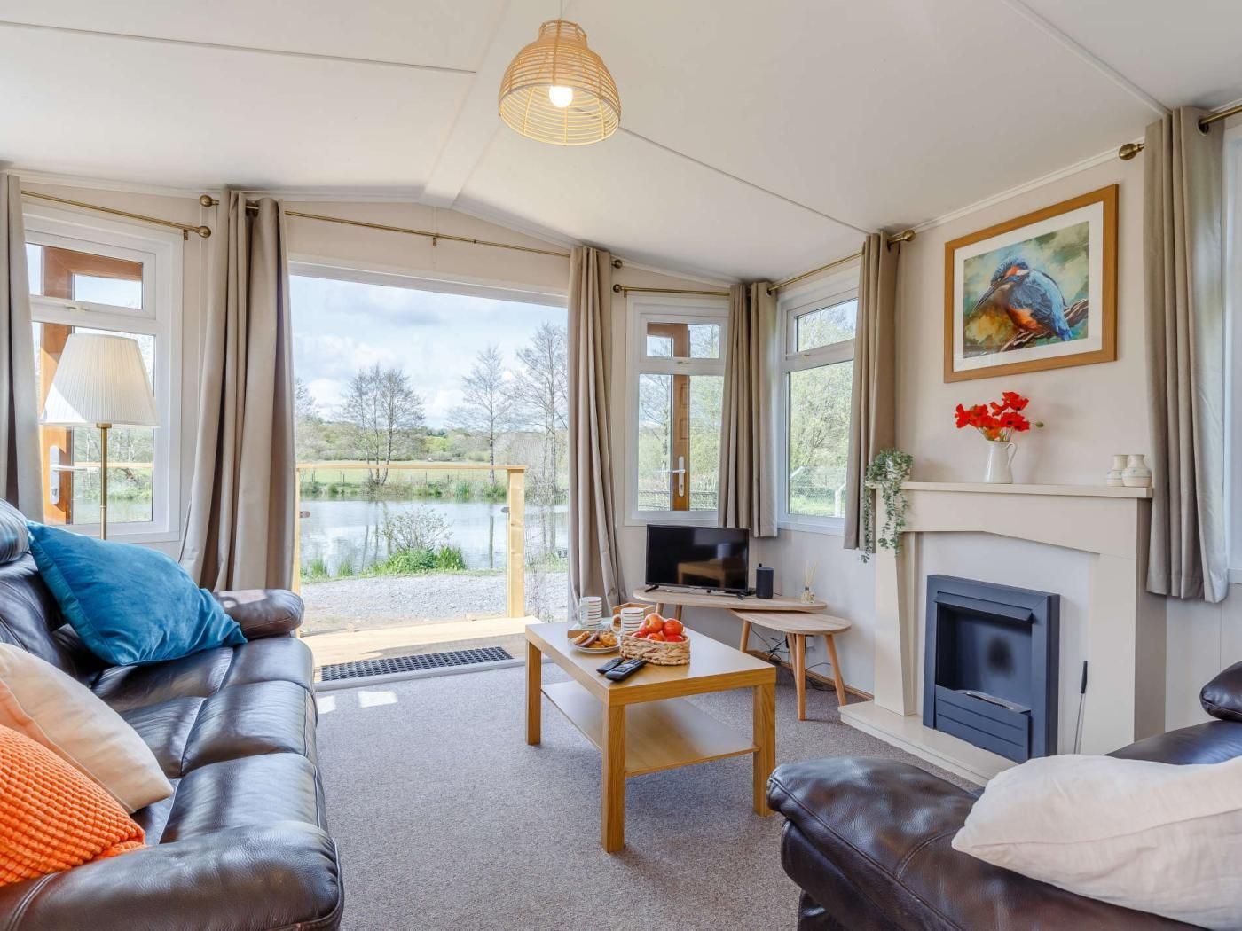 A Peaceful retreat with eco-credentials including solar power and a private water supply. Alternatively, you can enjoy some peace and quiet right on your doorstep with the stunning and serene lake in front of you, which offers exclusive coarse fishing.