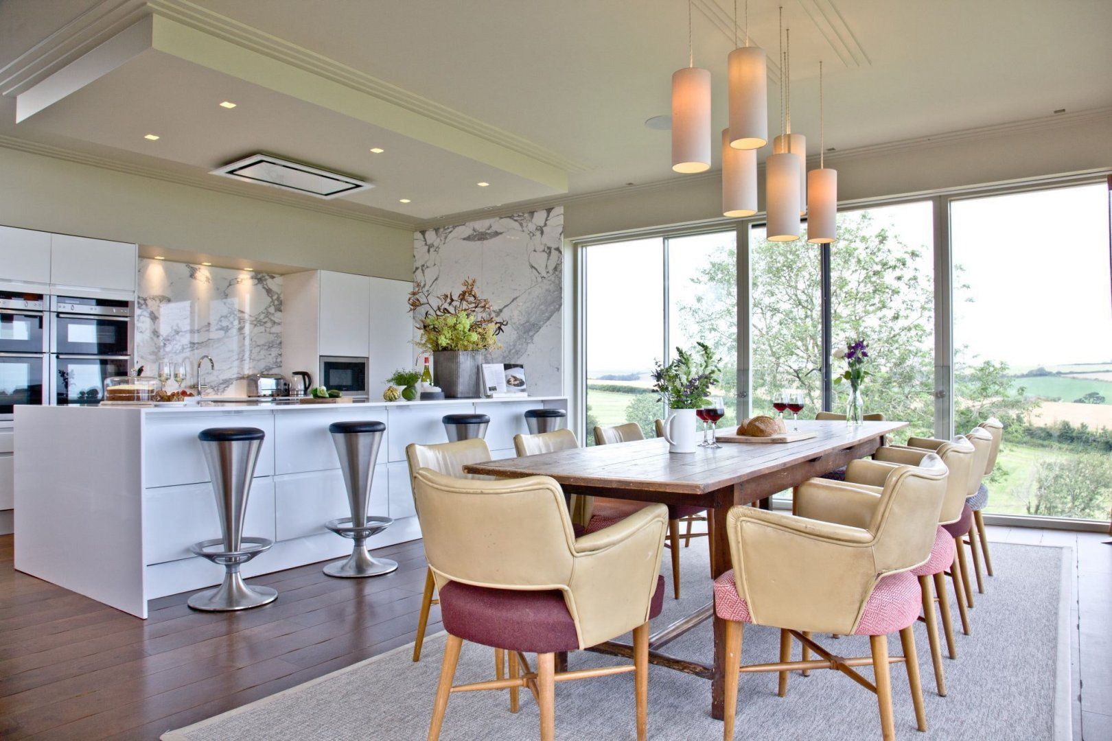 Positioned overlooking Start Bay on the south coast of Devon, this home has been thoughtfully put together, making the most of its incredible views. Architect designed using a combination of steel, glass and stone, there's more than a hint of a Mediterranean feel to the place. The interiors are elegant and luxurious, with rooms spread across four floors and encompassing a self-contained studio apartment. With all eyes on the rolling hills and the seascape to the rear, the design features several balconies and terraces – all offering places to sit and take it all in. There's so much to love about this home, but some of our favourite features are the cinema room, the floor-to-ceiling views from the dining table and the choice of terraces outside where you can eat your meals together. By day you can explore the coastal paths and villages, or drive to Salcombe or Dartmouth in less than half an hour. If you're bringing your bucket and spade, you'll be pleased to know the beach at Slapton Sands is just a five-minute drive away.
