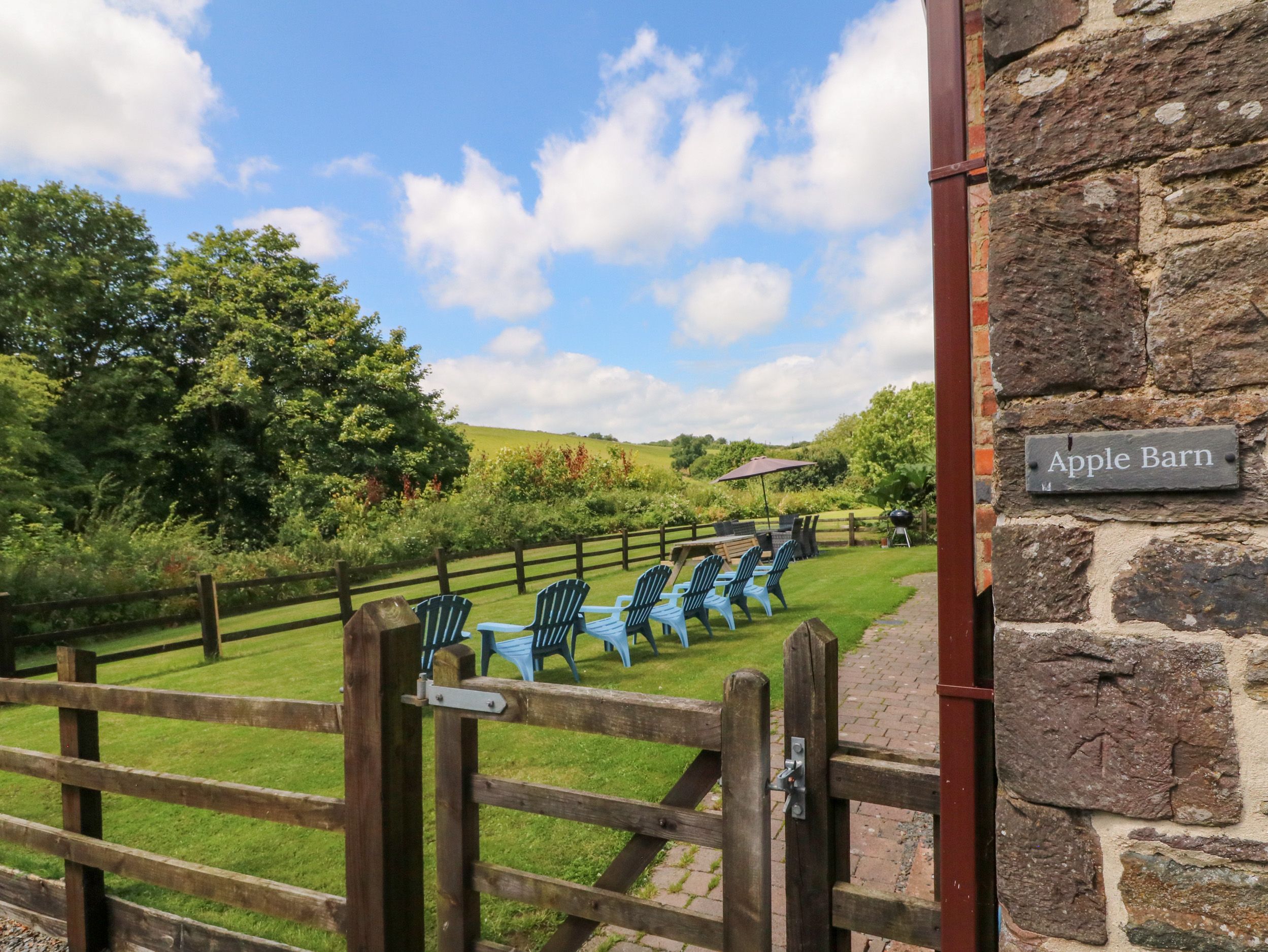 Amenities Oil central heating with woodburning stove. Electric double oven and hob, microwave, 2 x fridge, freezer, washing machine, dishwasher. TV with Freeview, DVD, CD/radio, iPod dock, WiFi, selection of books, games and DVDs. Fuel and power inc. in rent. Starter pack for woodburning stove inc. in rent Oct-March; at other times of year fuel for stove can be purchased locally. Bed linen and towels inc. in rent; hot tub towels are not provided. Travel cot, highchair and stairgate available on request. Ample off-road parking. Private 6-person hot tub overlooking the valley. Enclosed lawned garden with furniture and barbecue. Shared use of 6-acre site. Shared external games room with table tennis, pool table, table football and TV with PS2 and games. Sorry, no smoking. Shop and pub 2.1 miles. Note: From 1 April 2026, Apple Barn will accept two well-behaved dogs. Note: One of the double bedrooms and both twins have sloping ceilings. Note: The property is over three floors, with 8 steps from ground floor to first floor level and then a further 8 steps to second floor level. Note: This property is in a rural location, accessed by country lanes that are single track in some places. Note: Please be advised the charging of electric vehicles is prohibited at this property.
