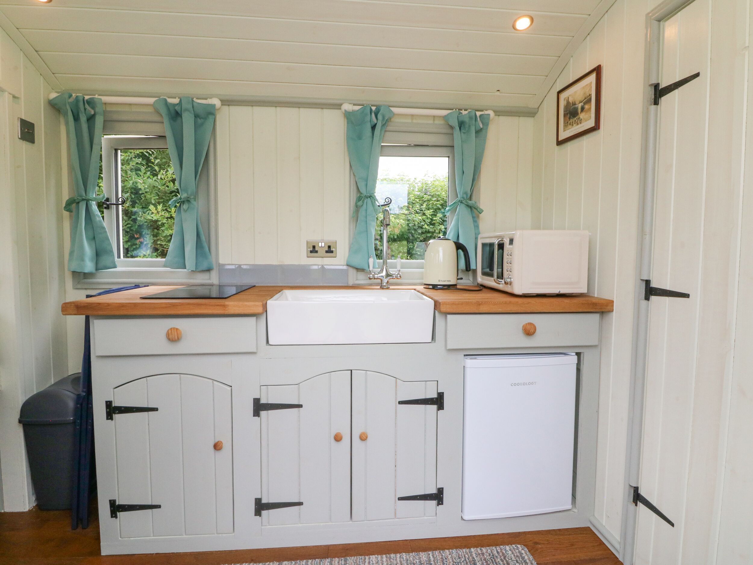 Holiday home Cuckoo's Nest has a studio-style layout with double bed, a kitchen equipped with an electric 2-ring hob, microwave, fridge with ice box, kettle and toaster and a dining area with electric fire. There’s a shower room with walk-in shower, basin and WC. Electric fire, WiFi, fuel and power, bed linen and towels are included in the rent. Outside there’s off-road parking for one car and a non-enclosed patio with furniture and barbecue. Sorry, no pets and no smoking. Shop 5 miles and pub 3.9 miles. A romantic retreat awaits you at Cuckoo’s Nest. Note: This property has a Good Housekeeping bond of 50GBP.