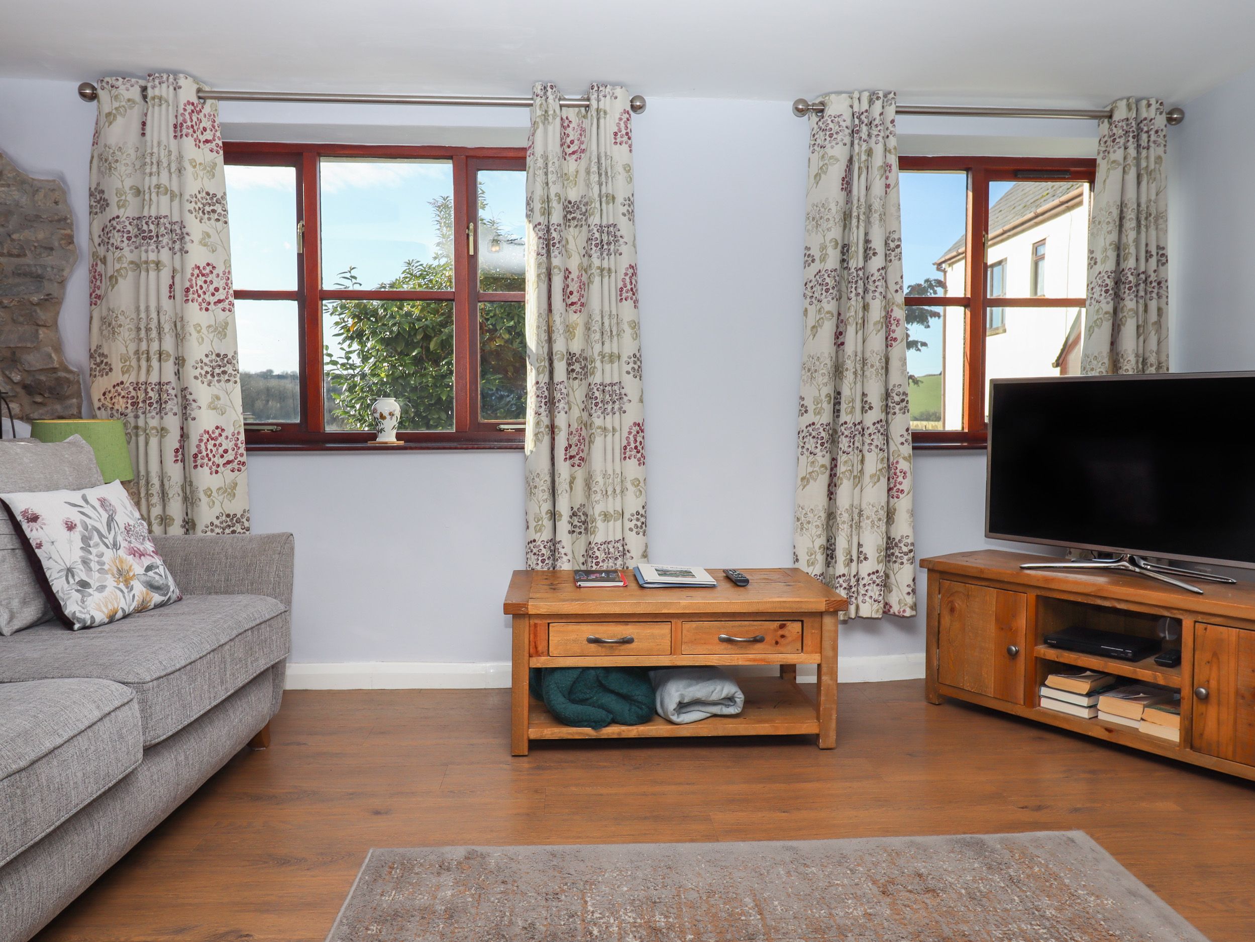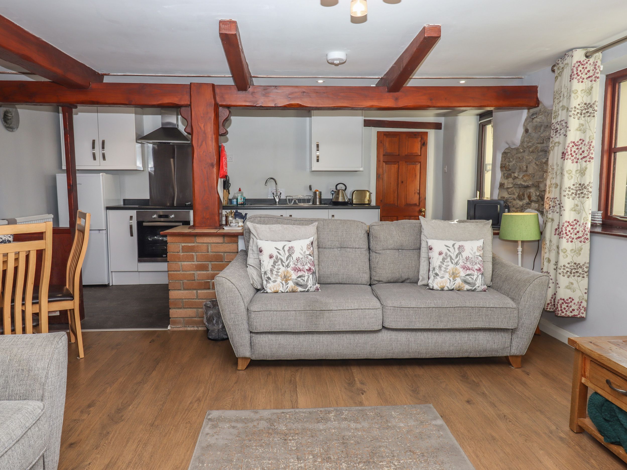 Amenities Oil central heating. Electric oven, ceramic hob, microwave, fridge/freezer, kettle, toaster. TV, DVD player, WiFi. Fuel and power inc. in rent. Bed linen and towels inc. in rent. Travel cot, highchair, and stairgate available. Communal lawned picnic area by the lake with furniture and barbecue area, plus patio with furniture. Two well-behaved pets welcome £25 charge per pet . Sorry, no smoking. Shop 4.8 miles, pub 2.3 miles. Note: Communal laundry available. Note: Garden not enclosed, pets can be exercised on communal land. Note: Lakes within wider ground please take care.