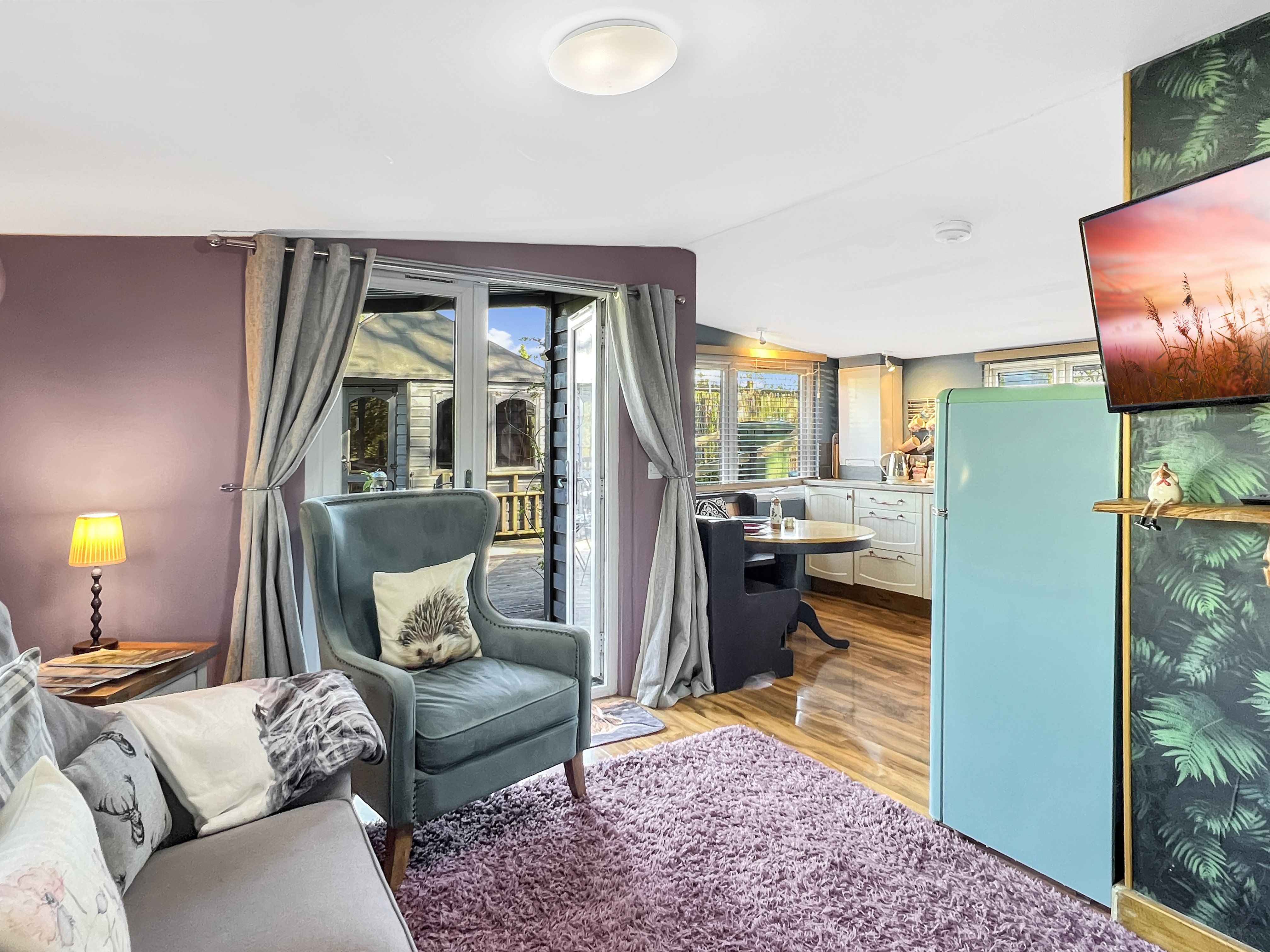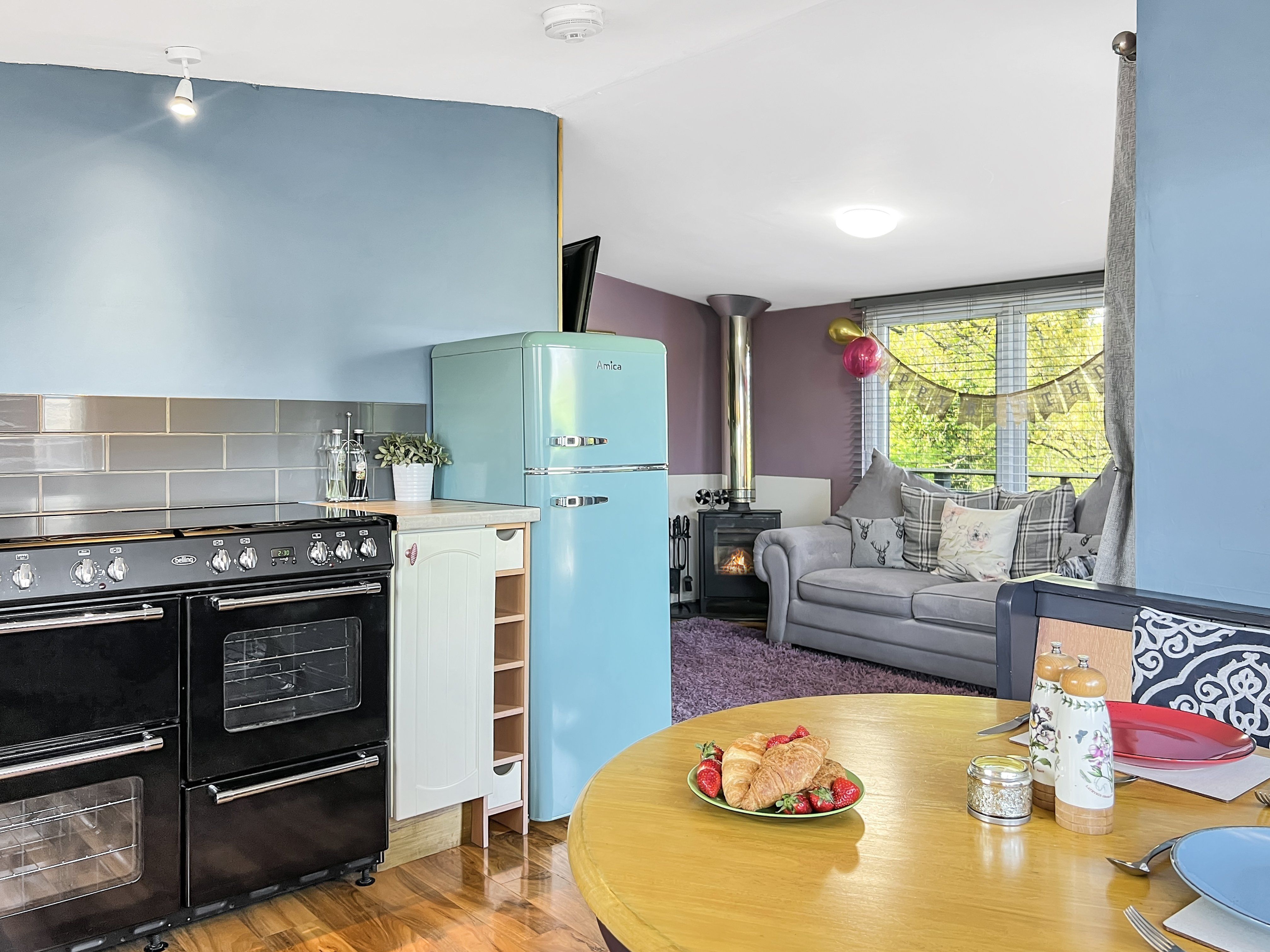 Facilities The front door opens into a light and airy open-plan living space, combining the kitchen, dining and sitting areas into one sociable layout. The kitchen is well-equipped with an oven, hob, fridge-freezer, microwave, toaster and kettle, with everything you need for a comfortable self-catering stay.