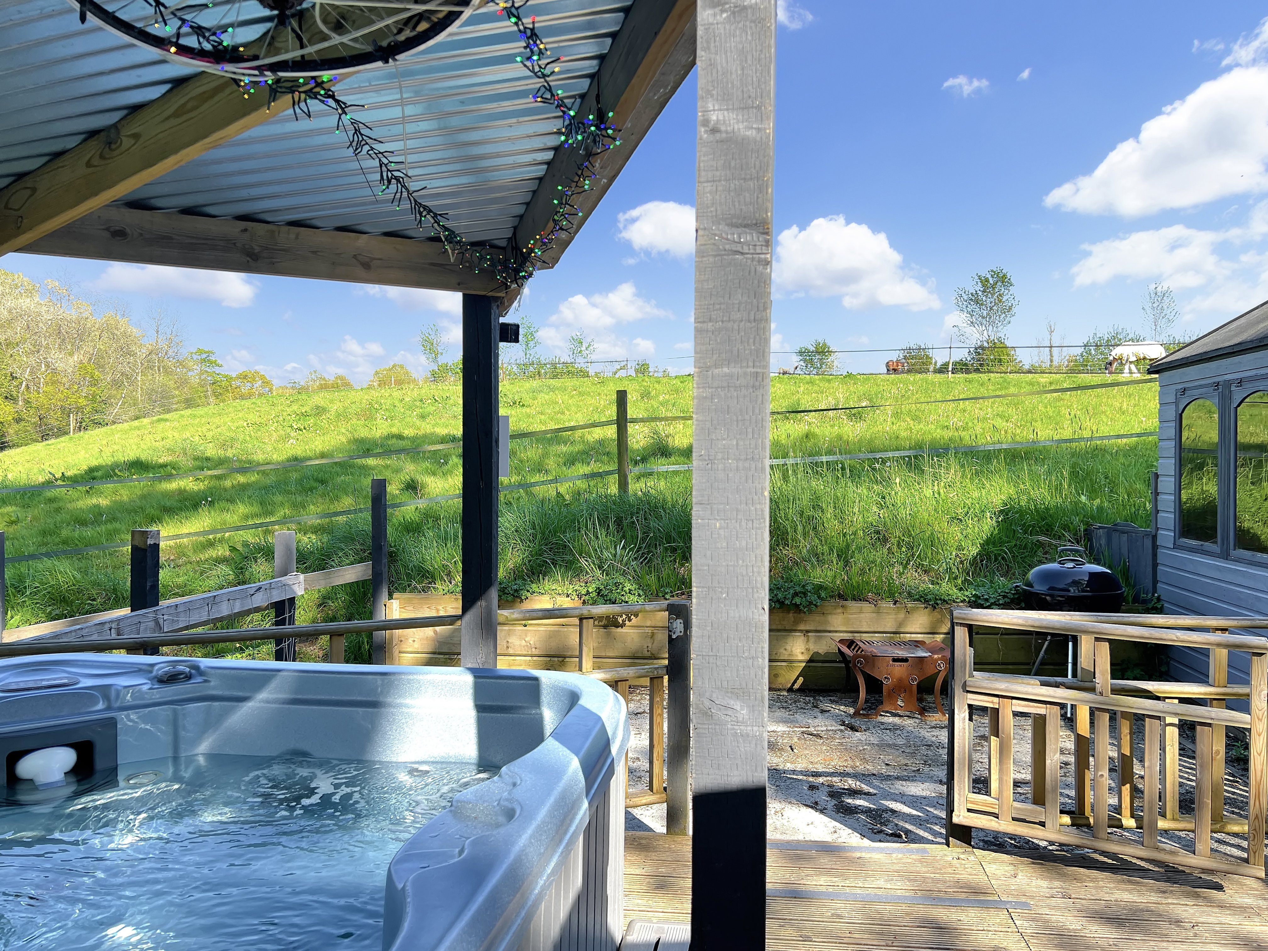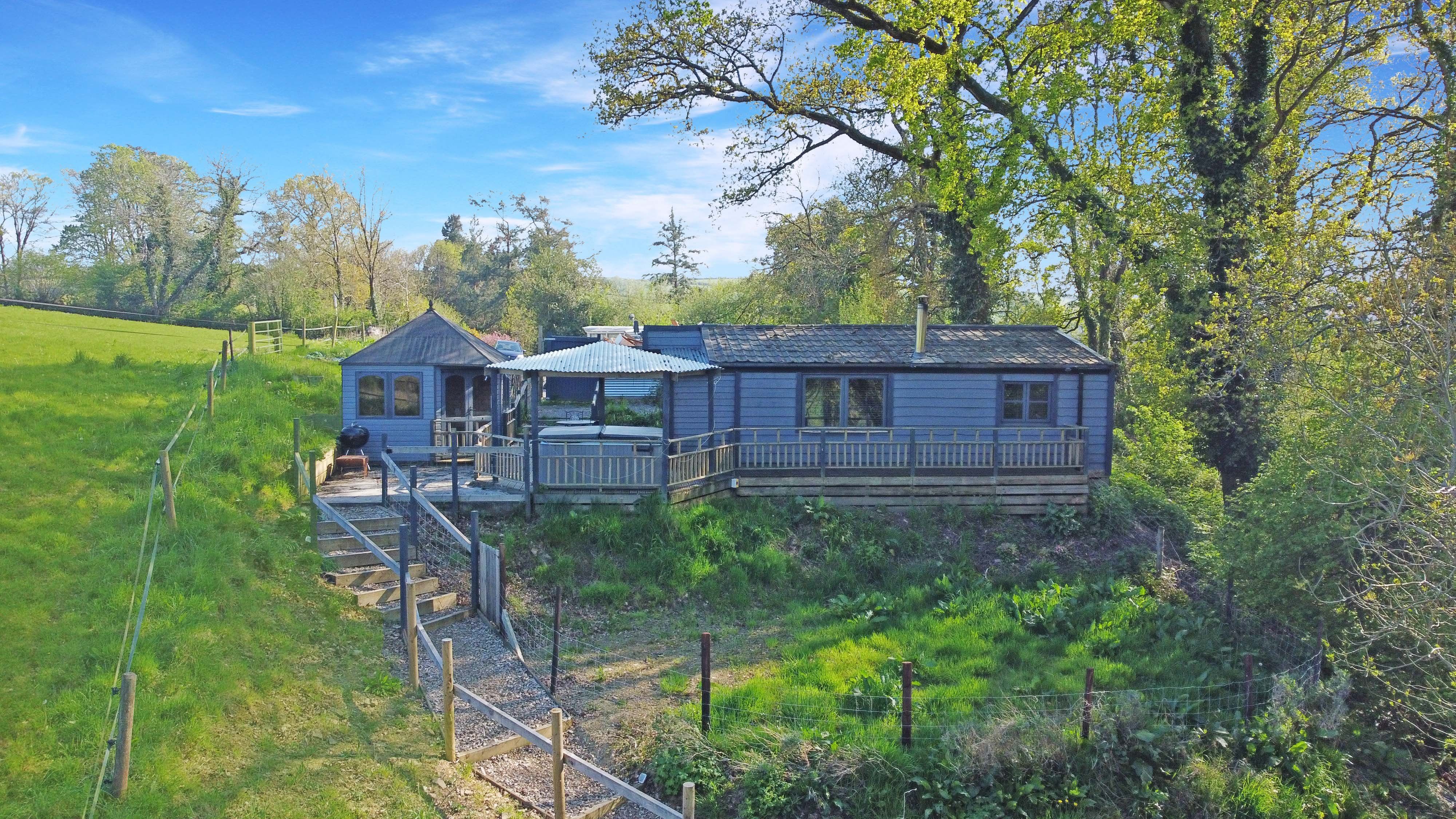 The lodge sleeps up to four guests, with one double bedroom and a sofa bed in the main living area. The bathroom includes a bath, separate walk-in shower, toilet and wash basin.