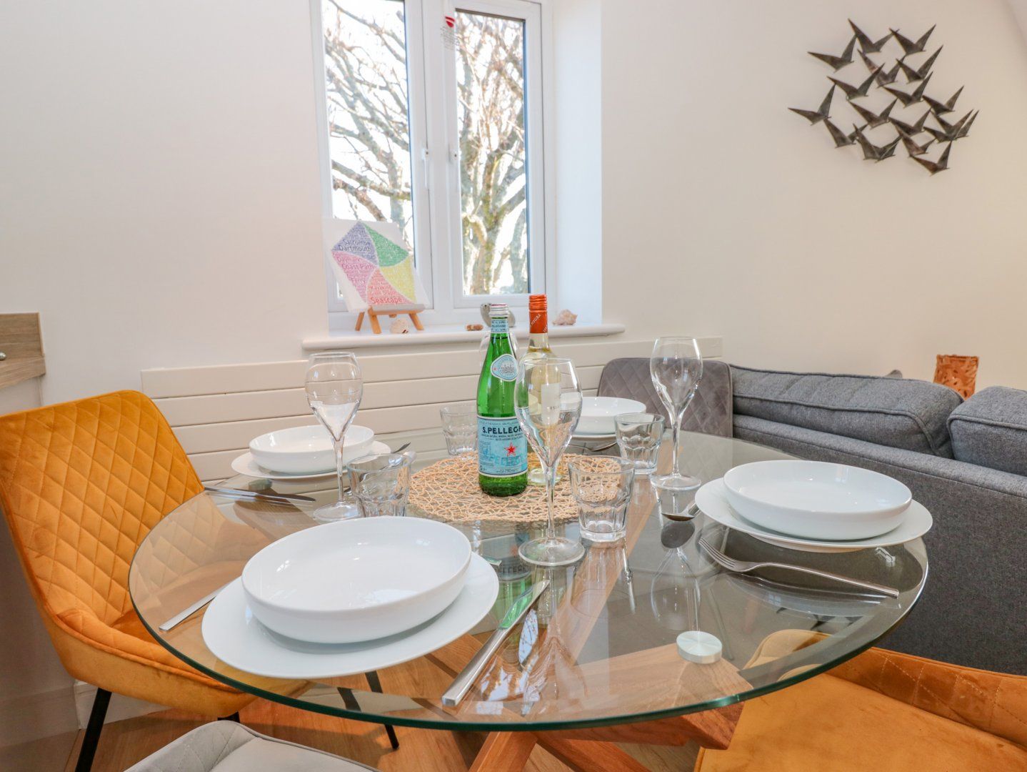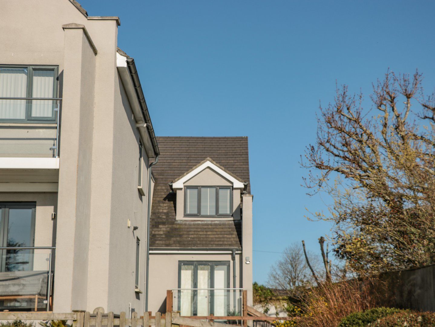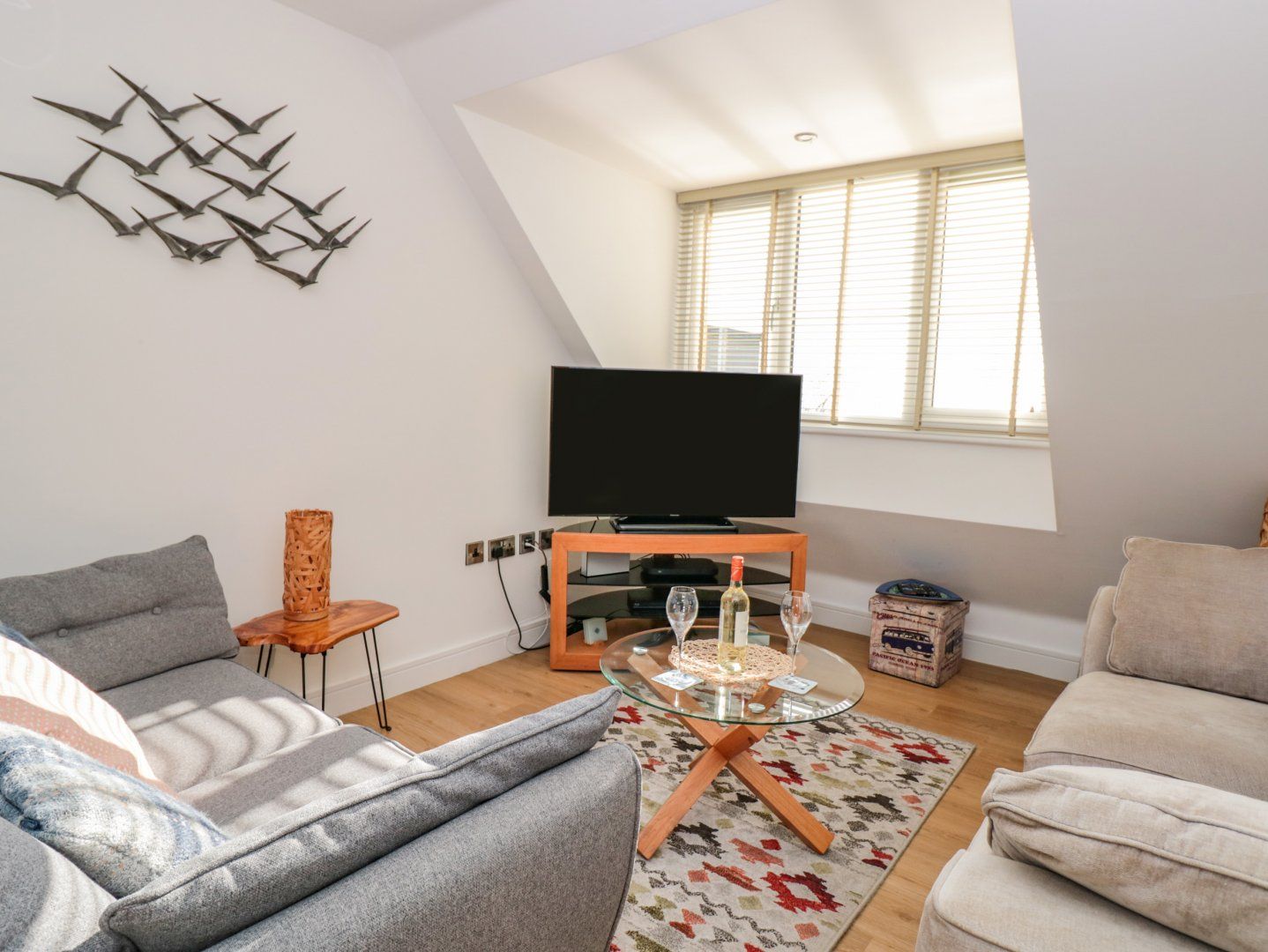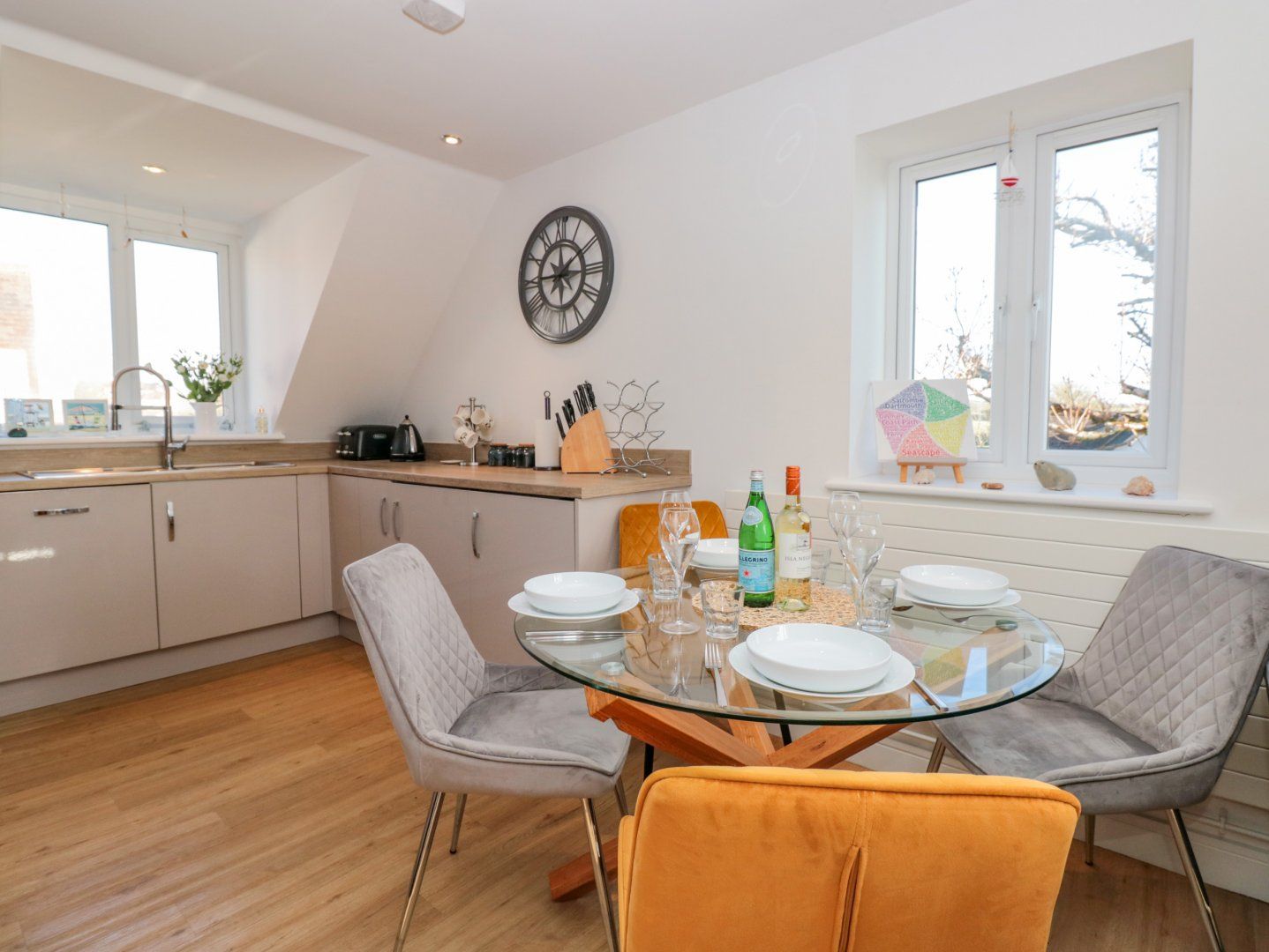 Accomodation Details First-floor apartment. Two bedrooms: 1 x king-size with en-suite walk-in shower, basin and WC, 1 x single with trundle and with Smart TV. Bathroom with bath, shower over, basin, heated towel rail and WC. Open-plan living space with kitchen, dining area and sitting area