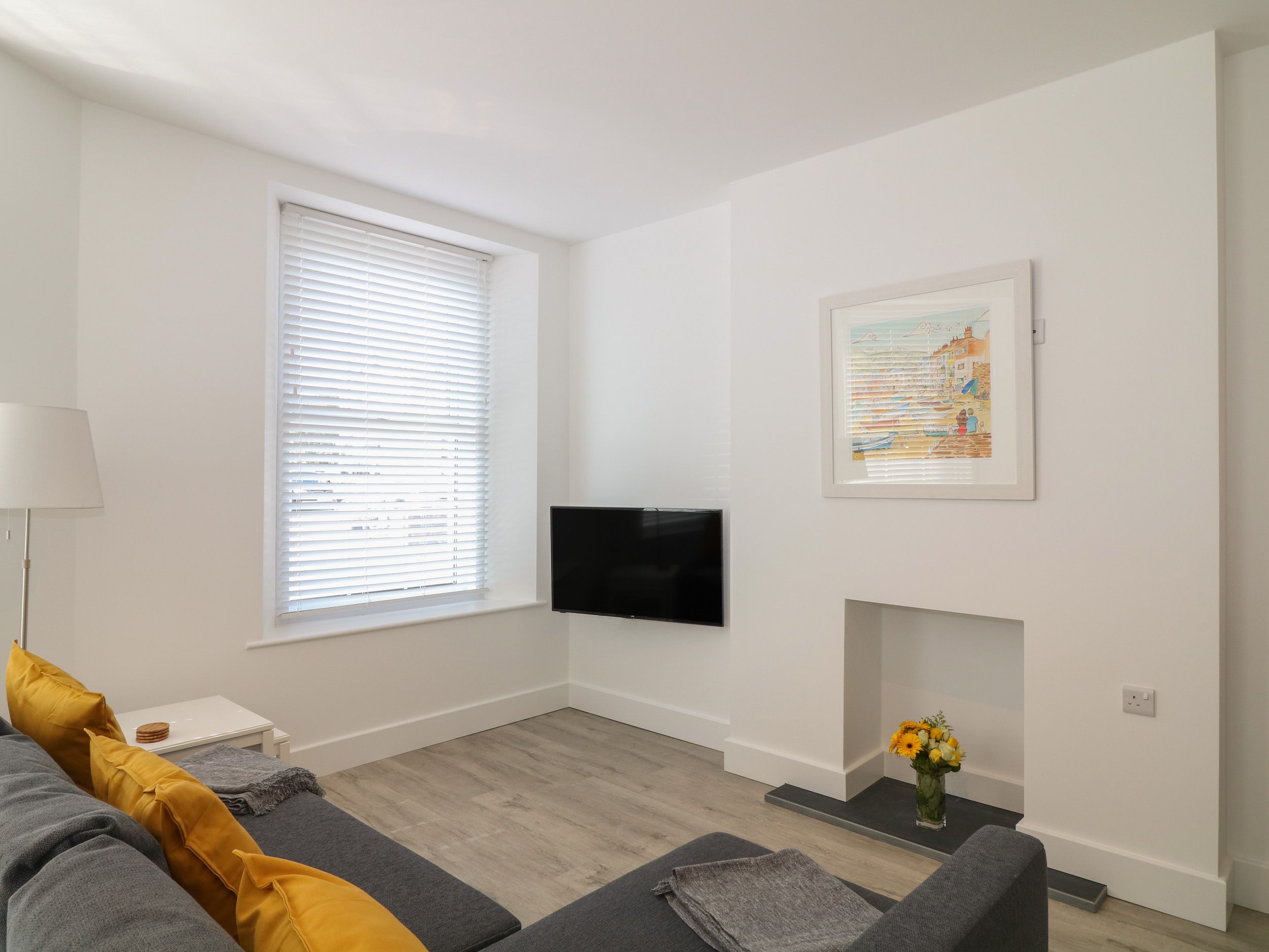 Holiday home Samphire is a smart ground floor apartment, 50 yards from the beach in the Devon coastal town of Teignmouth. The apartment sleeps two people in one kingsize bedroom with a pristine shower room. The living space is open plan with sitting area, dining area and a neat kitchen. Close to beach, shops and restaurants, Samphire is perfect for enjoying holiday by the sea in Devon.