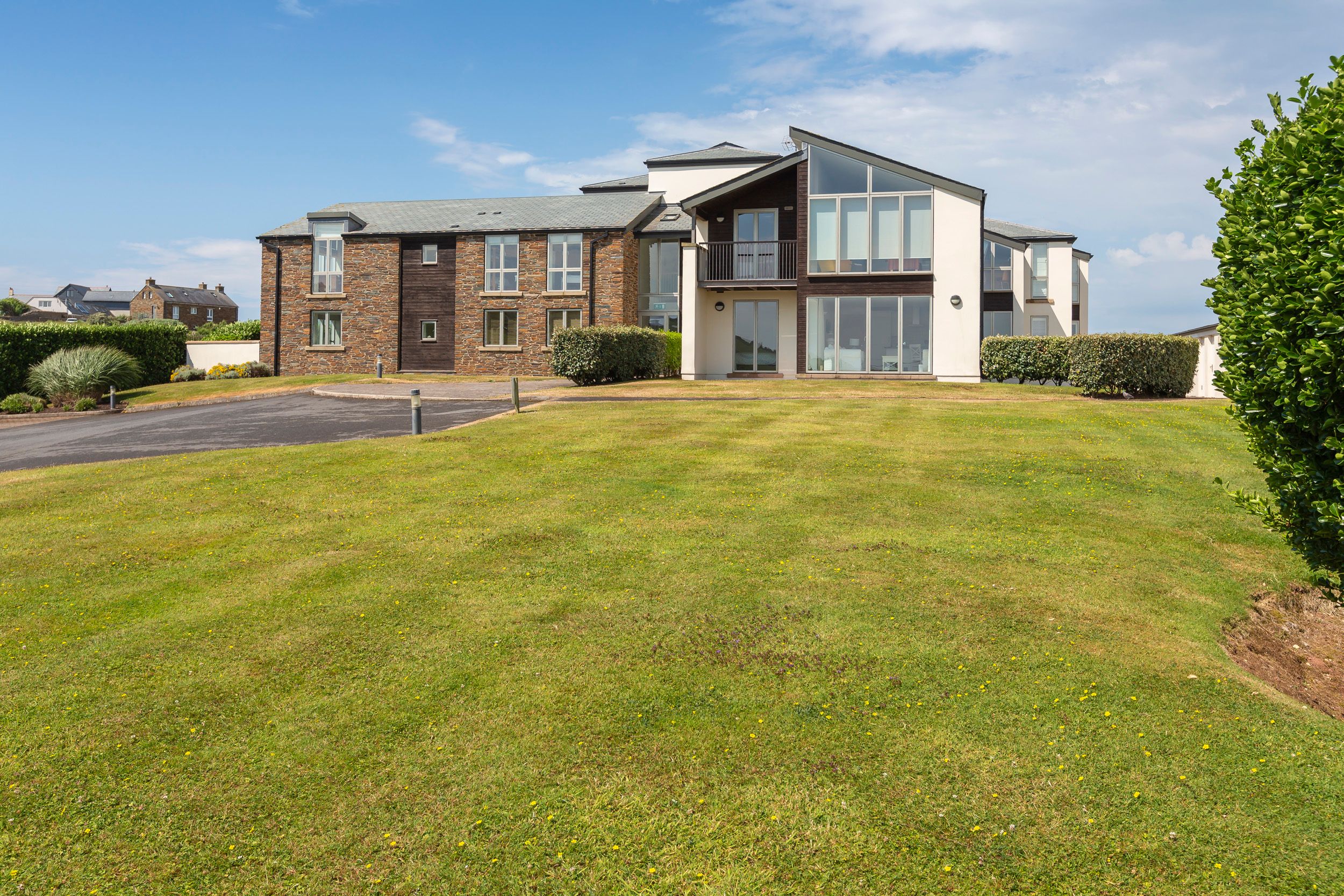 The coastal village of Thurlestone is popular with both beach-goers and watersports enthusiasts, with the popular sandy beaches of Thurlestone and South Milton Sands within walking distance. Thurlestone boasts an 18-hole links golf course, a 13th century church, a traditional pub, a post office and the ‘Voyage Spa’, where visitors can enjoy spa treatments or afternoon tea. Just a 10-15 minute drive away is the sailing town of Salcombe, and the fishing village of Hope Cove is also a short drive away, or can be reached on foot via the South West Coast Path, offering stunning panoramic sea views.